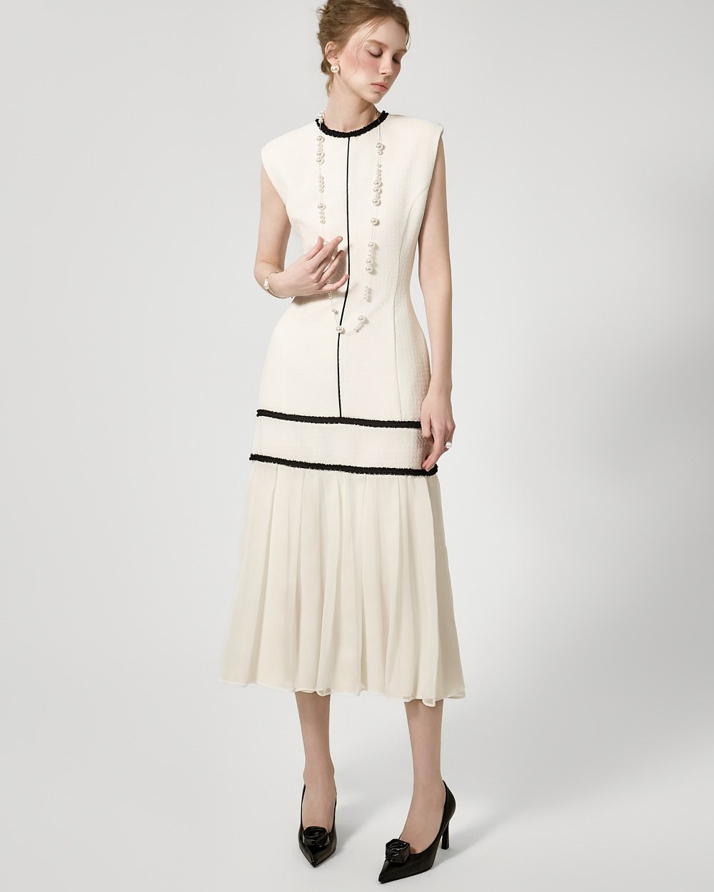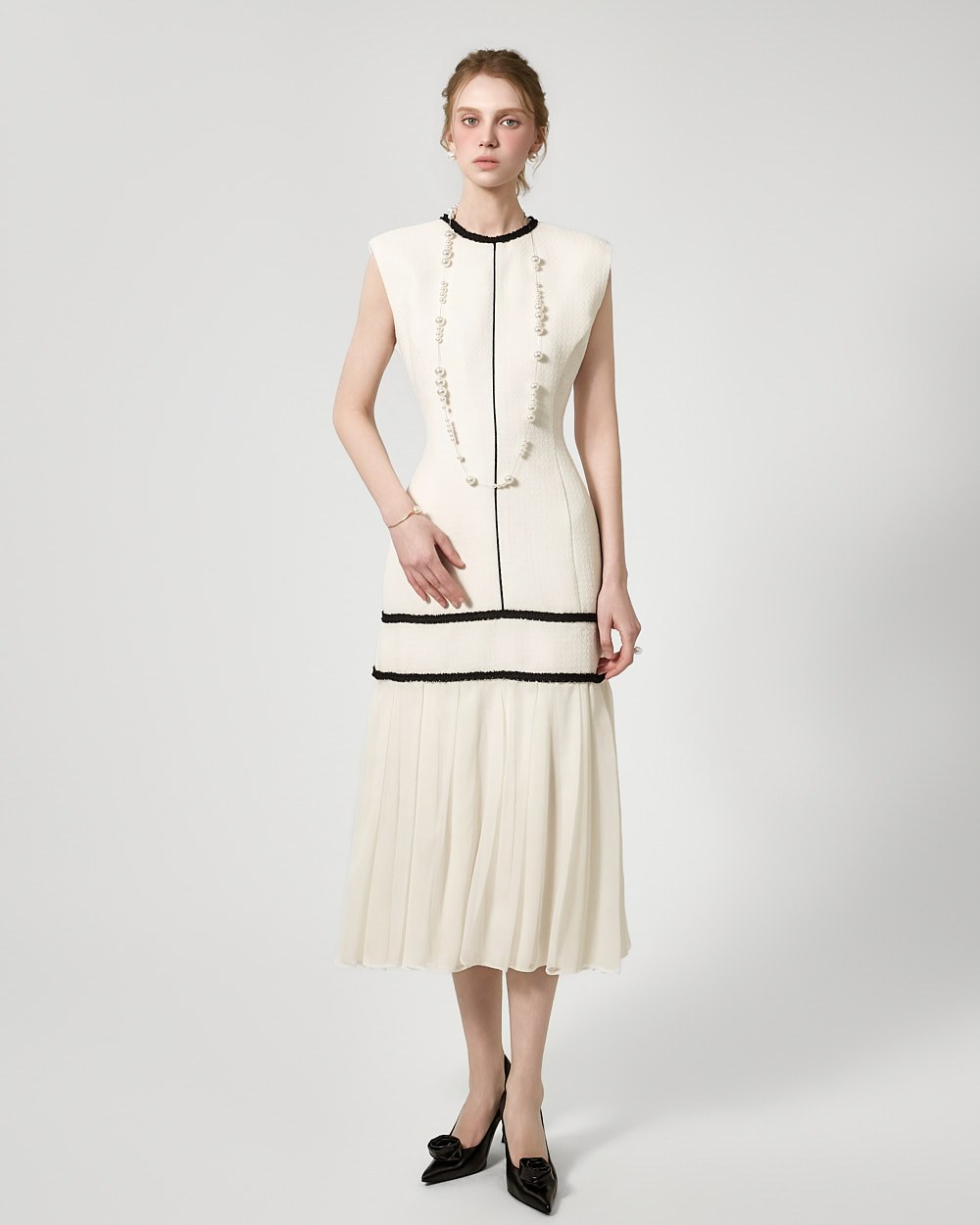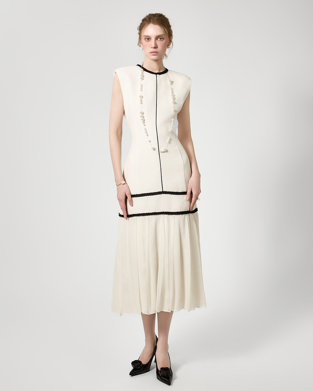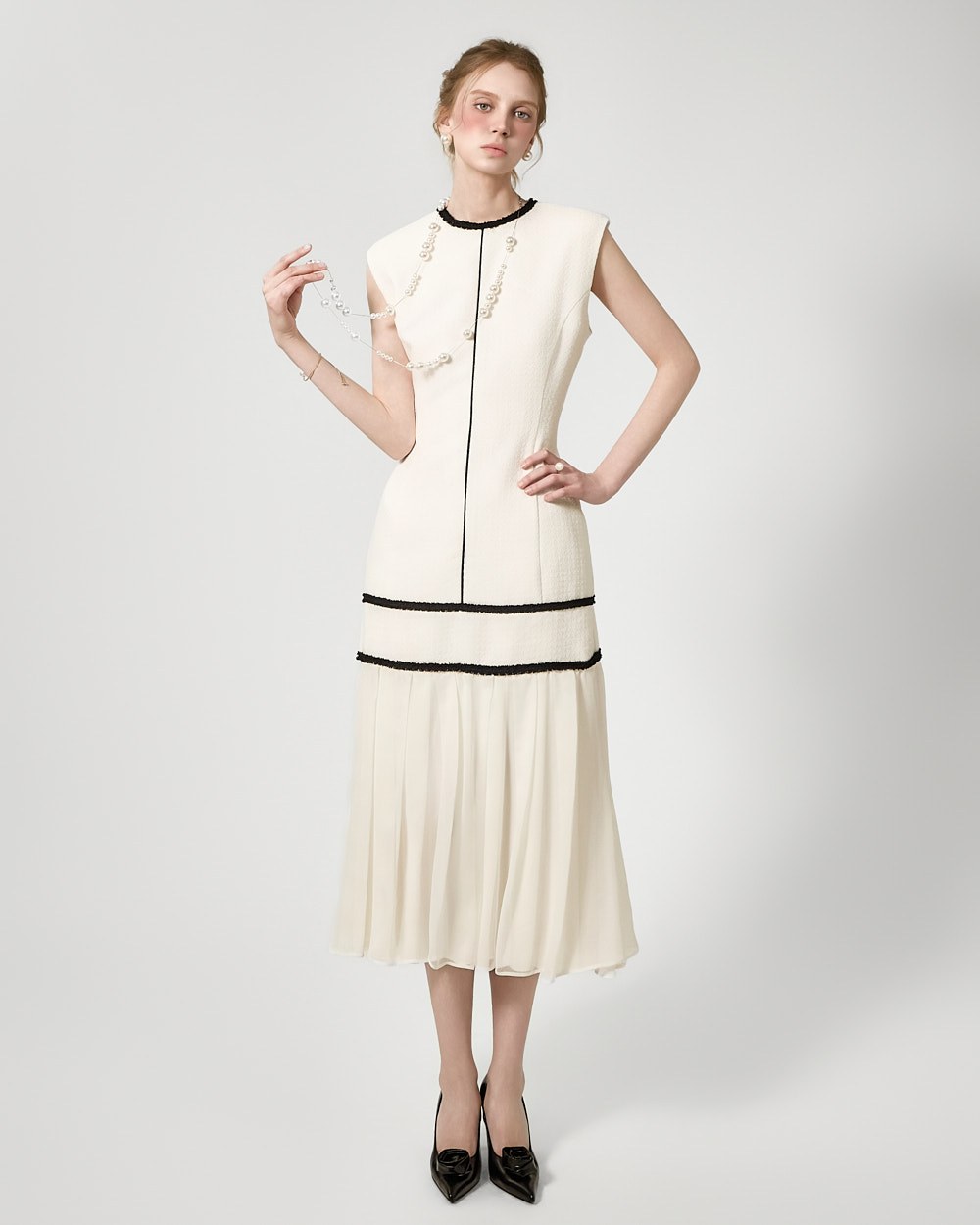 裾のプリーツディテールが自然な動きを演出します。