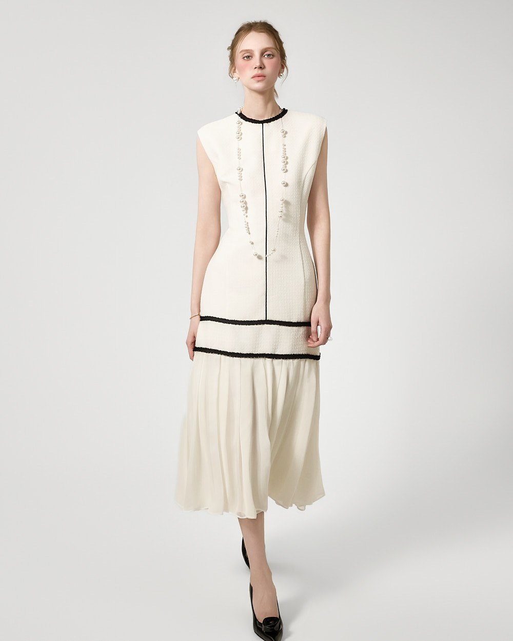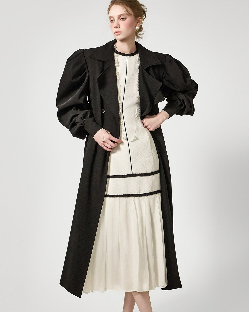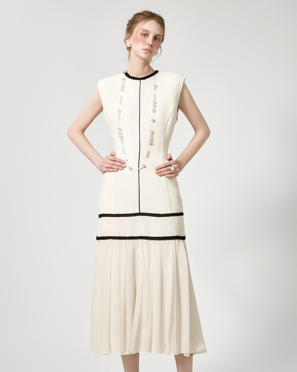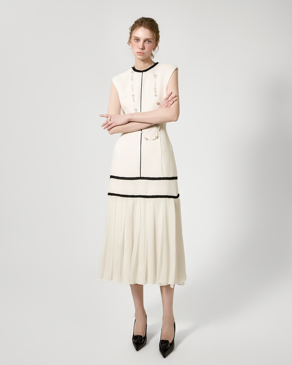 裾のプリーツディテールが自然な動きを演出します。