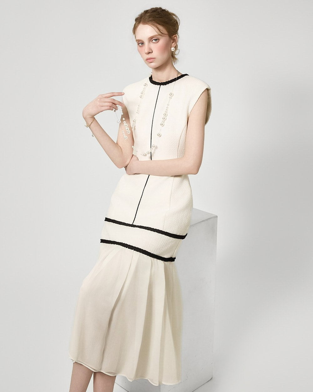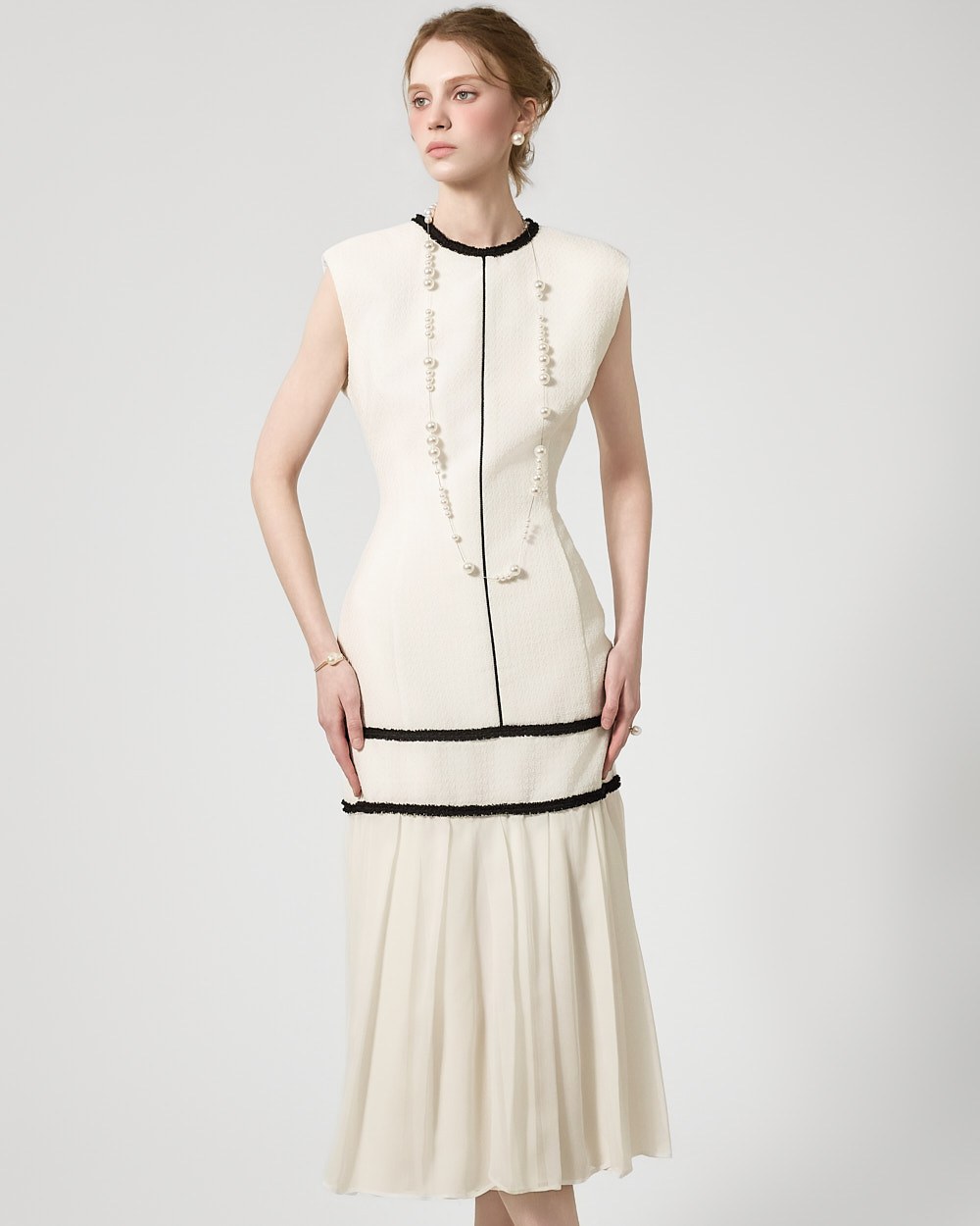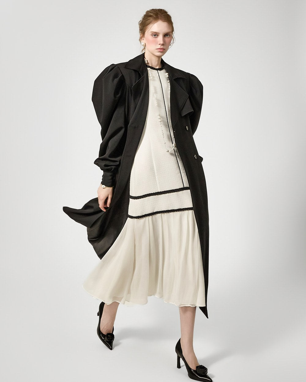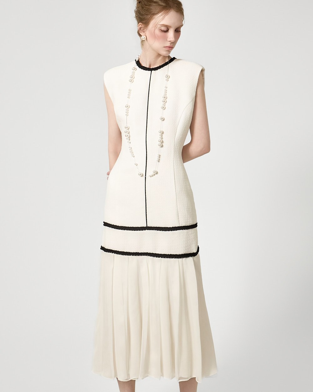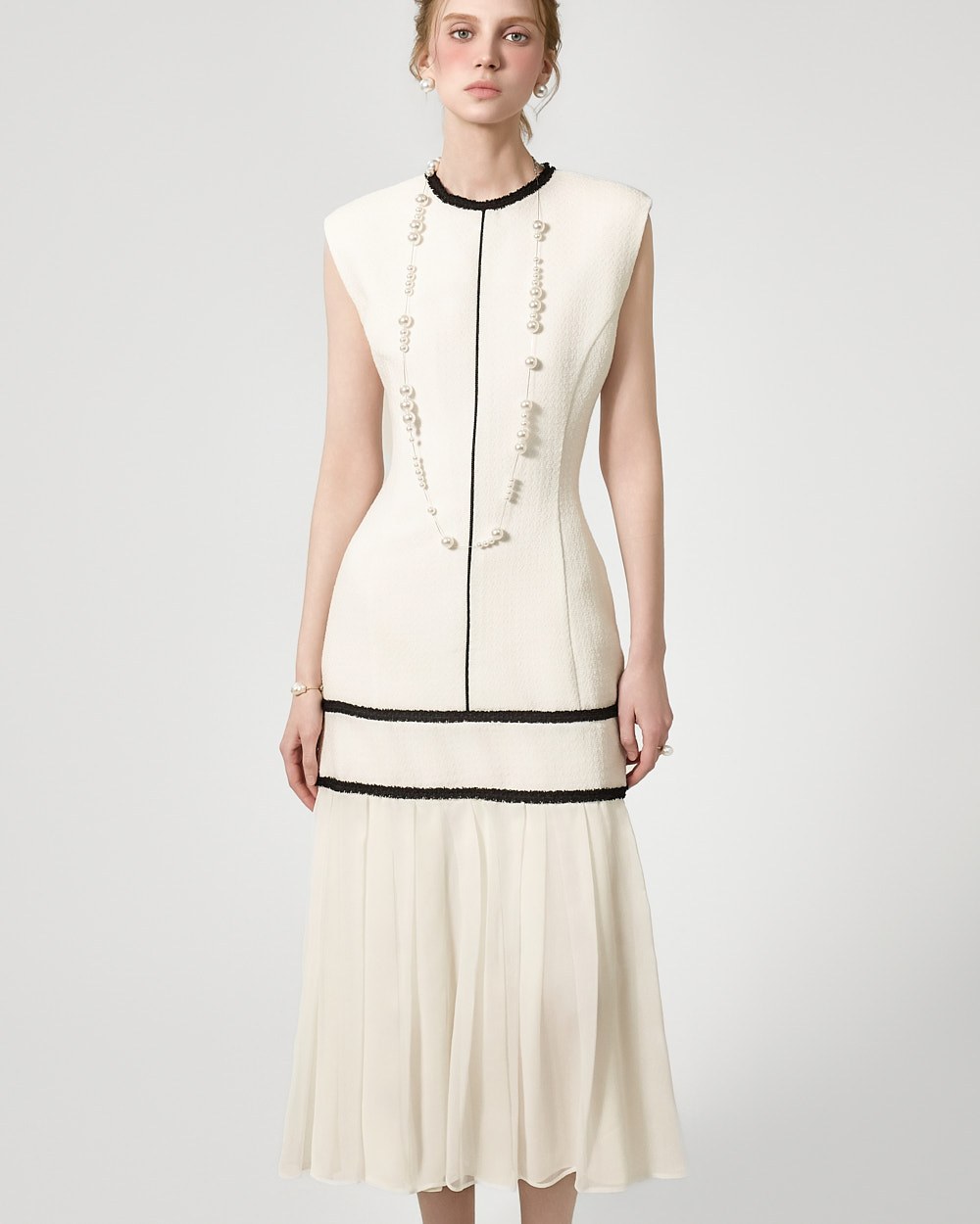 裾のプリーツディテールが自然な動きを演出します。