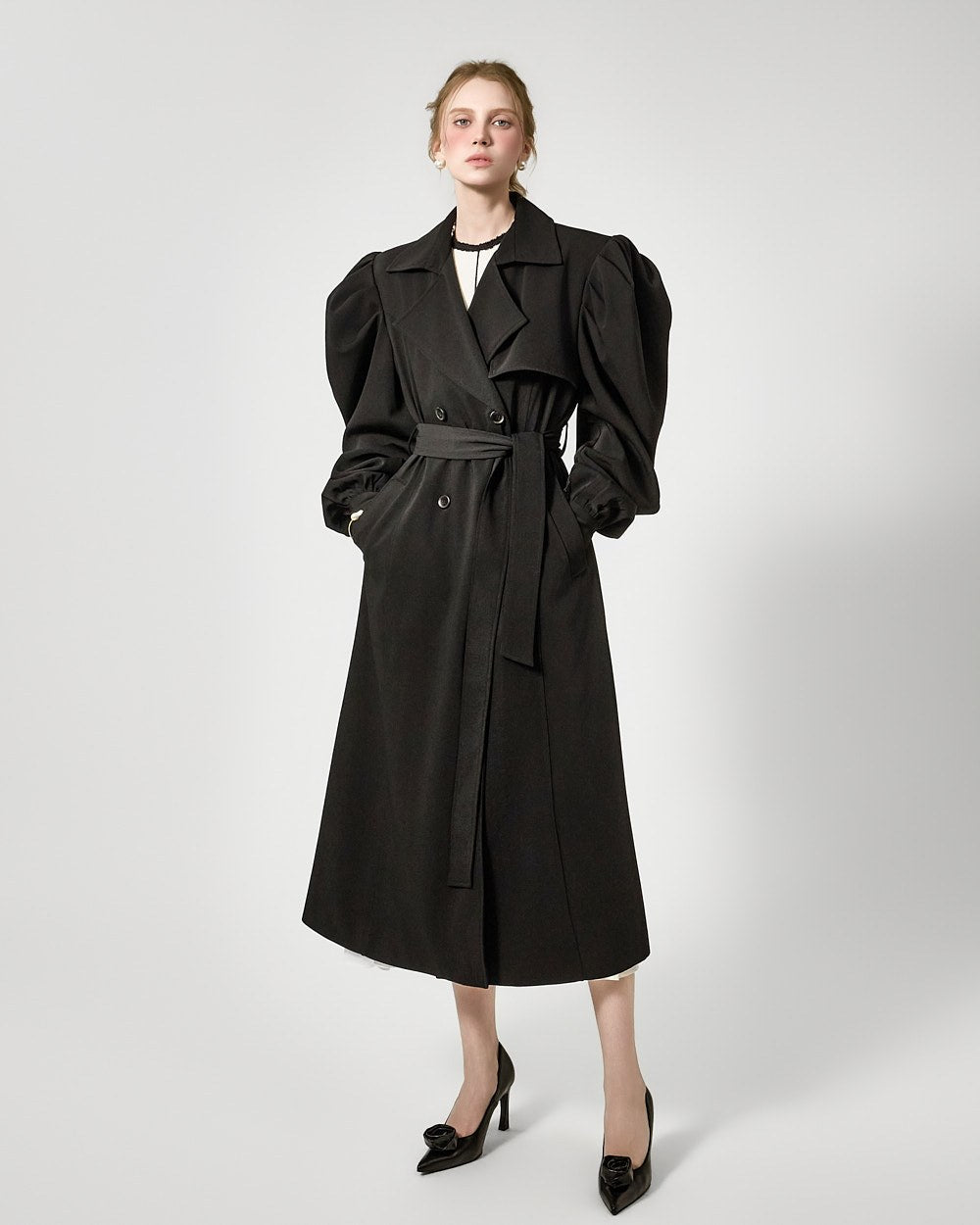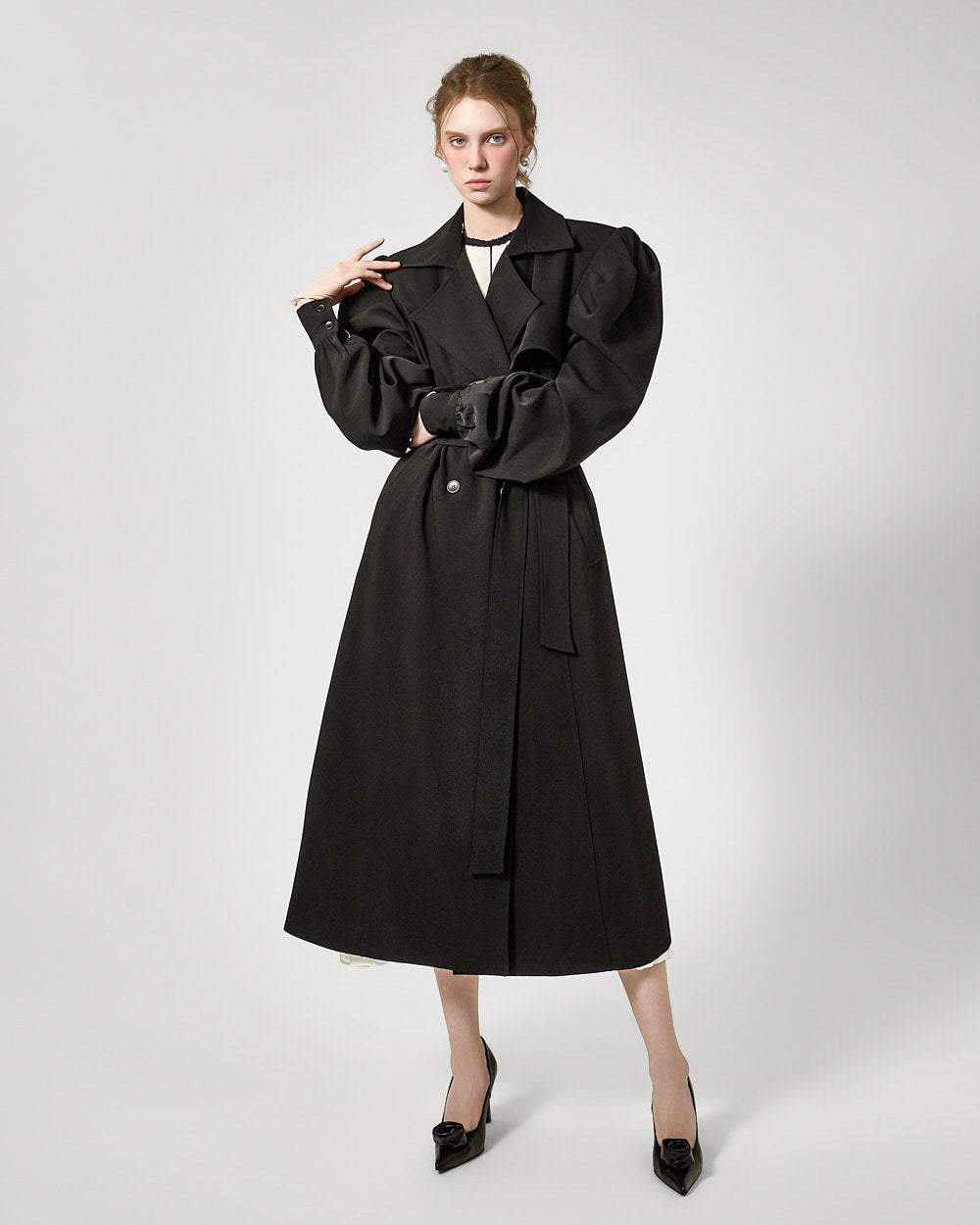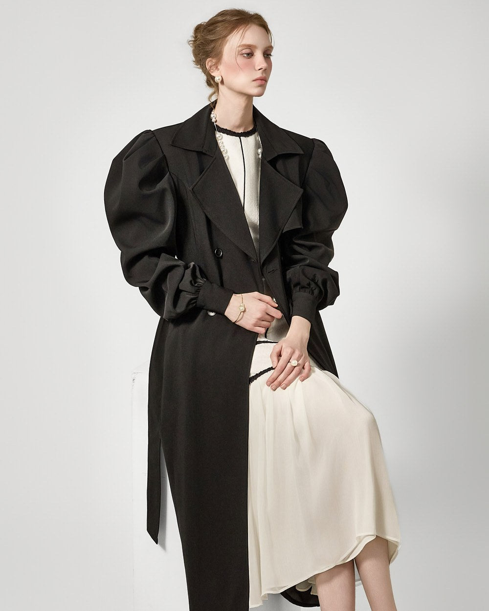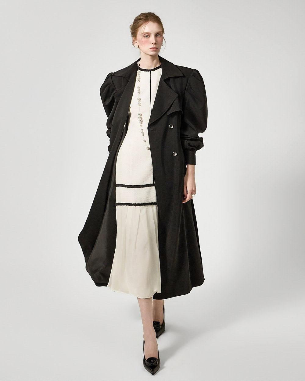 裾のプリーツディテールが自然な動きを演出します。