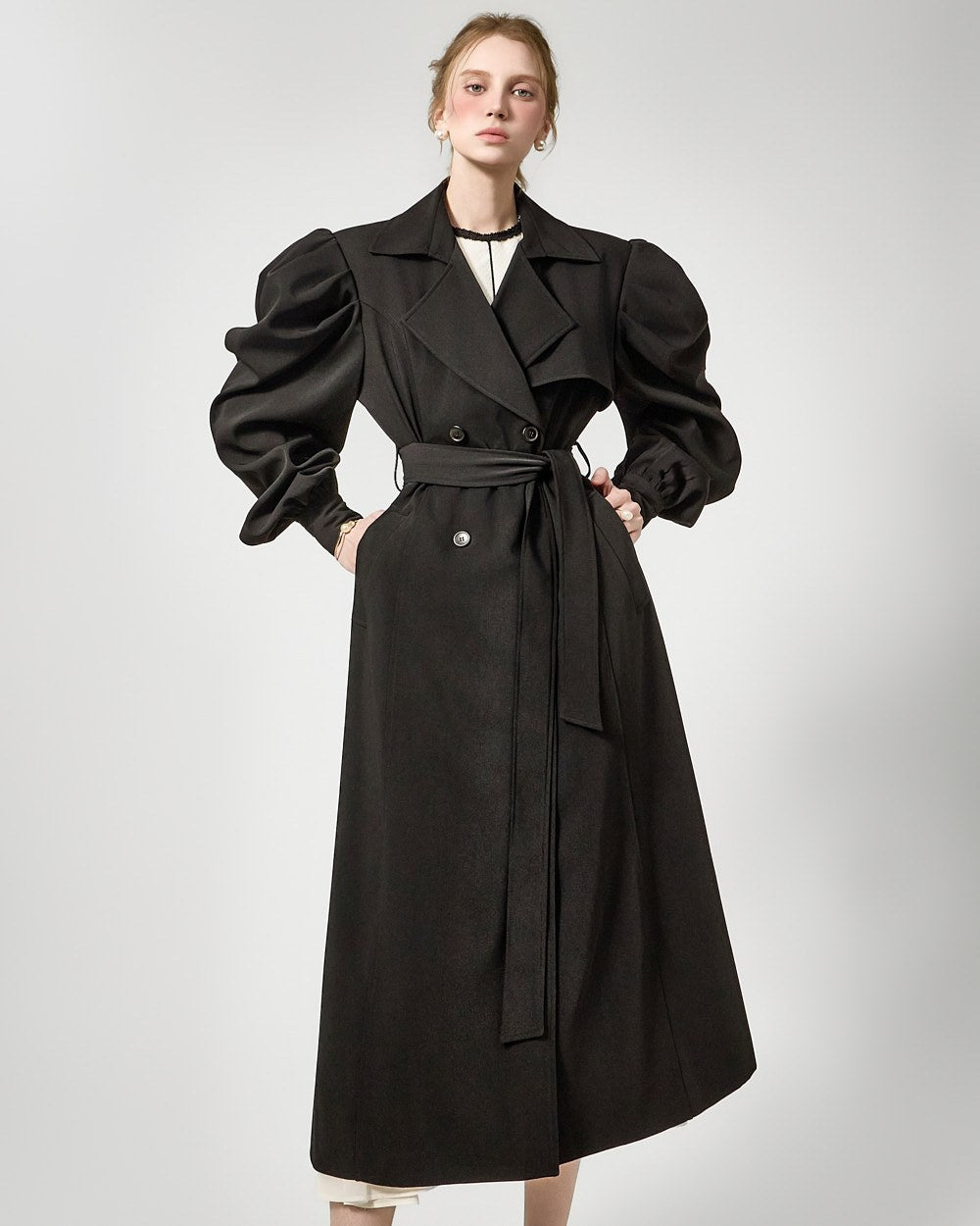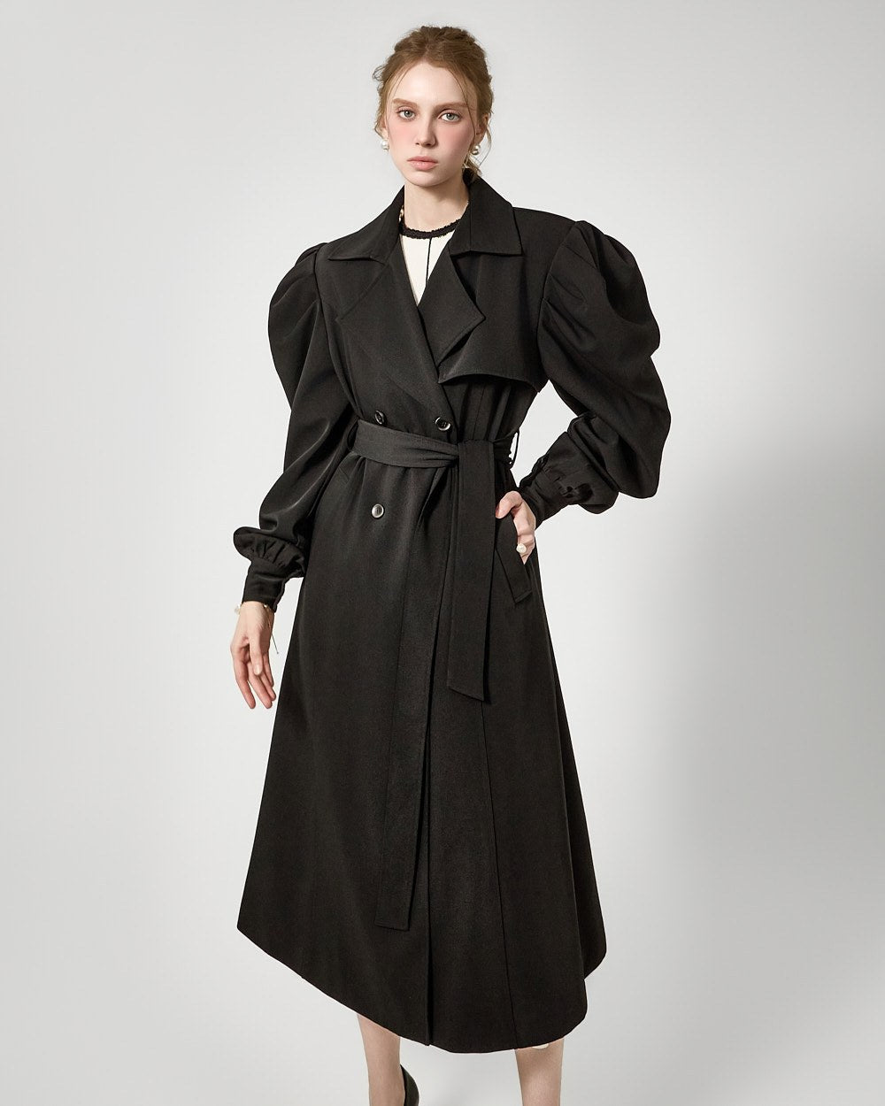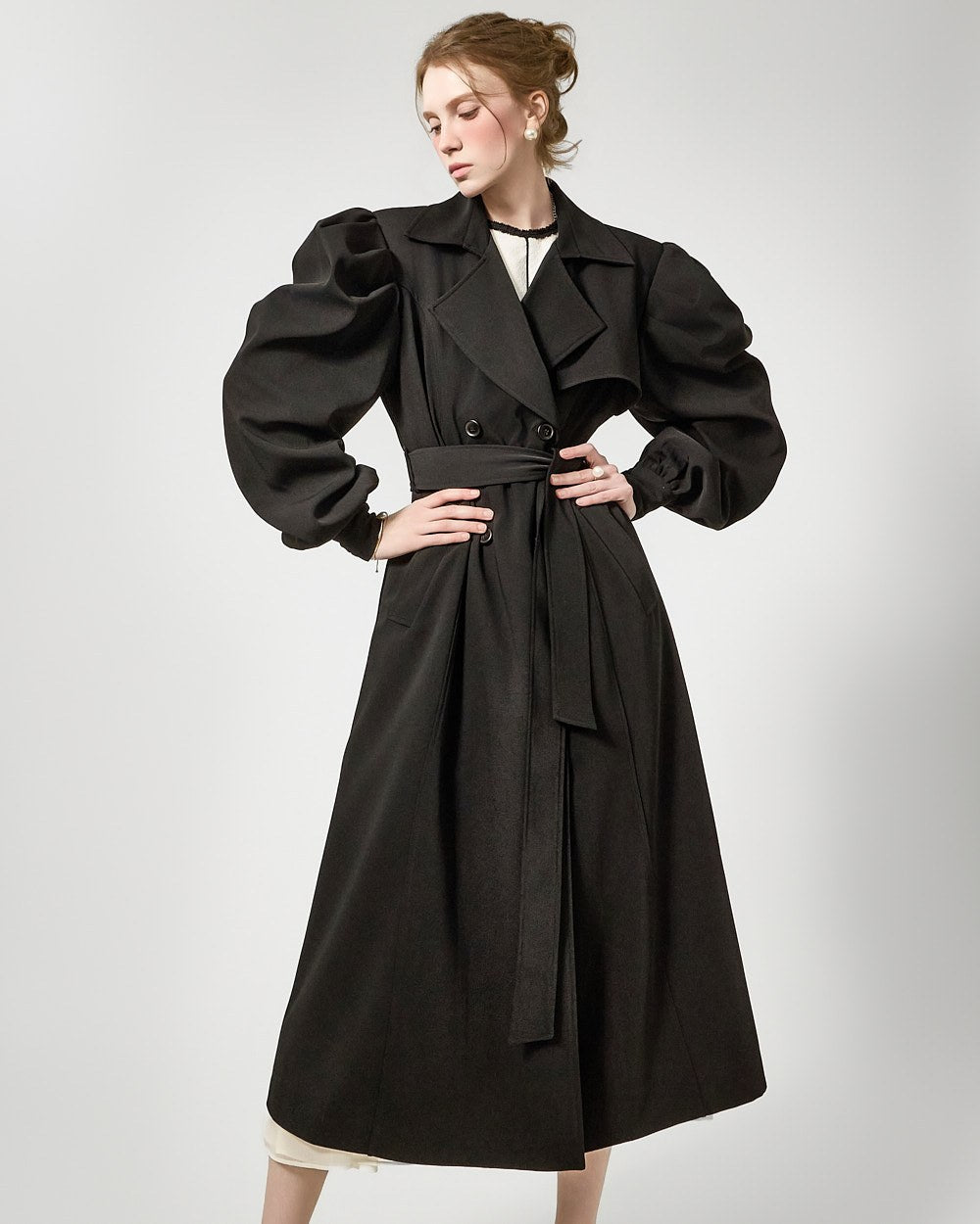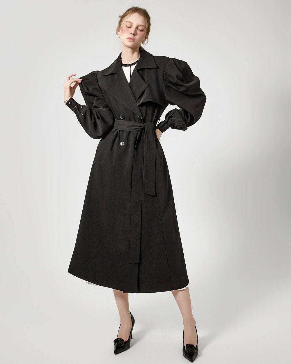 裾のプリーツディテールが自然な動きを演出します。