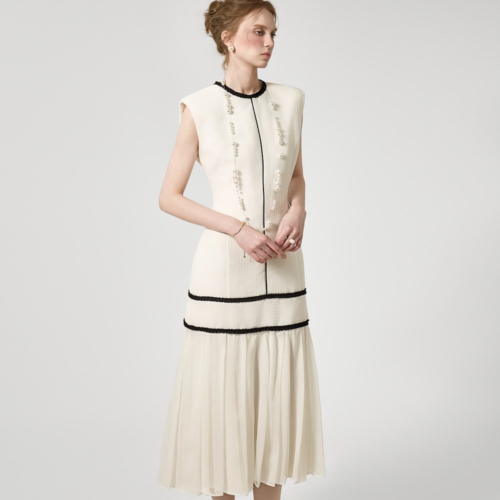 D9586 コントラストライン プリーツドレス