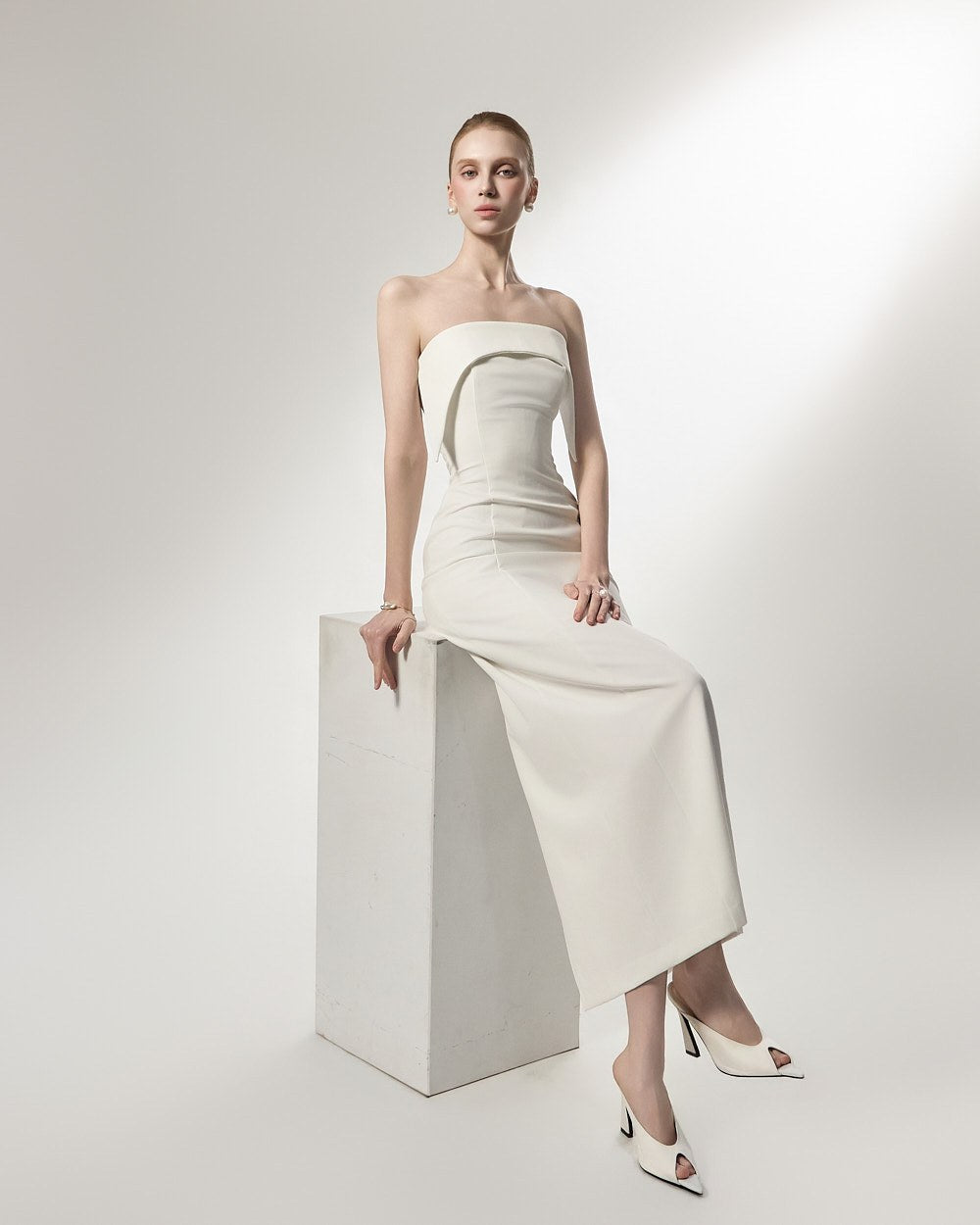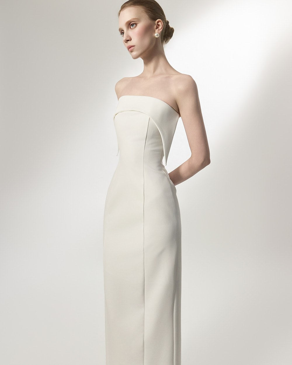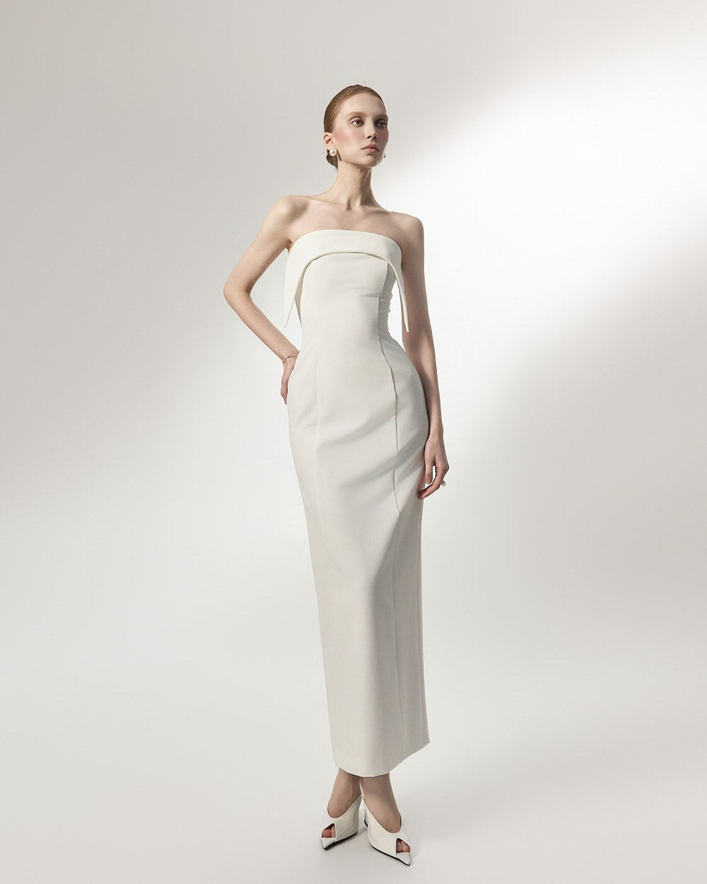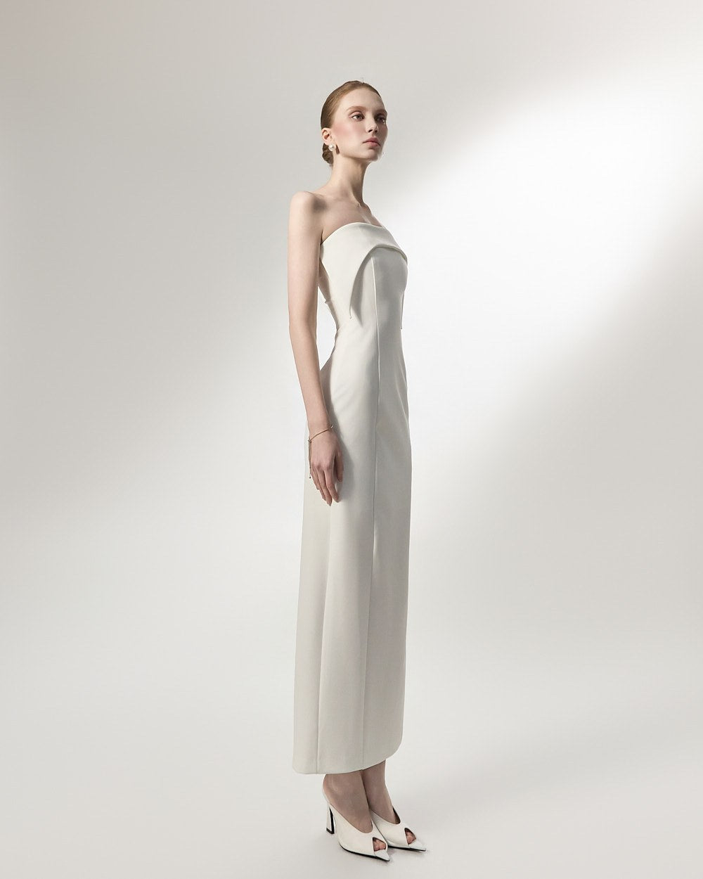 This is an off-shoulder dress with an elegant mood.