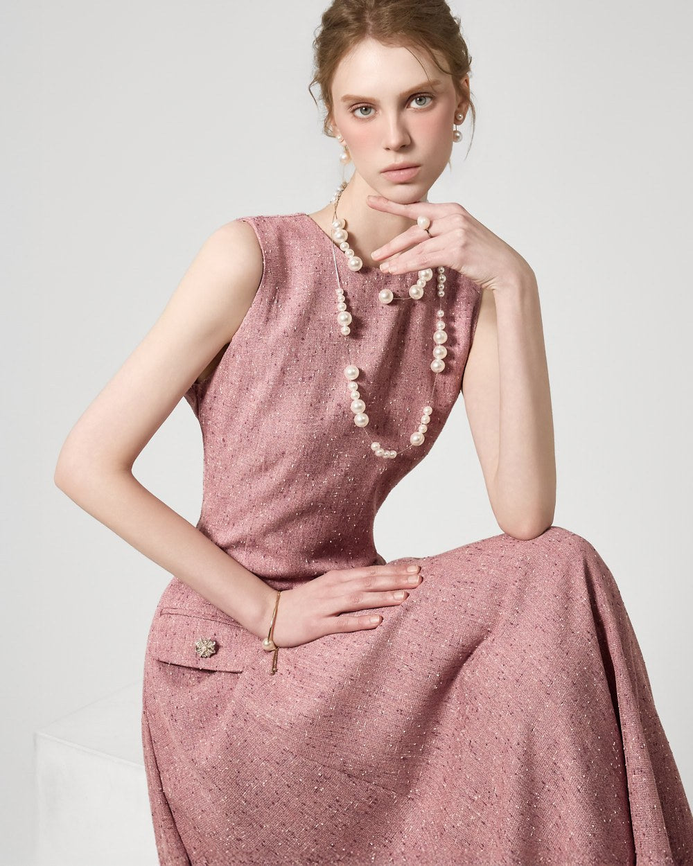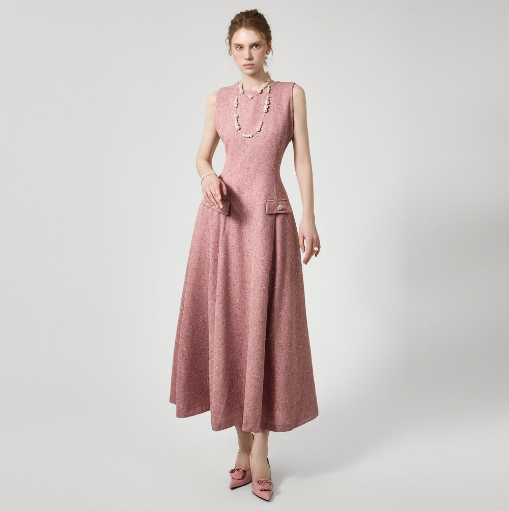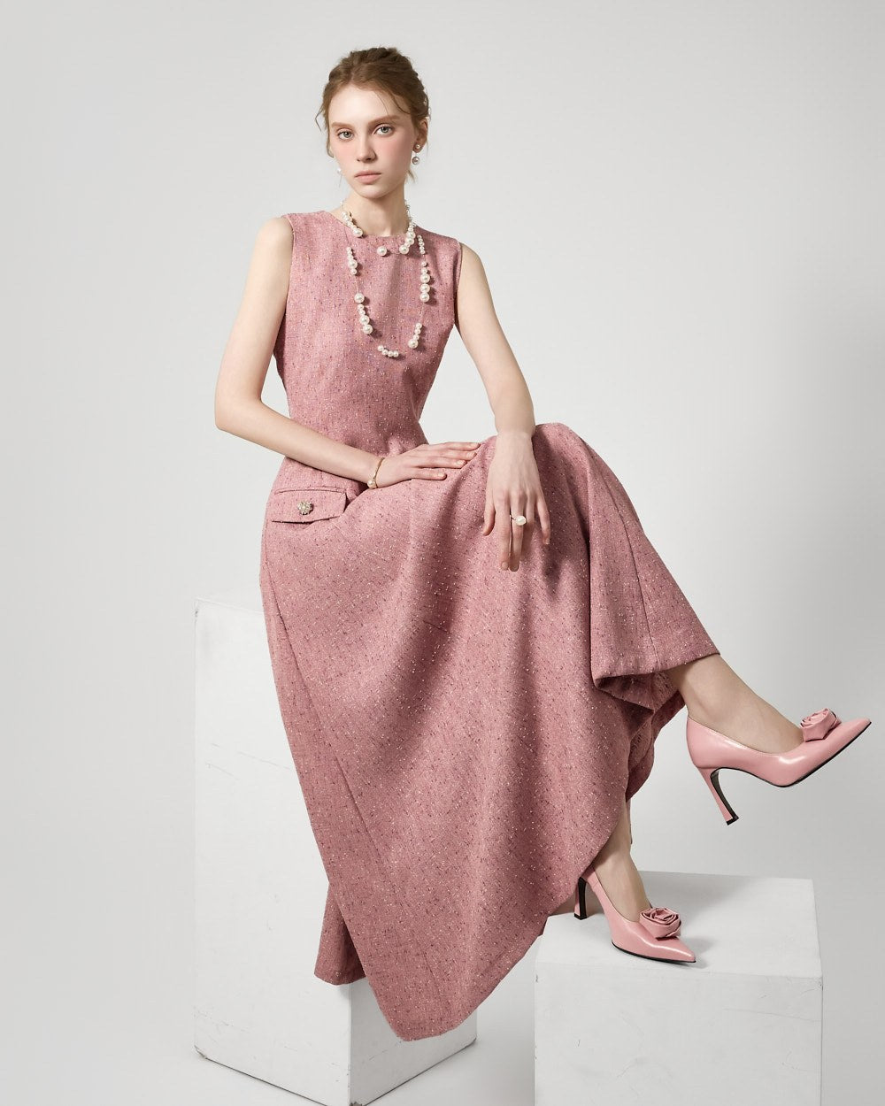 ロング丈で、ドレッシーでエレガントな雰囲気を演出します。