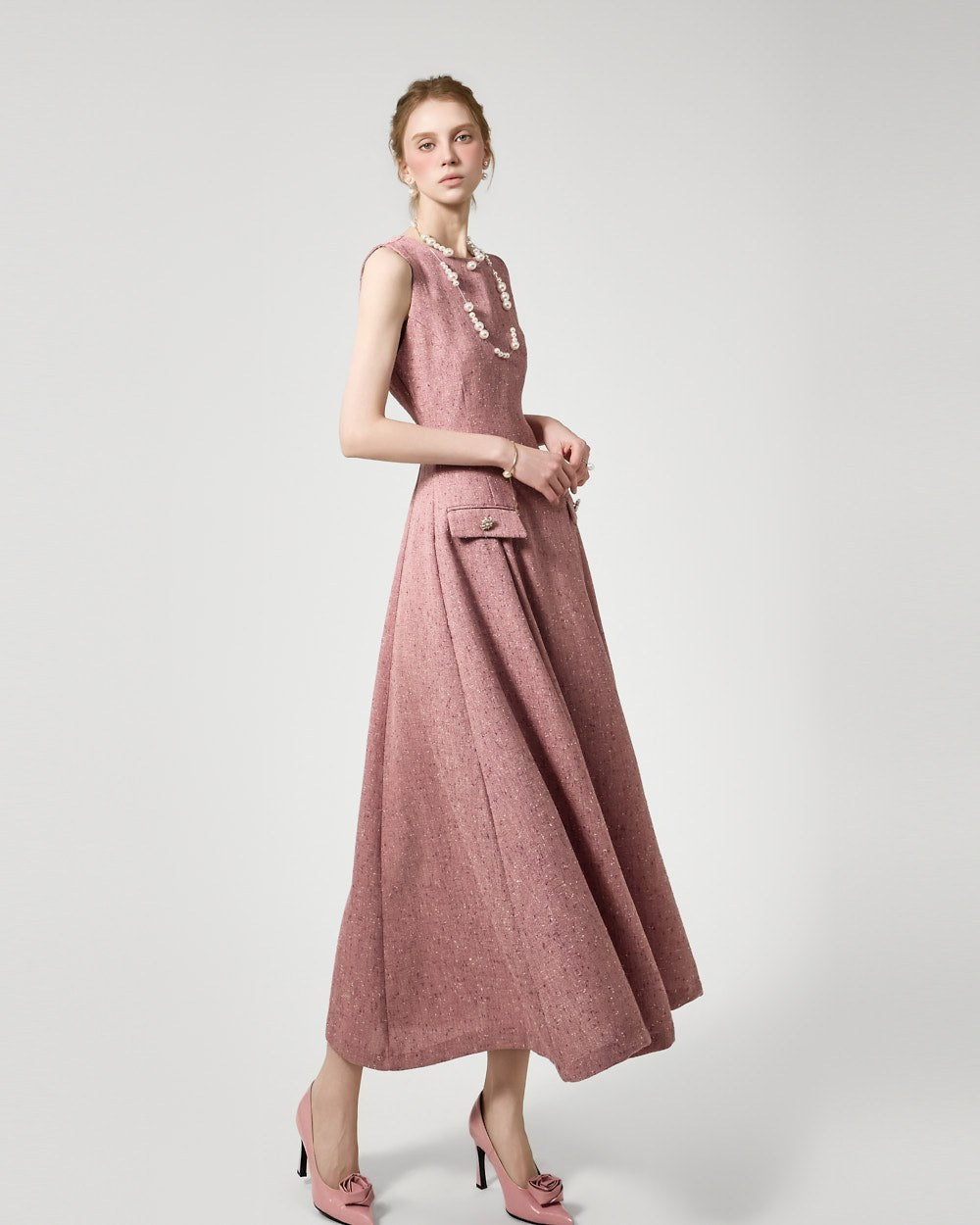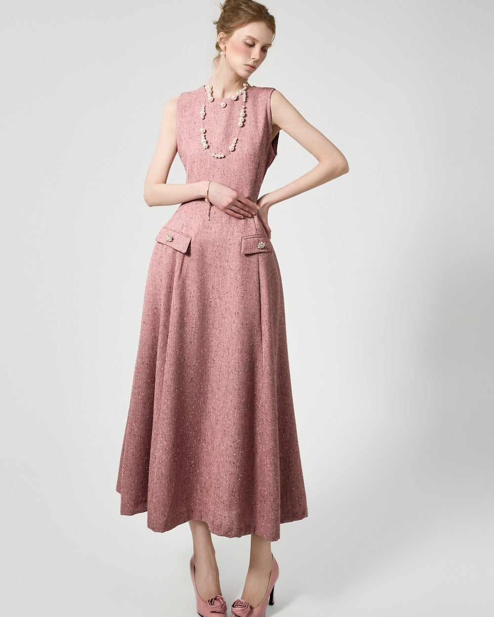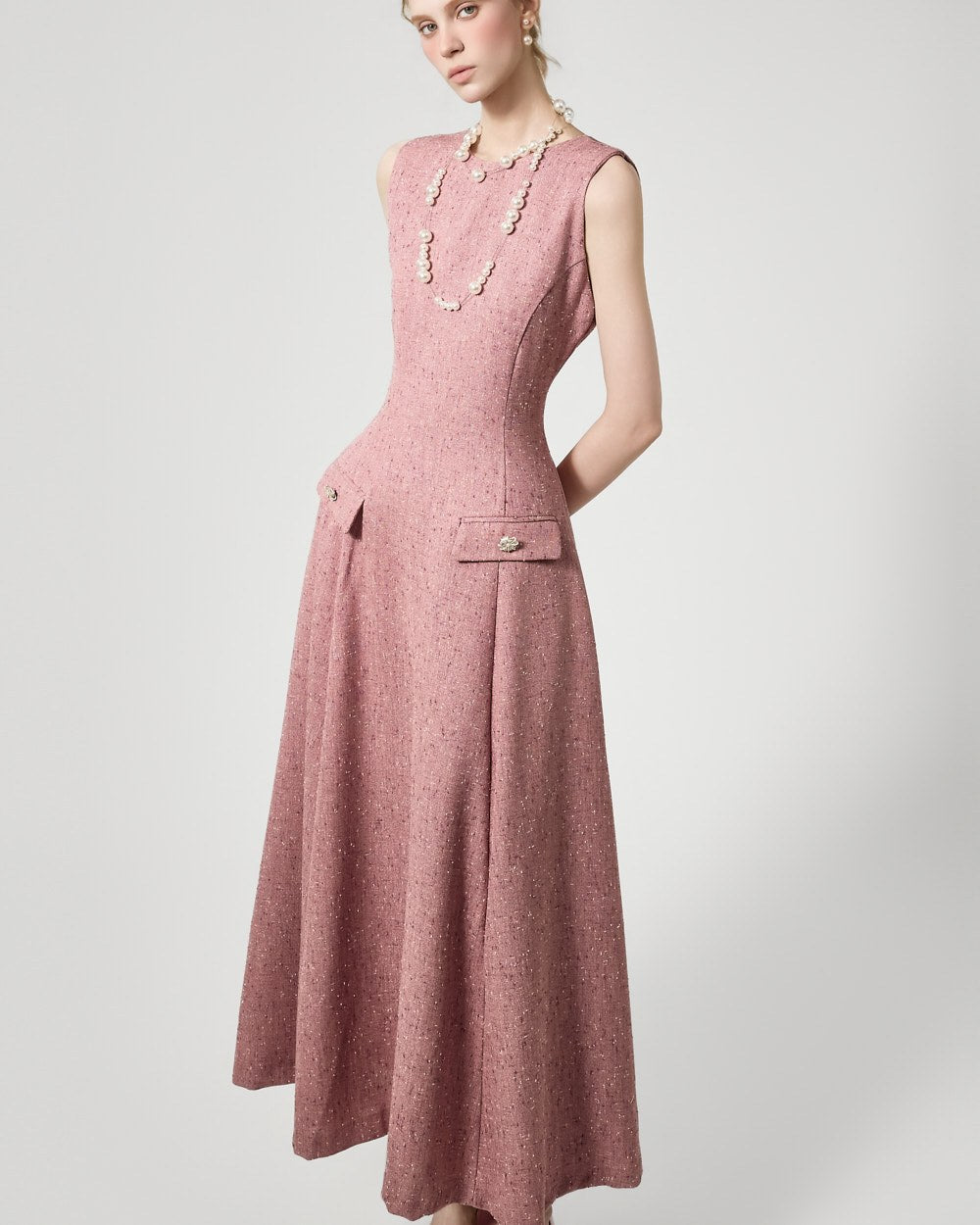 ロング丈で、ドレッシーでエレガントな雰囲気を演出します。