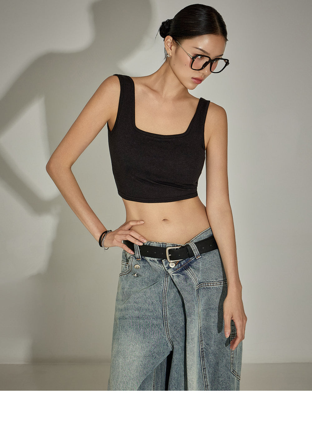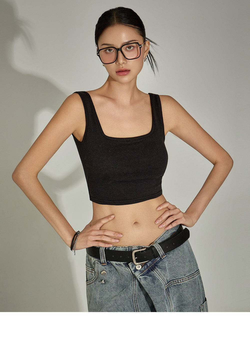 スクエアネックラインと内蔵キャップが特徴で、安定したフィット感を実現。