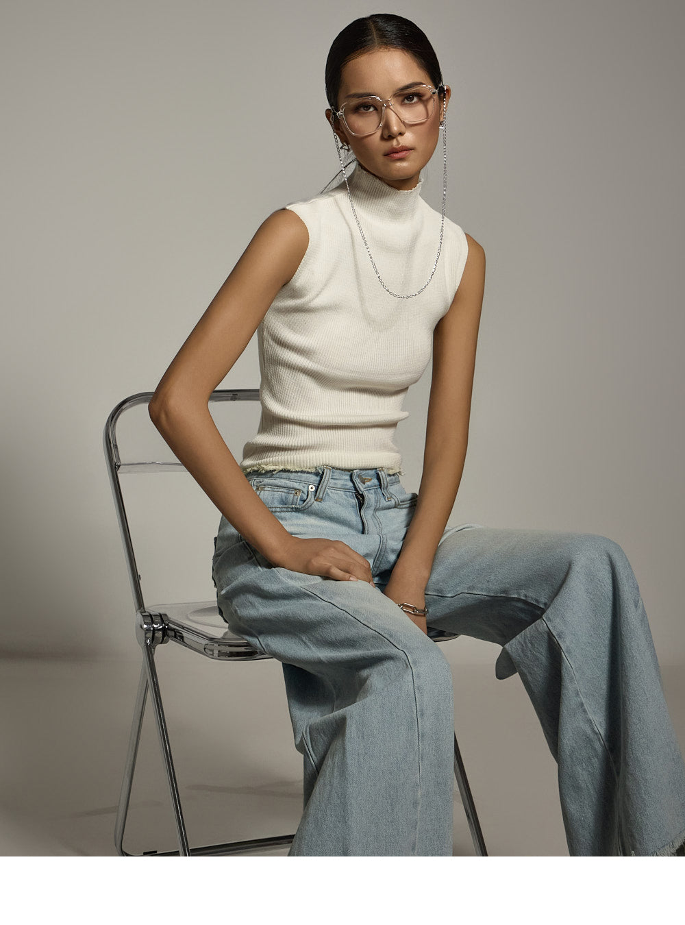 モデルの身長は174cmで、 IVORYのONEサイズを着用しています。