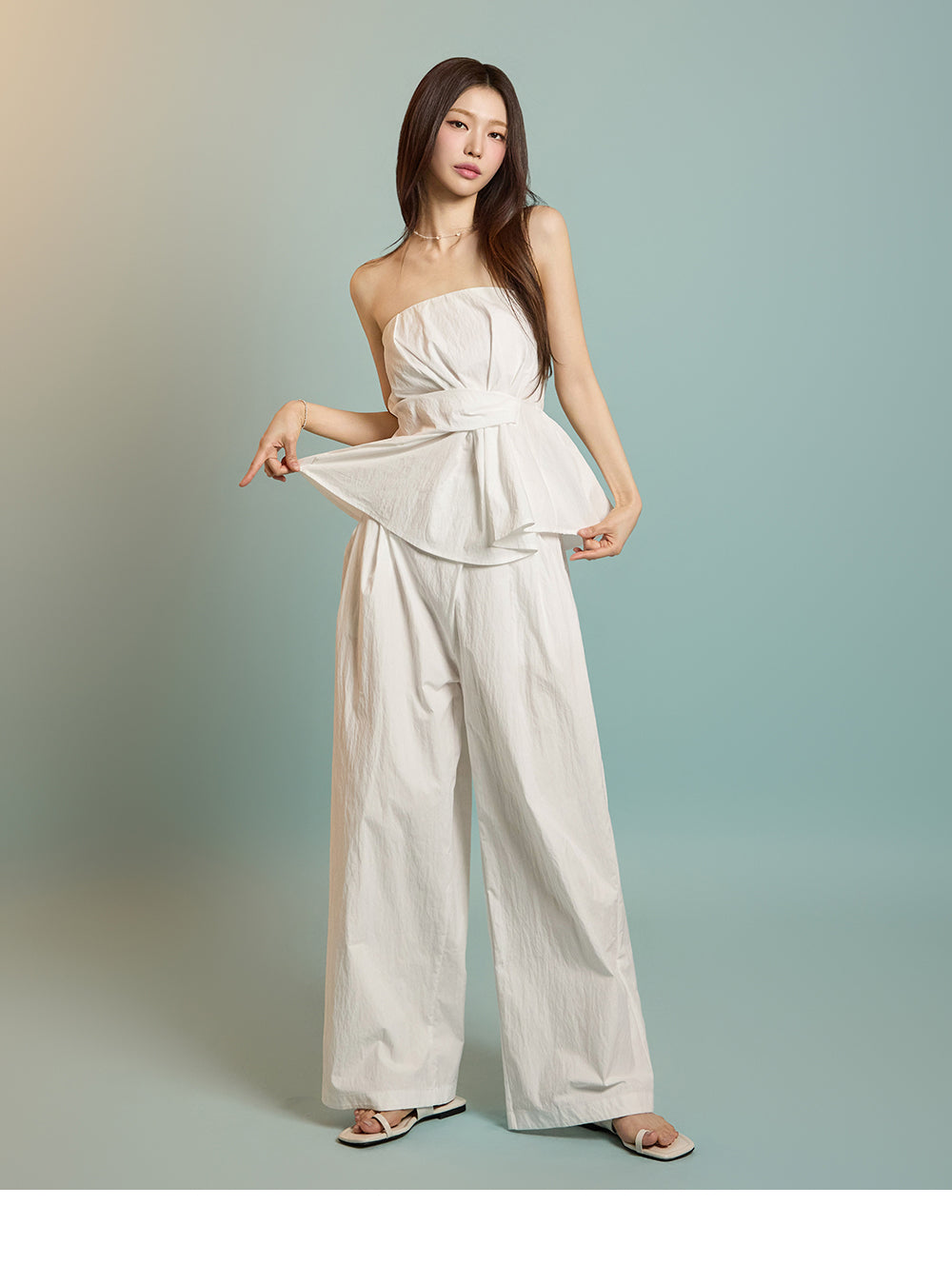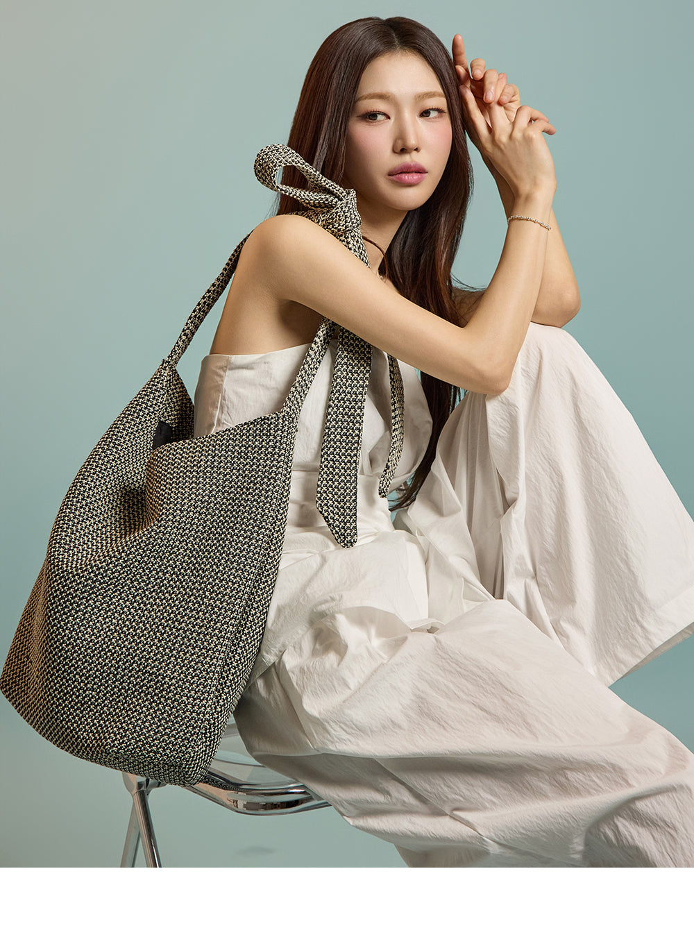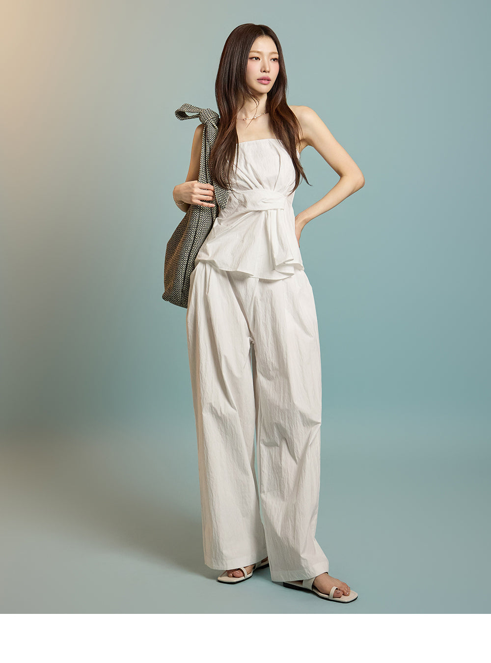 モデルは身長171cm、ホワイトのワンサイズを着用。