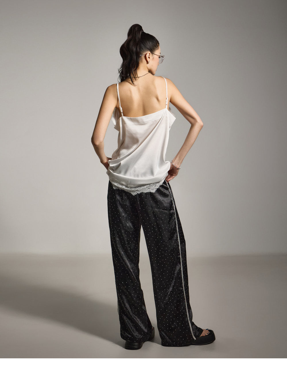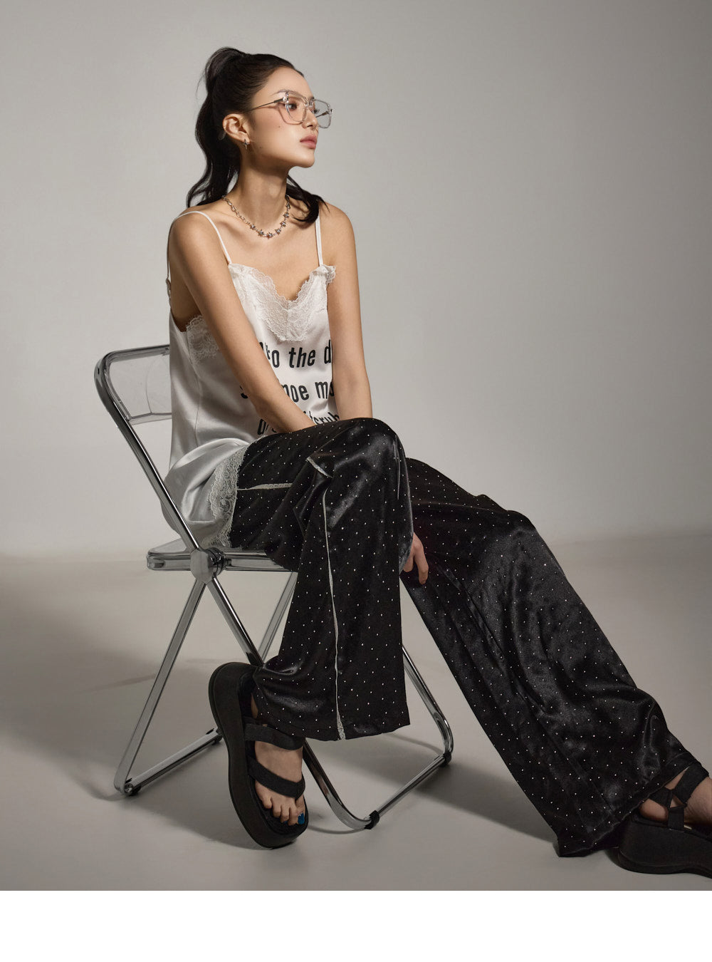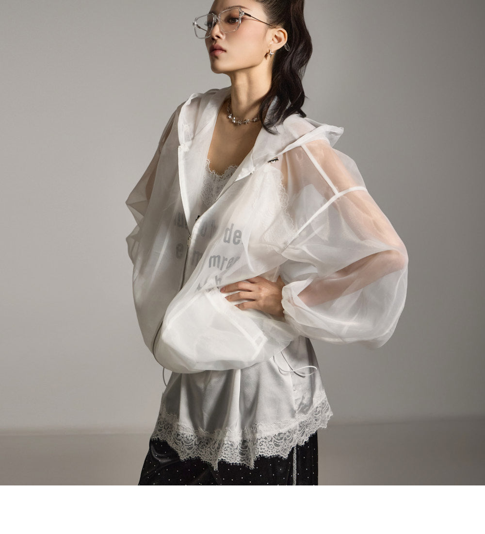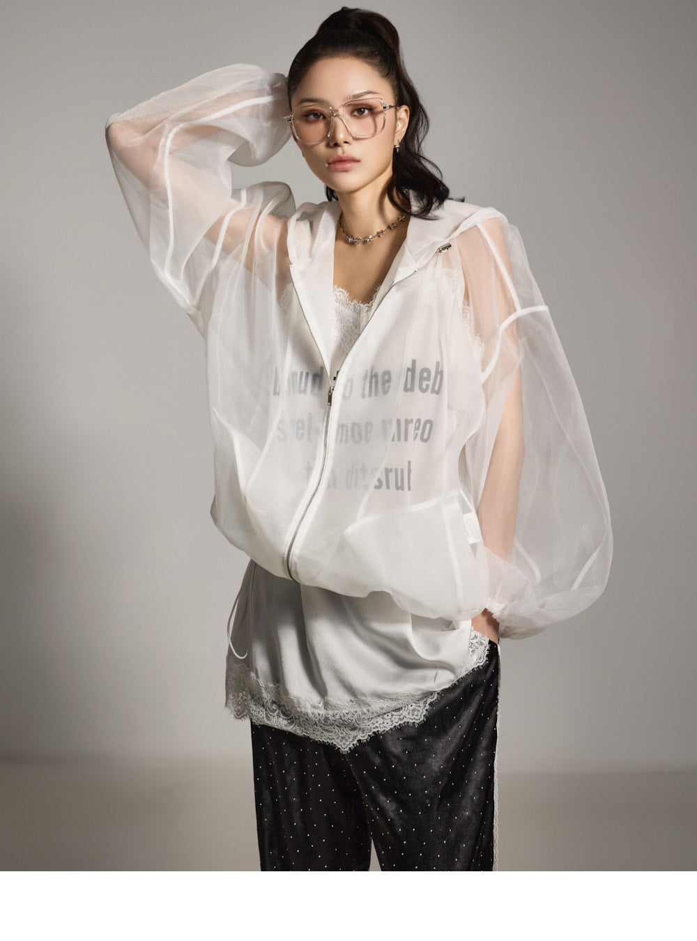 フロントにレタリングのディテール、裾と胸元にレースのアクセント、