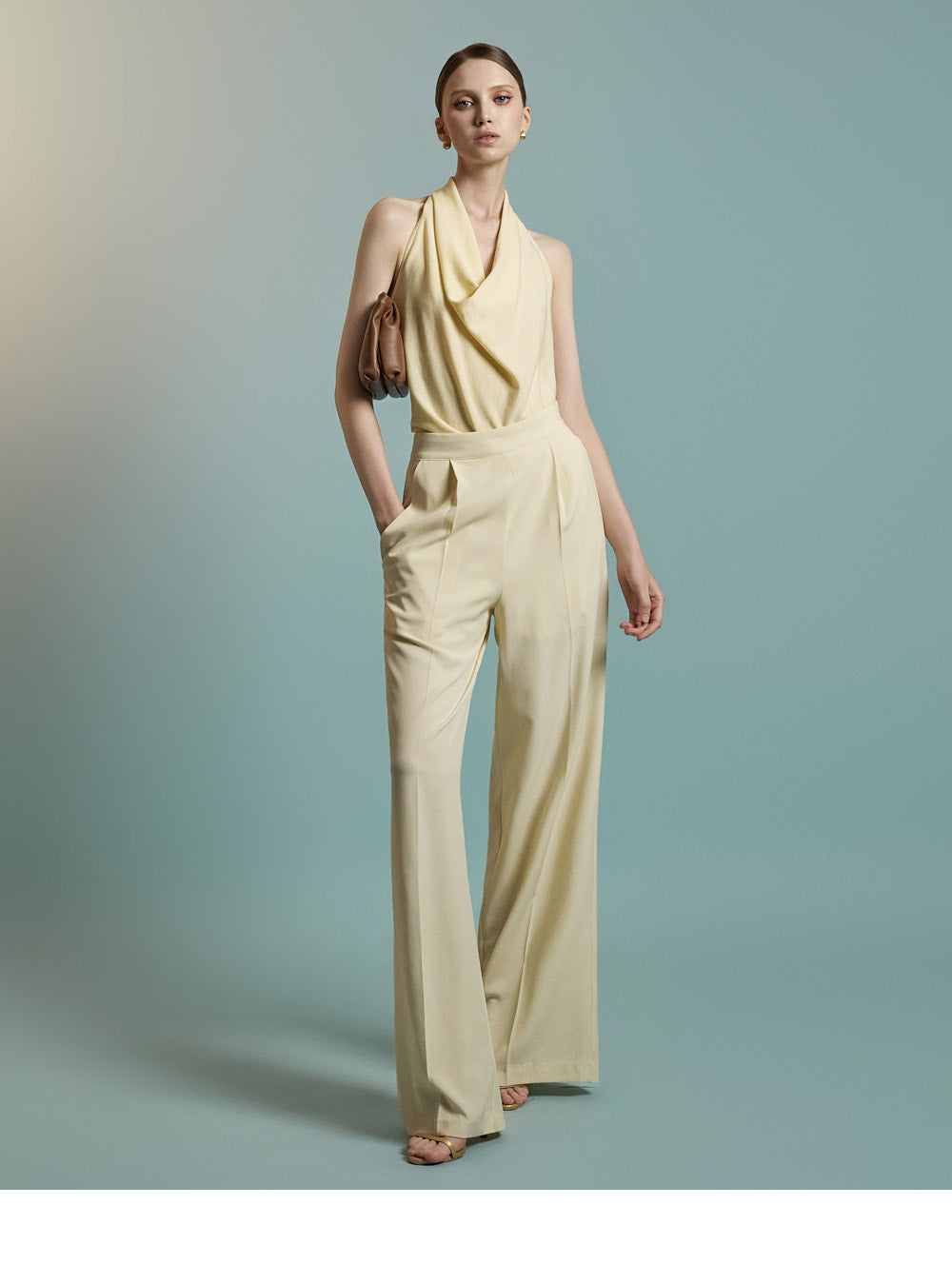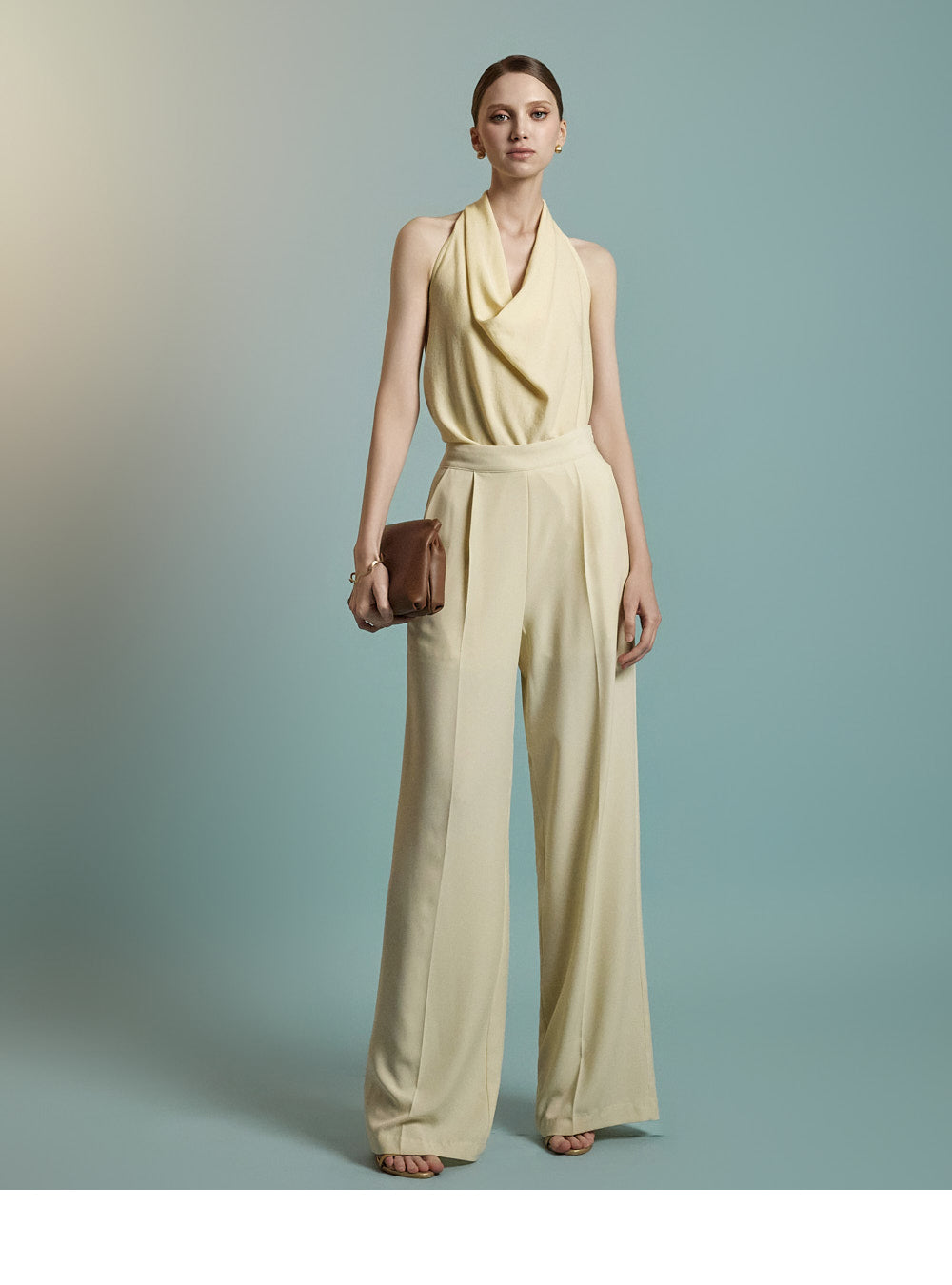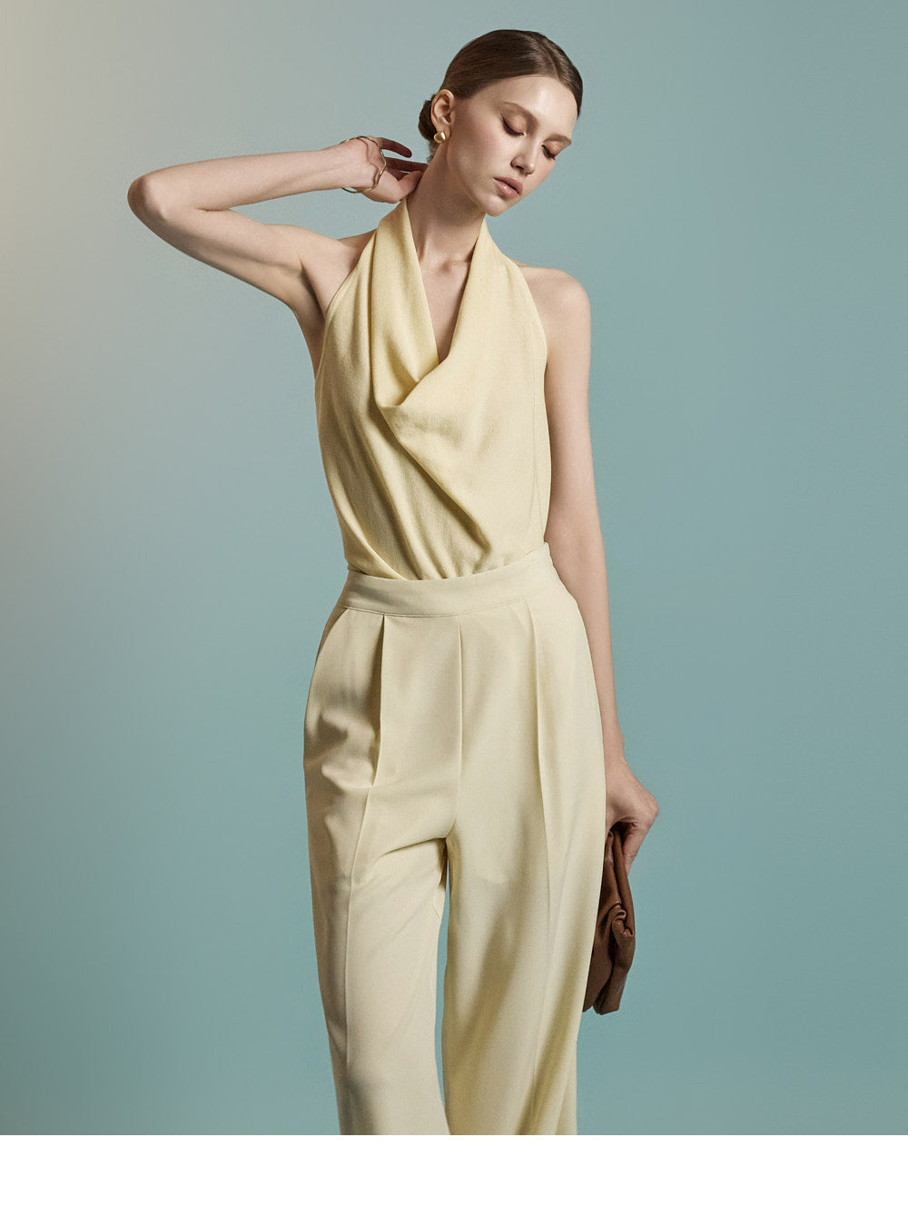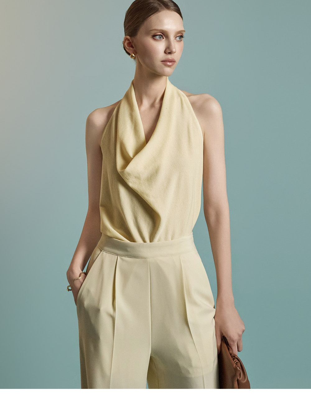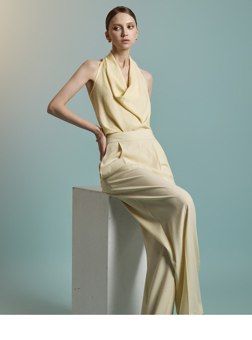 Featuring a halter neck with a draped silhouette,