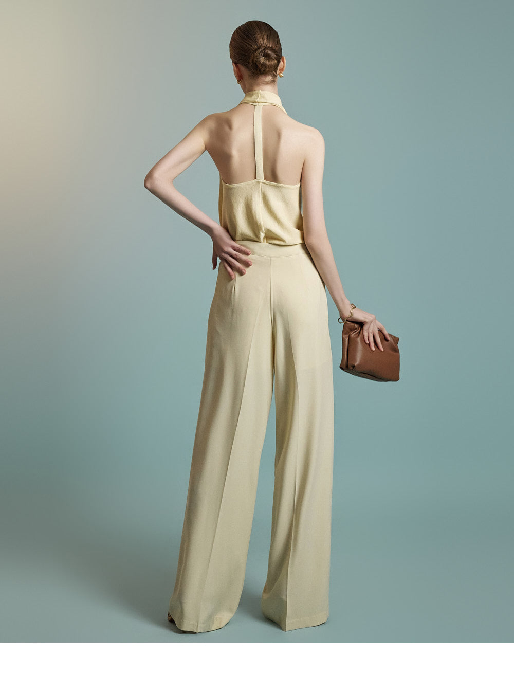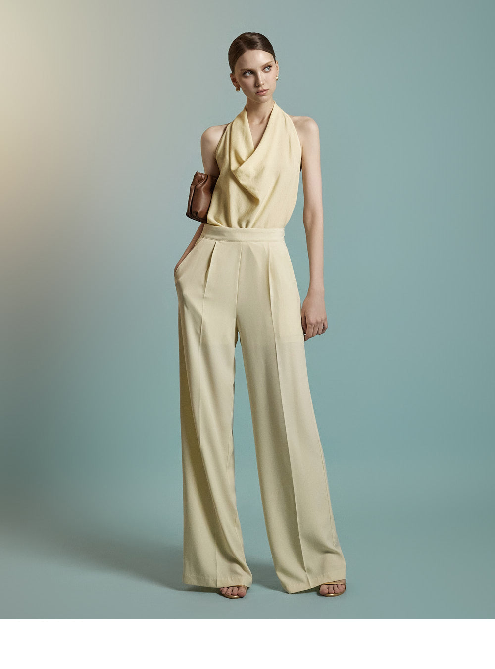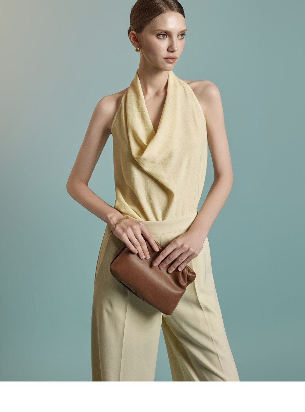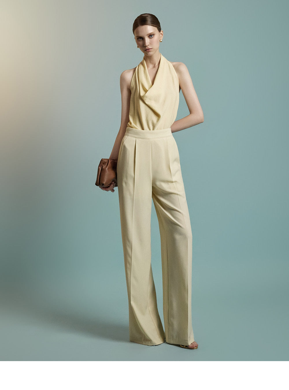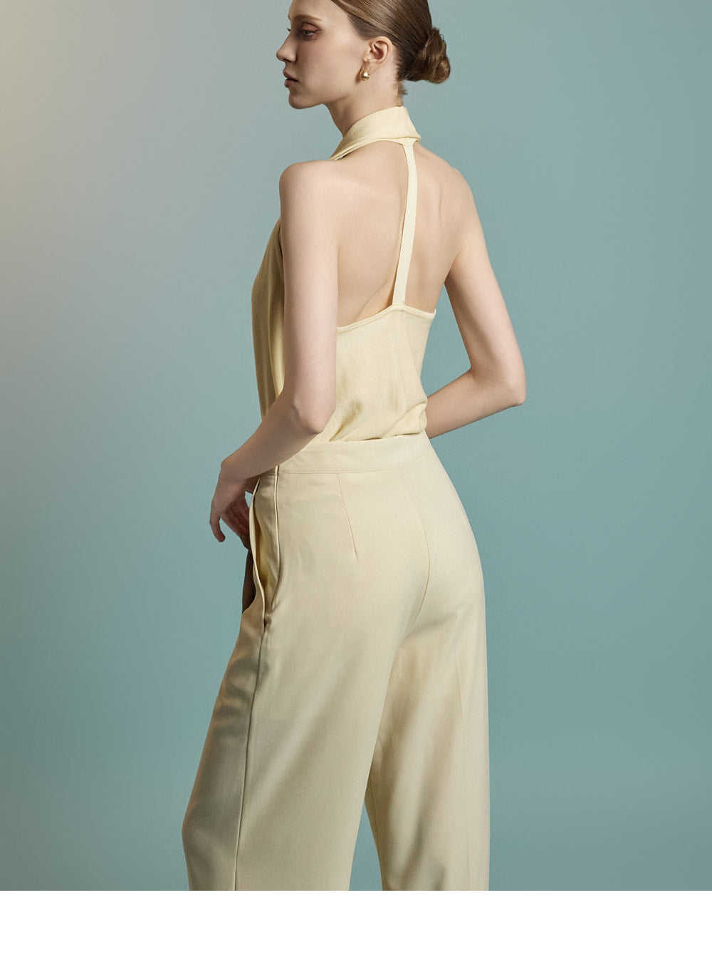 Featuring a halter neck with a draped silhouette,