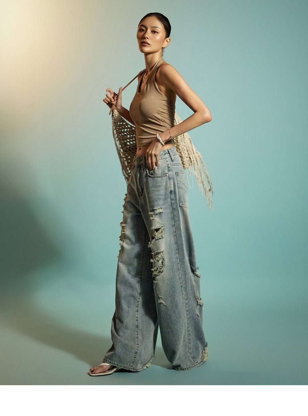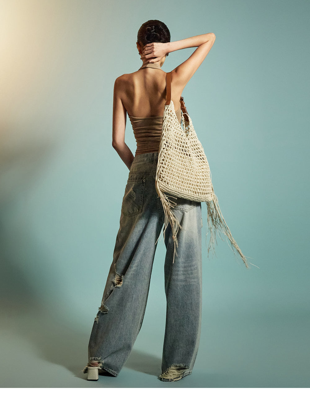 デニム素材の場合、素材の特性上水が抜ける場合がございます。