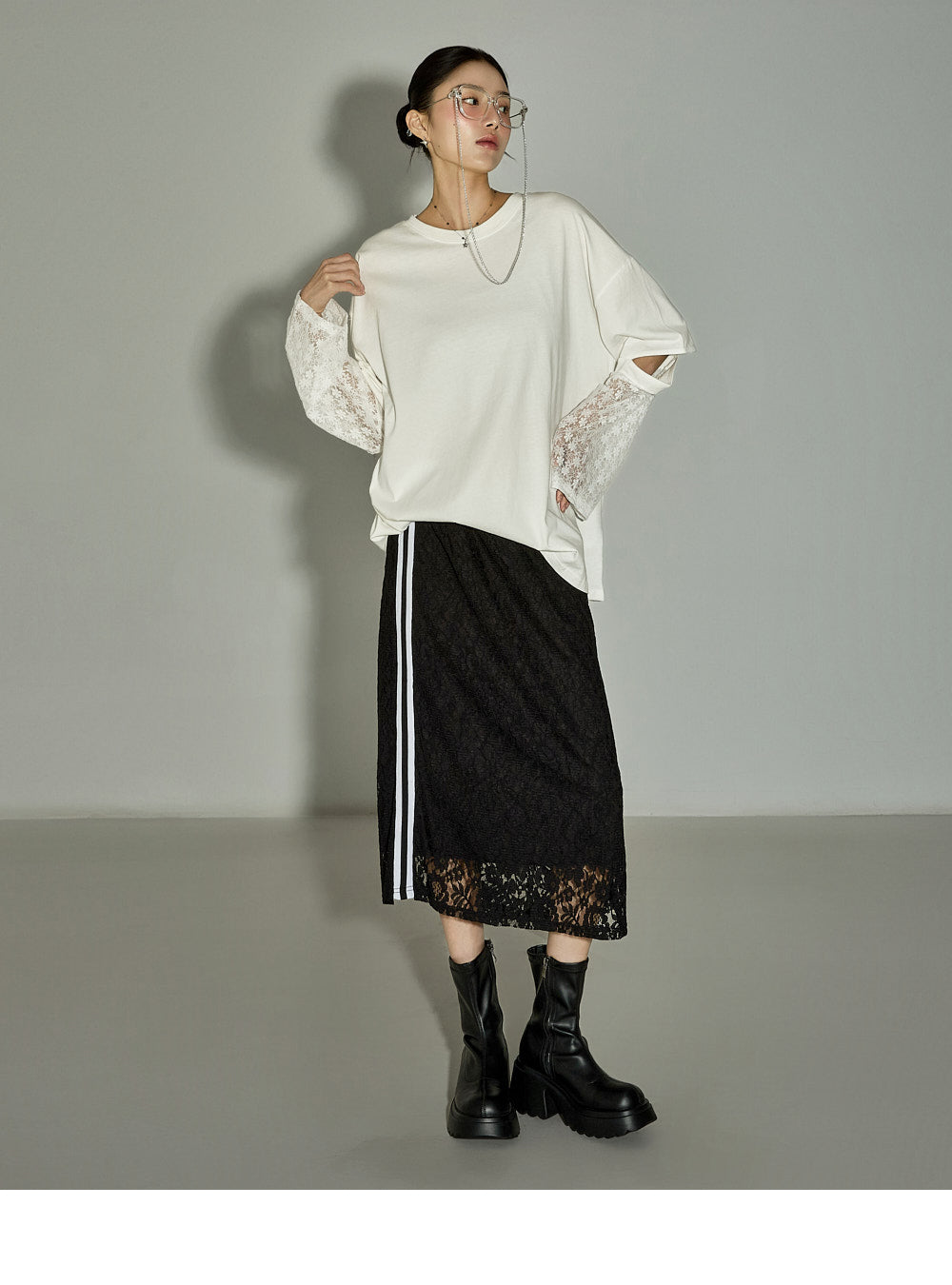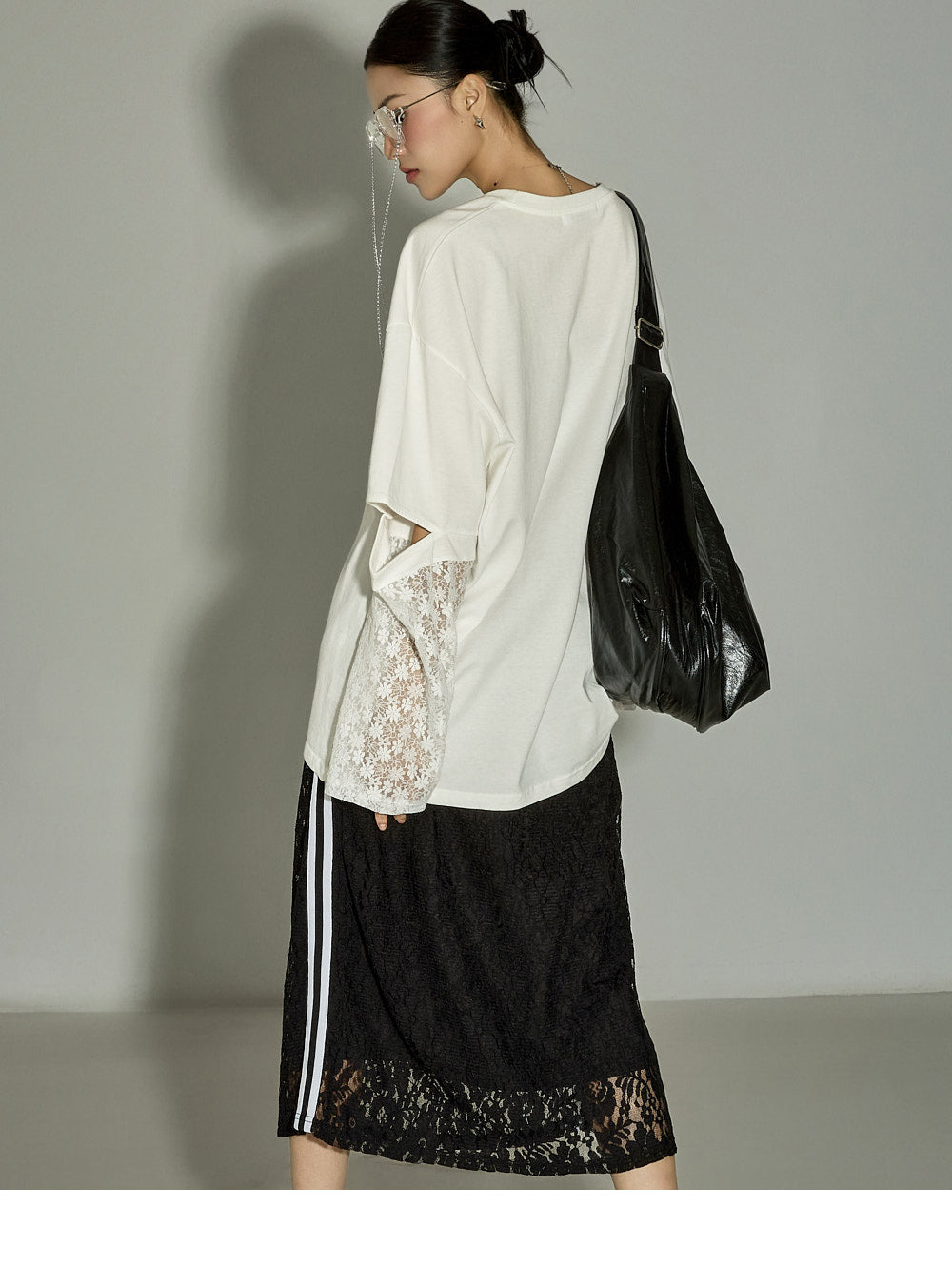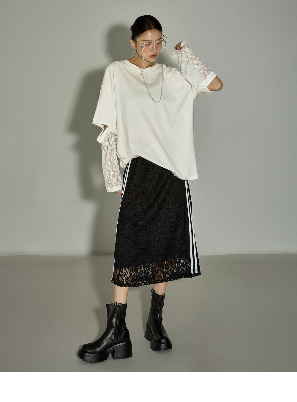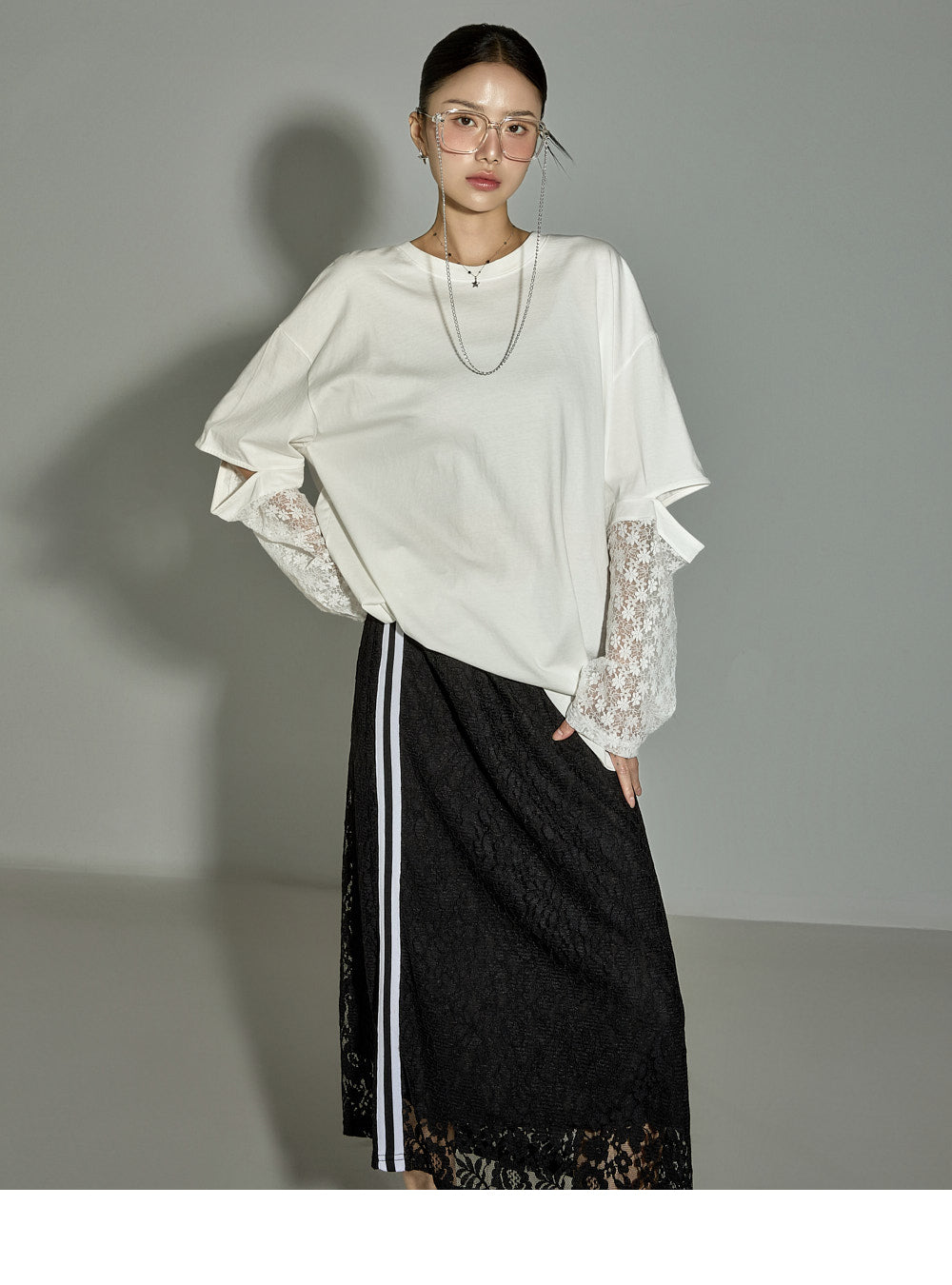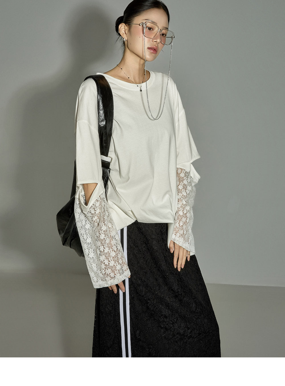 The sleeves feature a unique design with a mix of colored lace and leopard print,