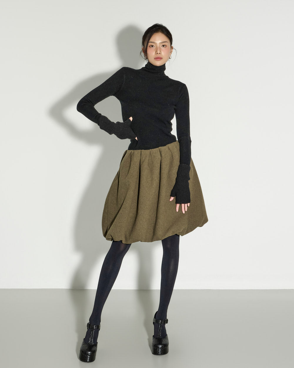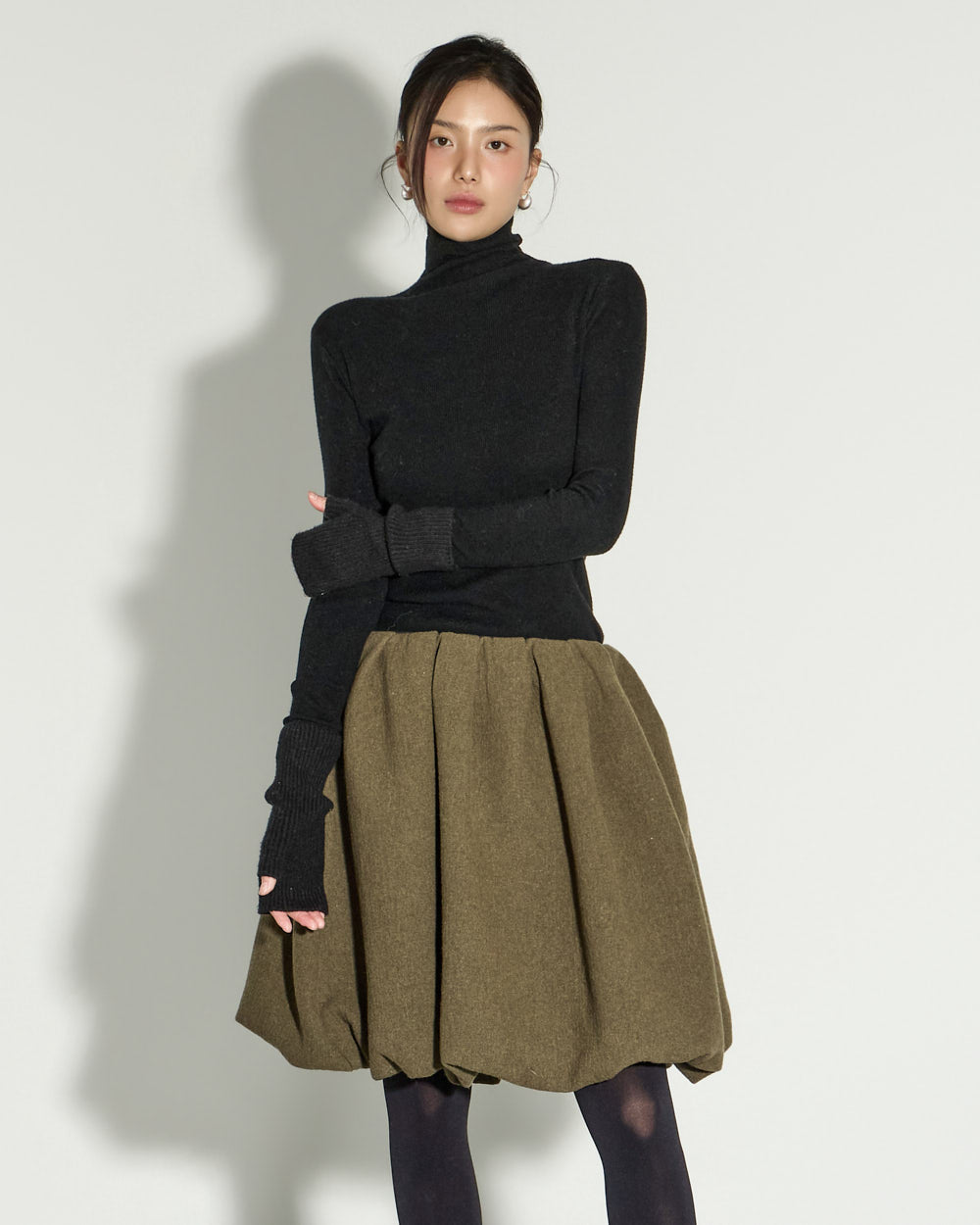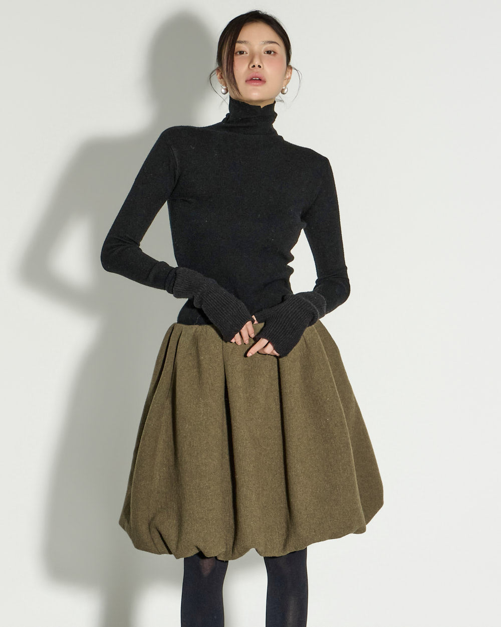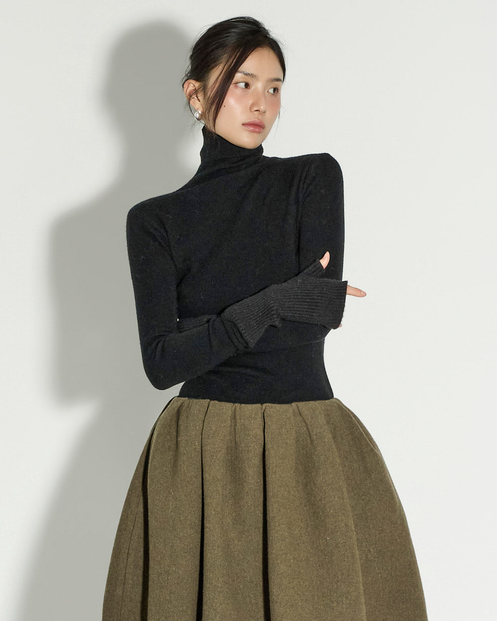 This basic ribbed turtleneck top is made of soft, stretchy polyester,