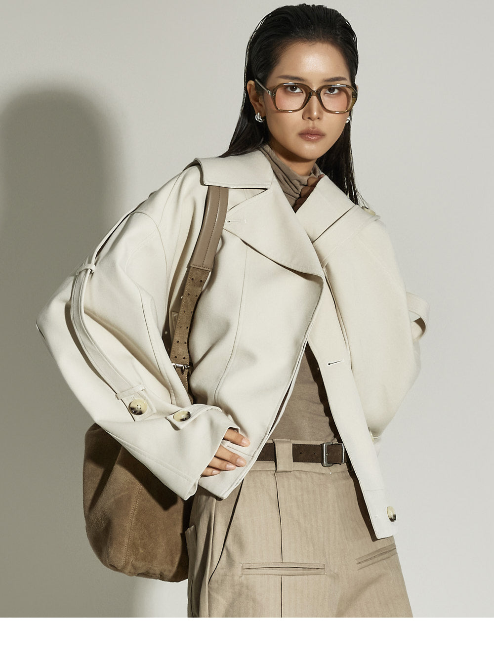 Model is 173cm tall and is wearing size ONE in BEIGE.