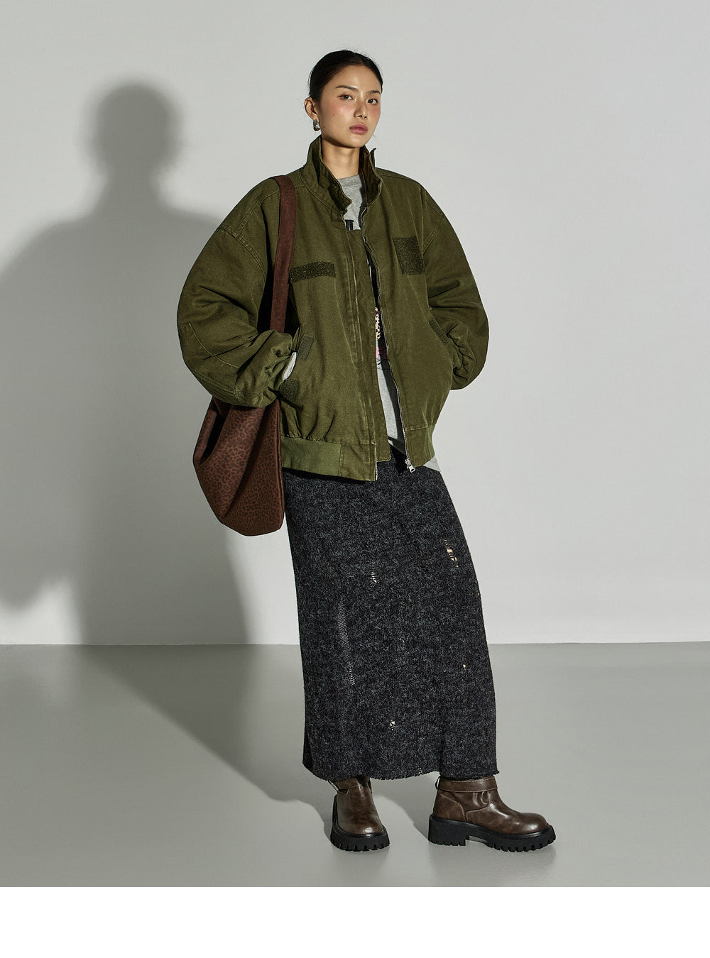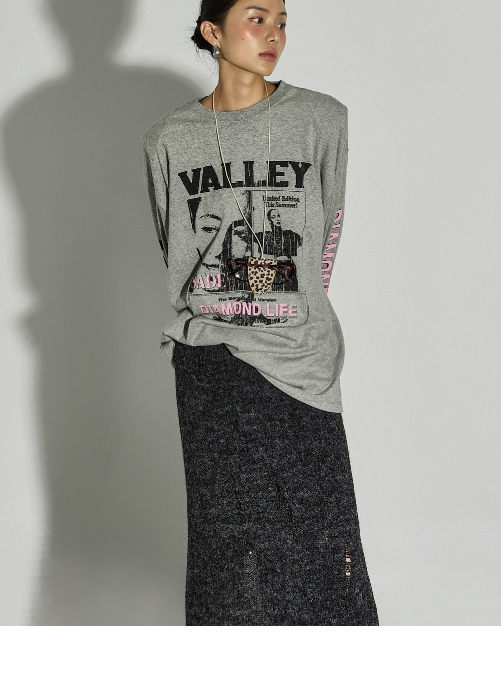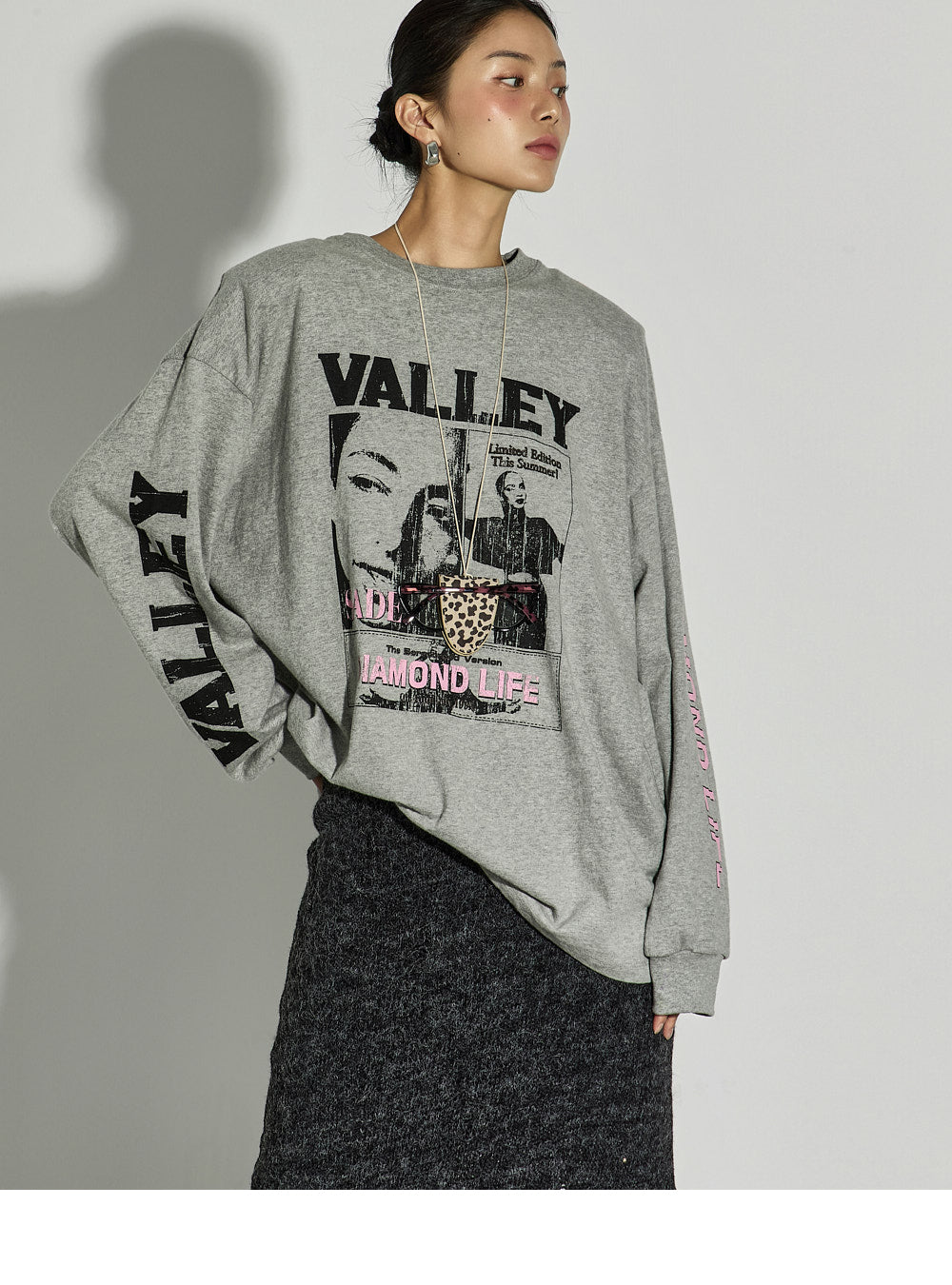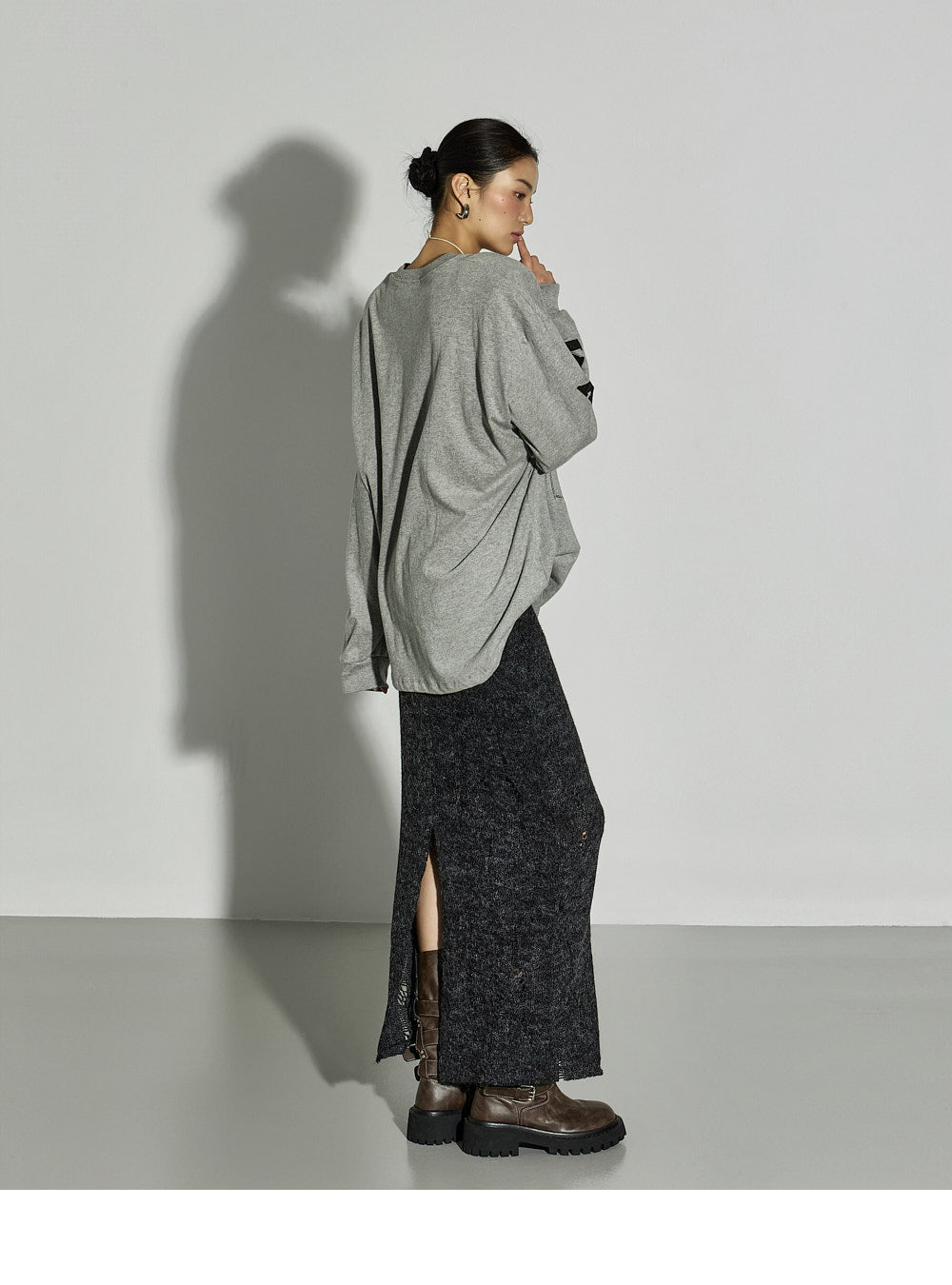 The 171cm model is wearing size ONE in GRAY.