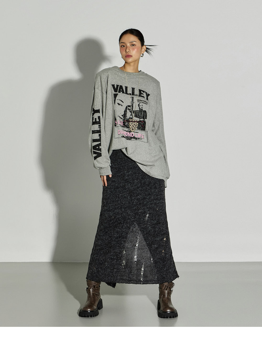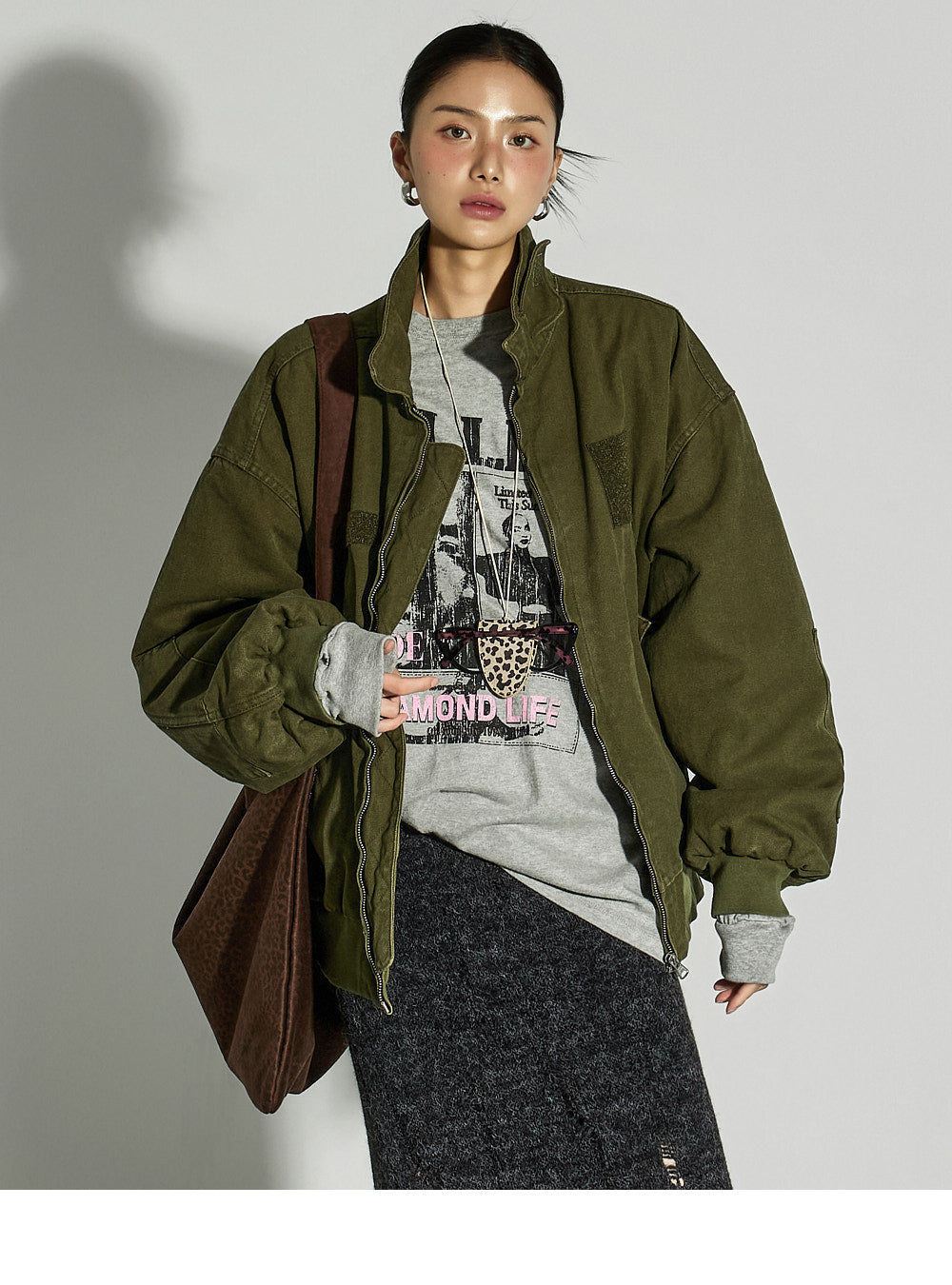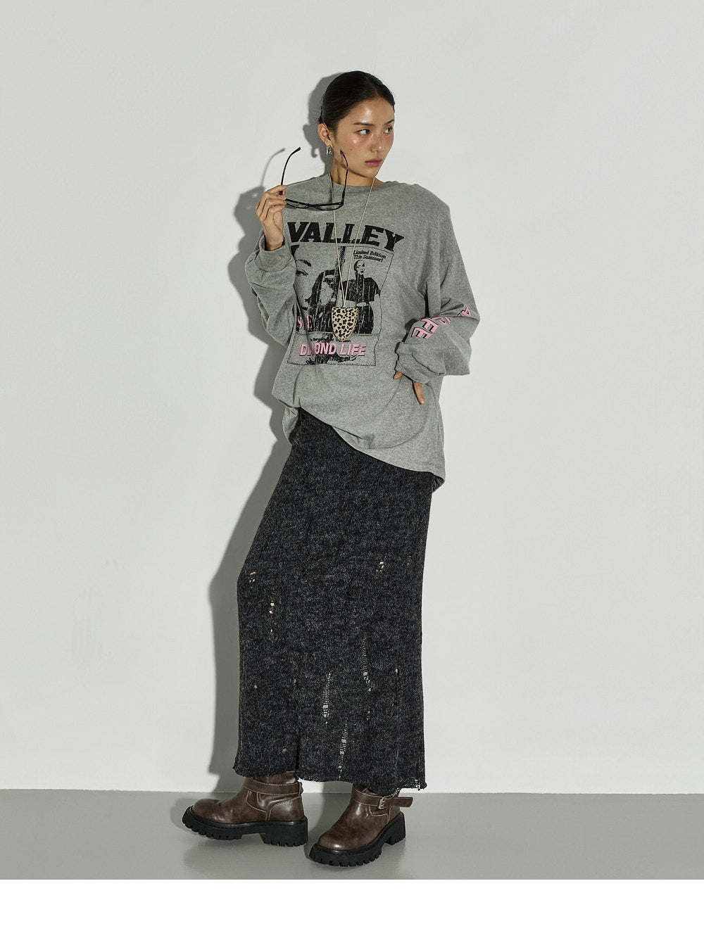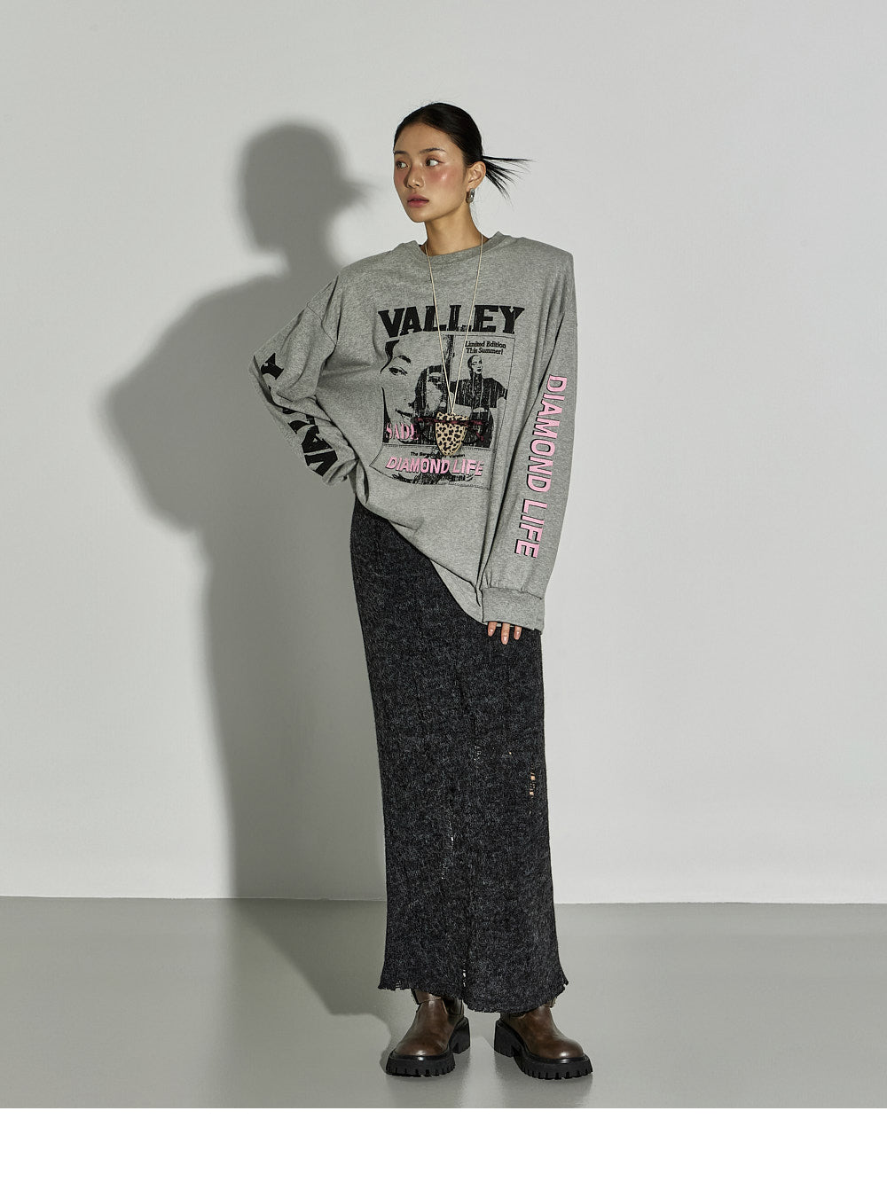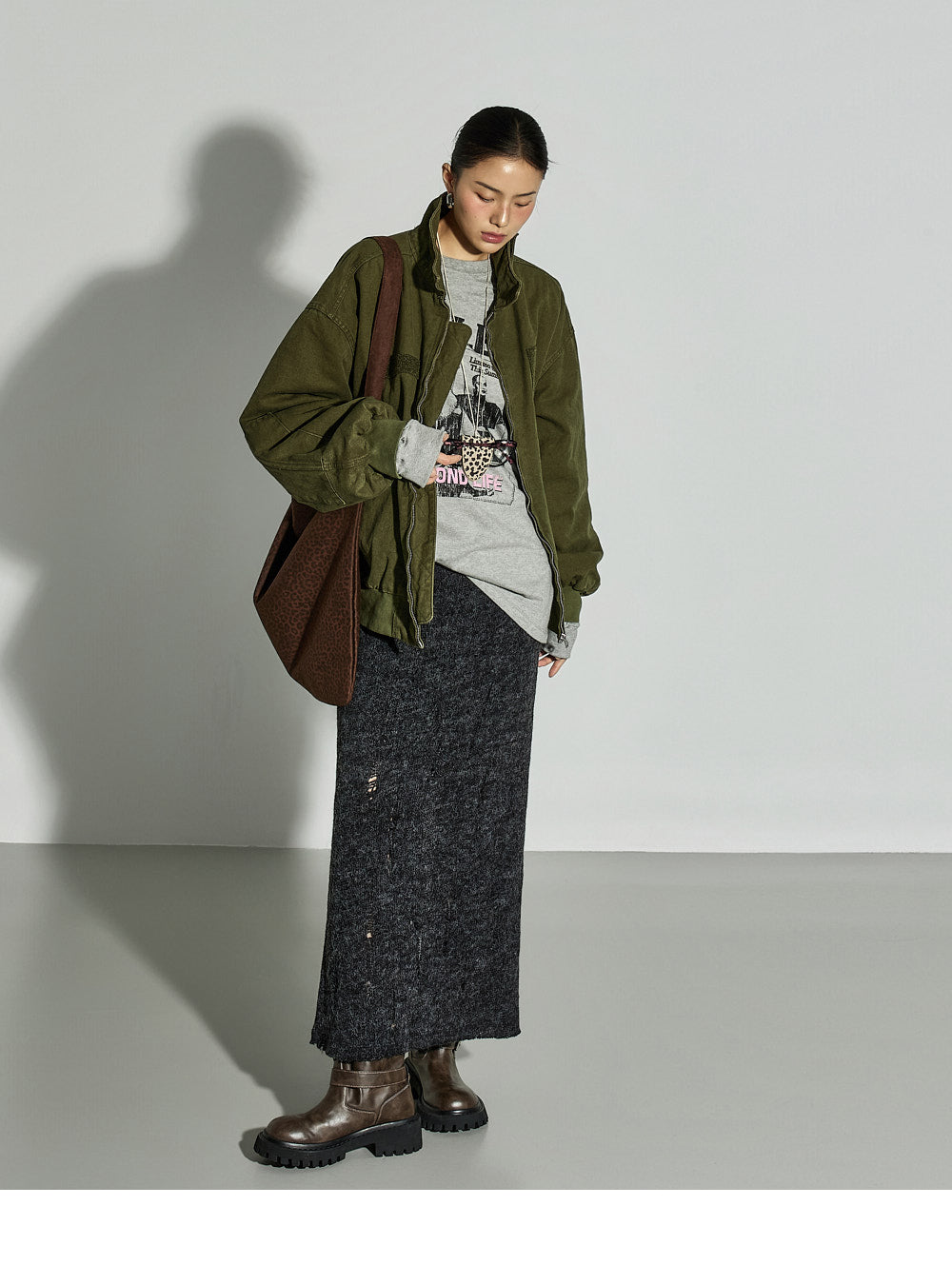The 171cm model is wearing size ONE in GRAY.