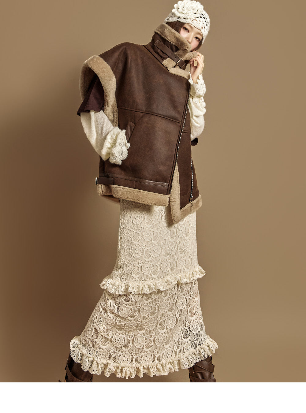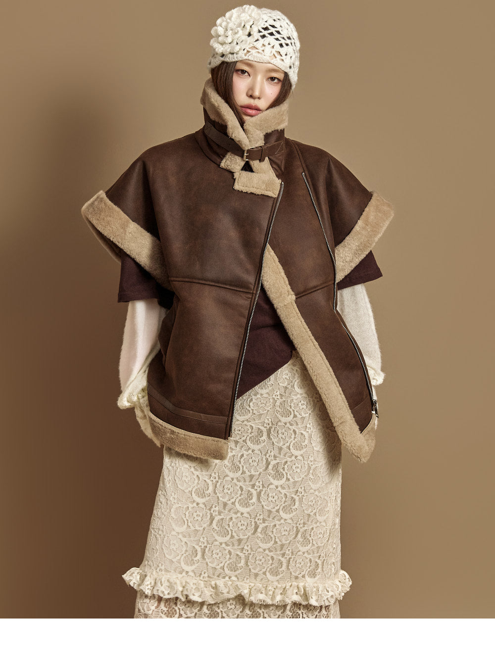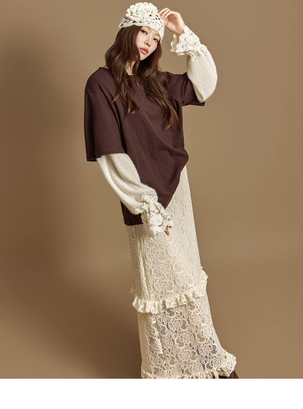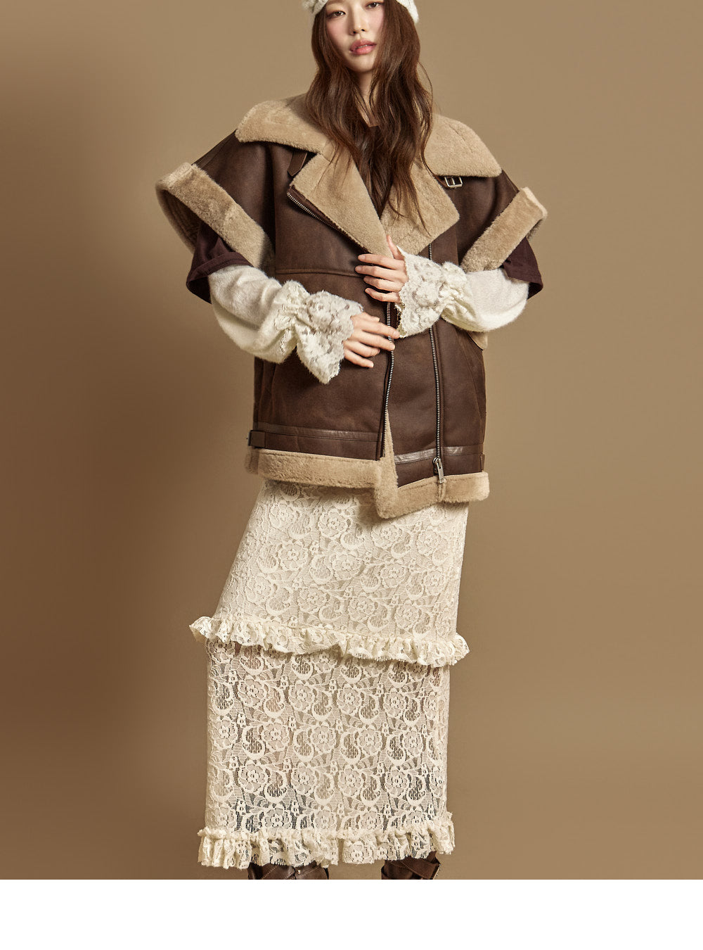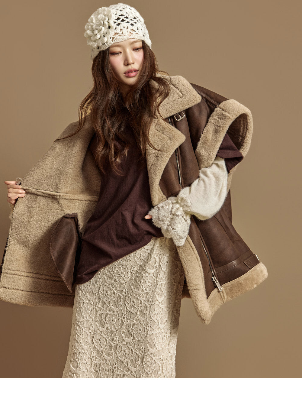The 171cm model is wearing size ONE in DARK BROWN.
