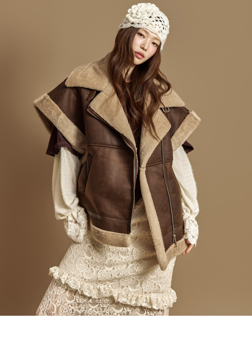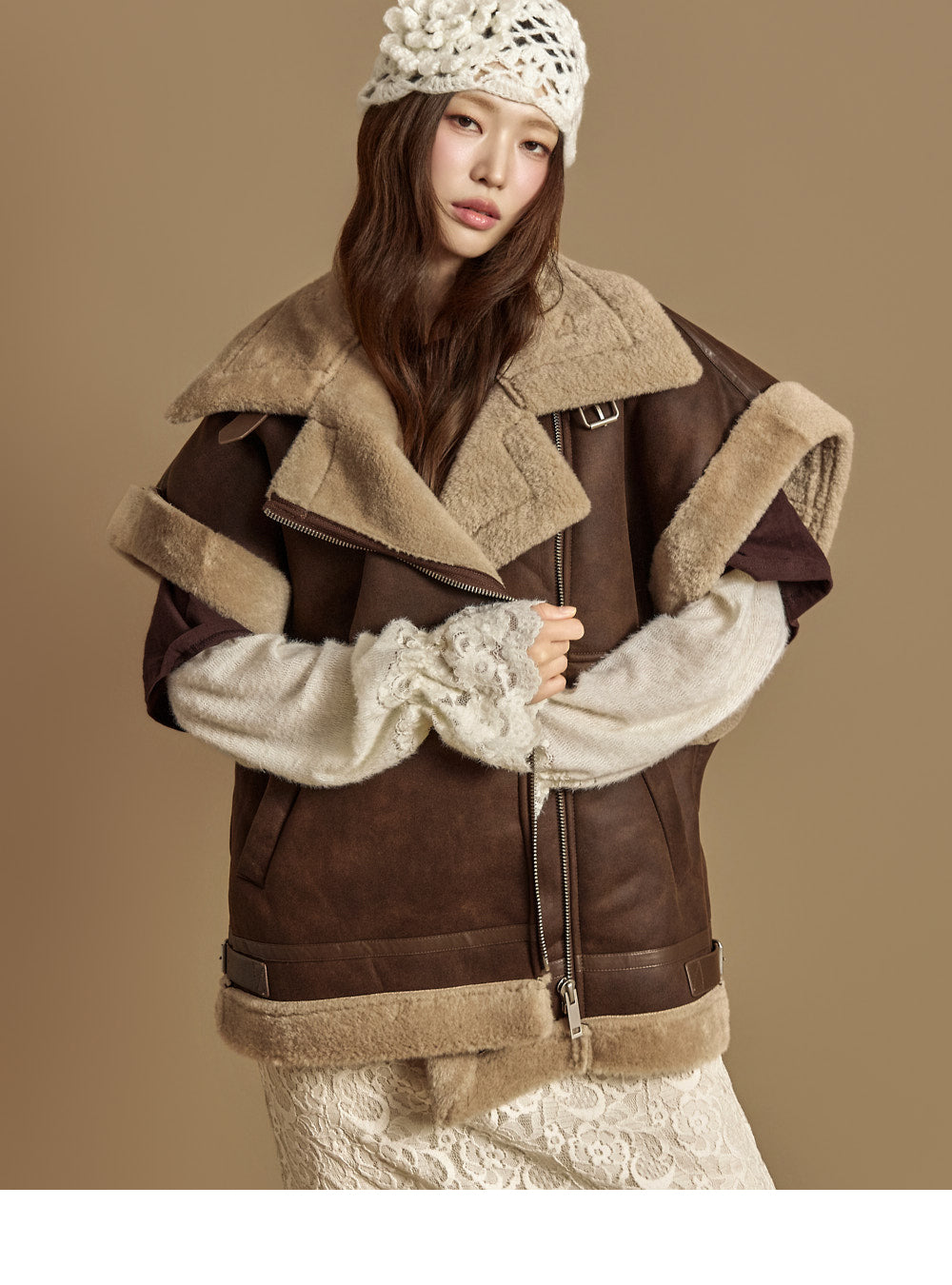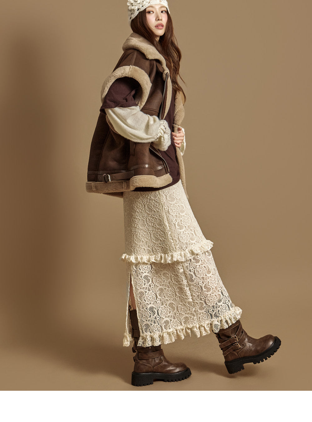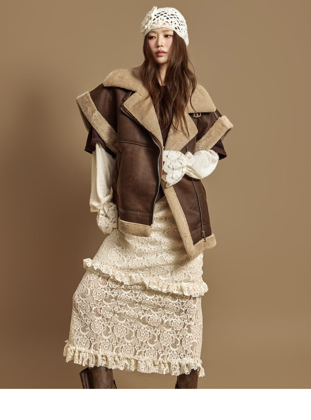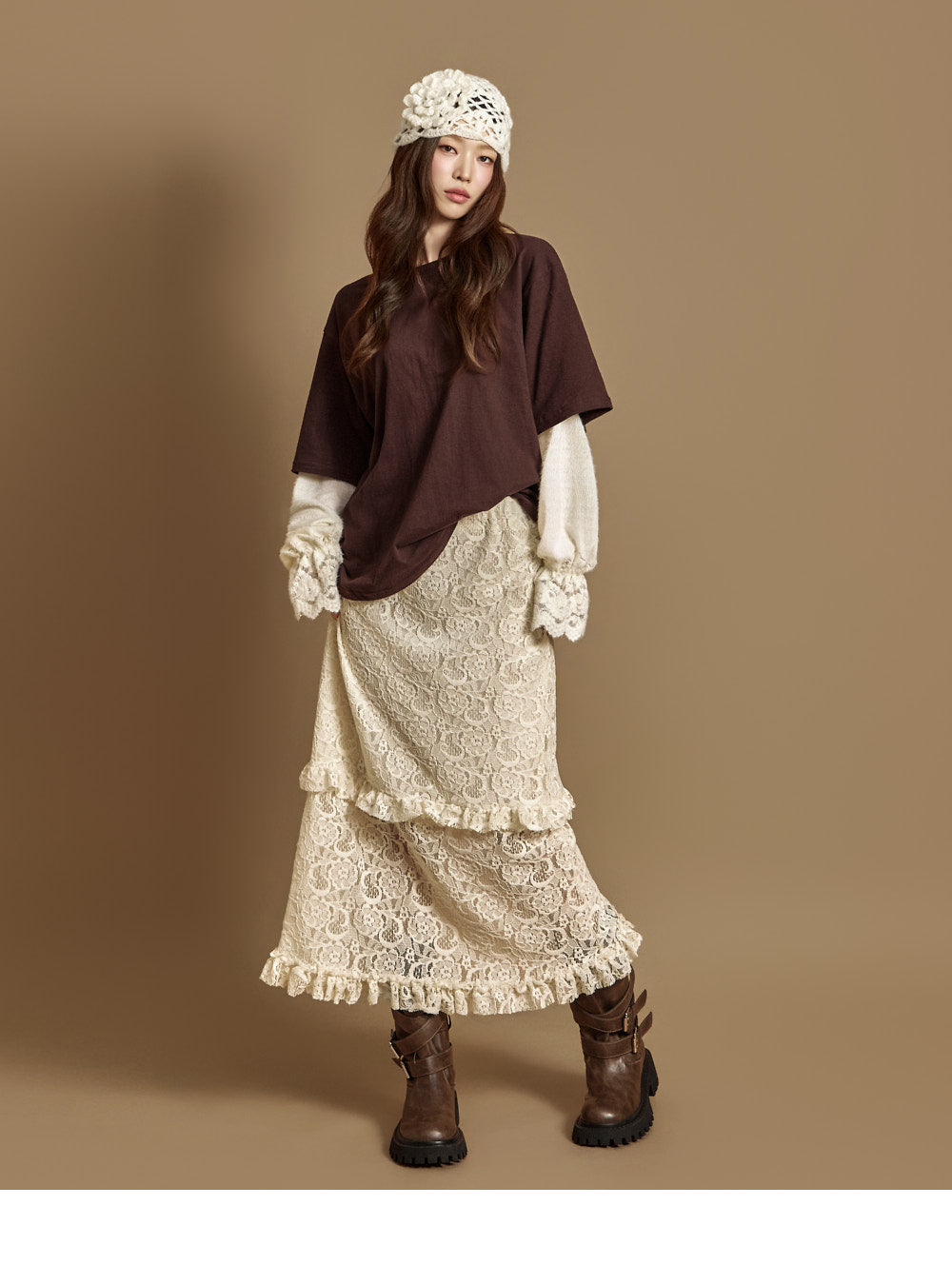 The 171cm model is wearing size ONE in DARK BROWN.