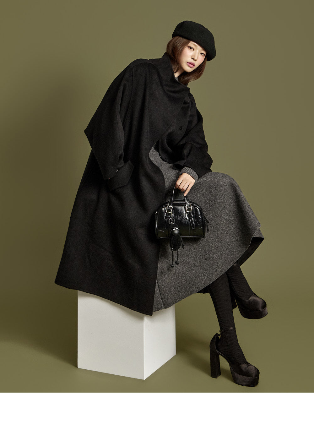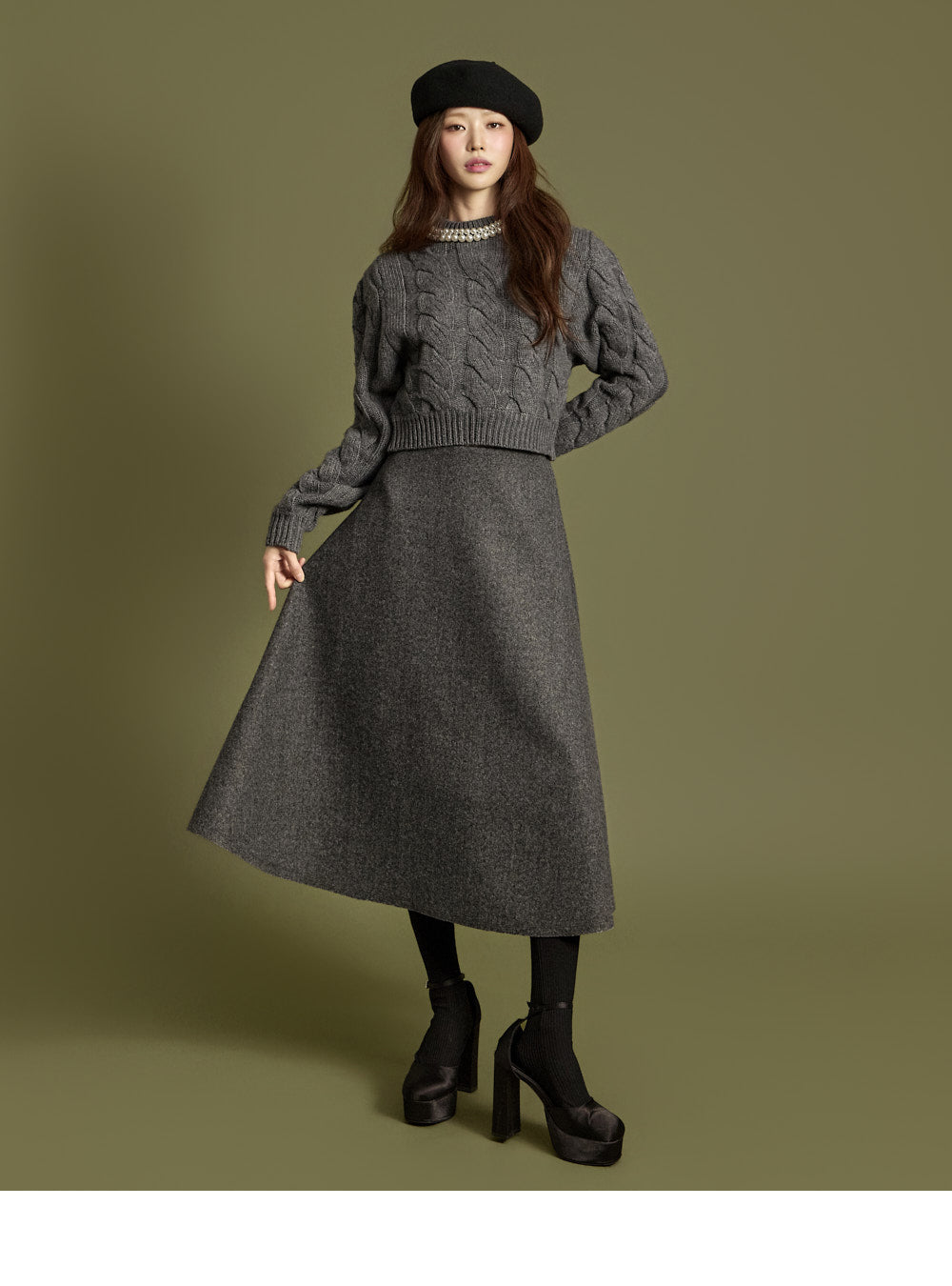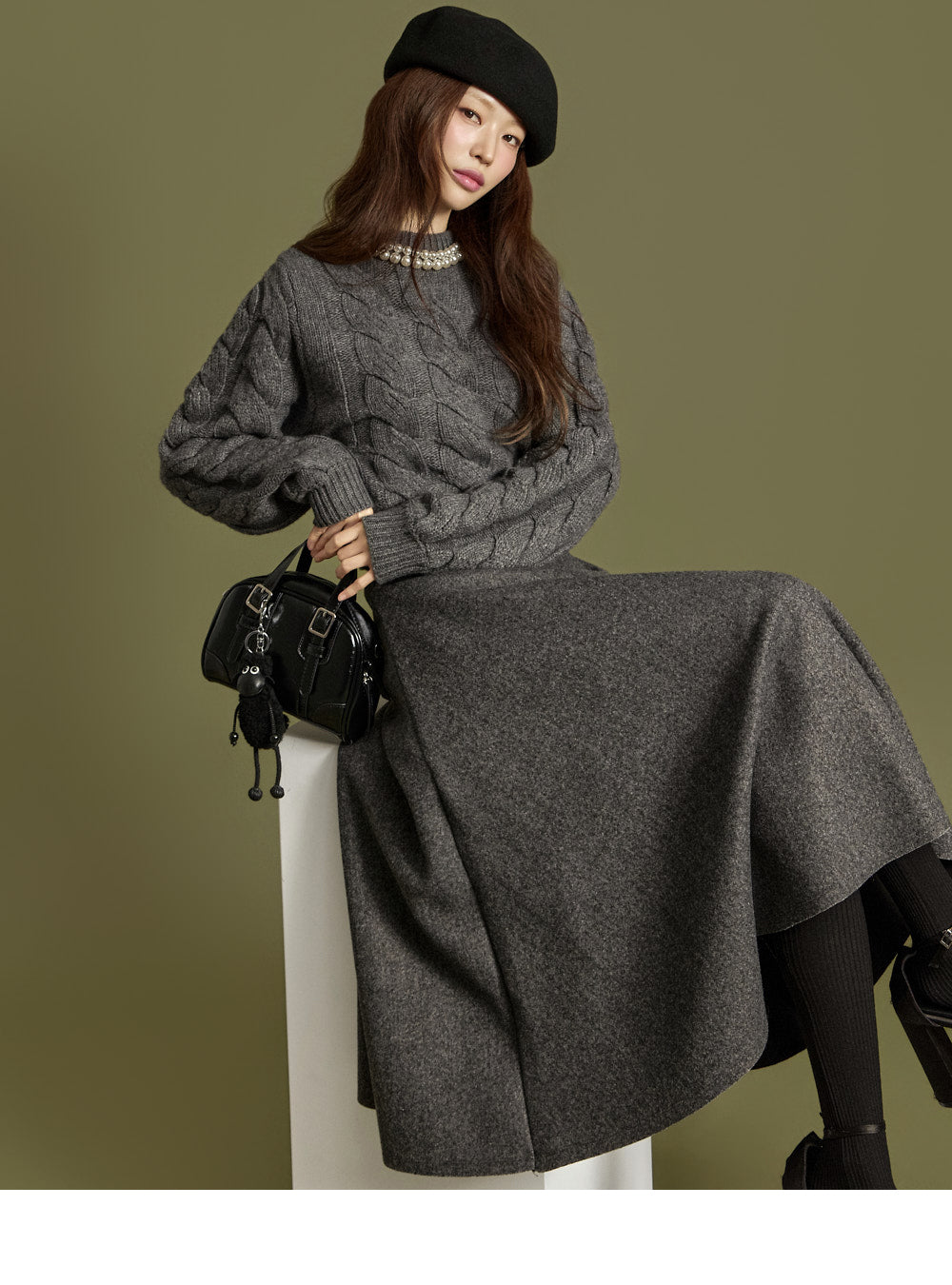 The 171cm model is wearing size ONE in GRAY.