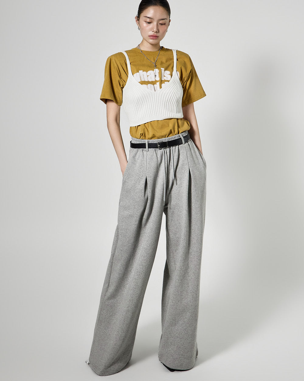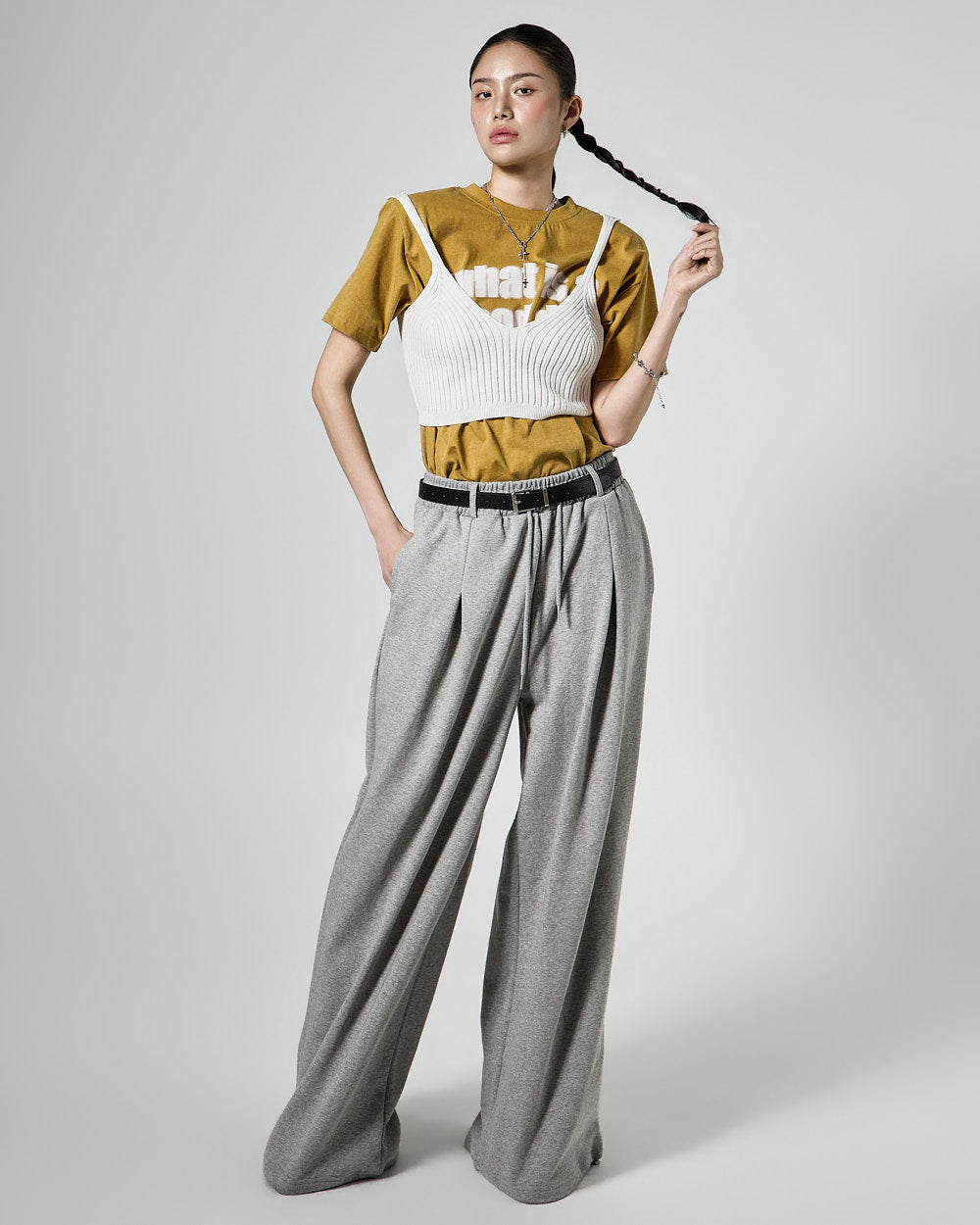 The 171cm model is wearing size ONE in IVORY.