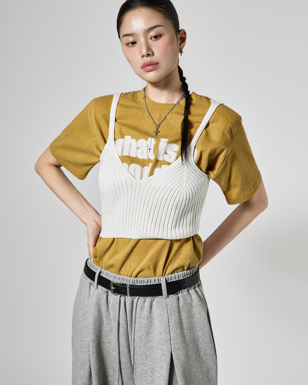 The simple design allows for layering with a variety of tops,