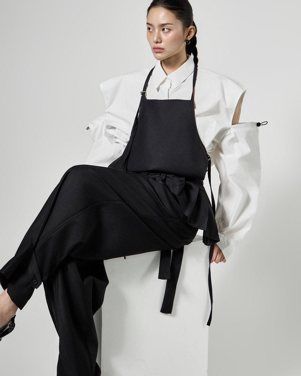 This pleated apron top has a modern vibe.