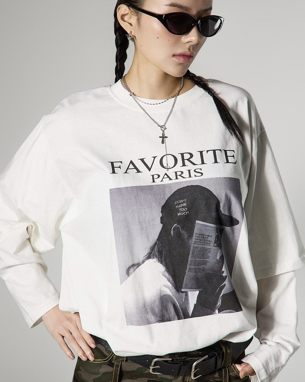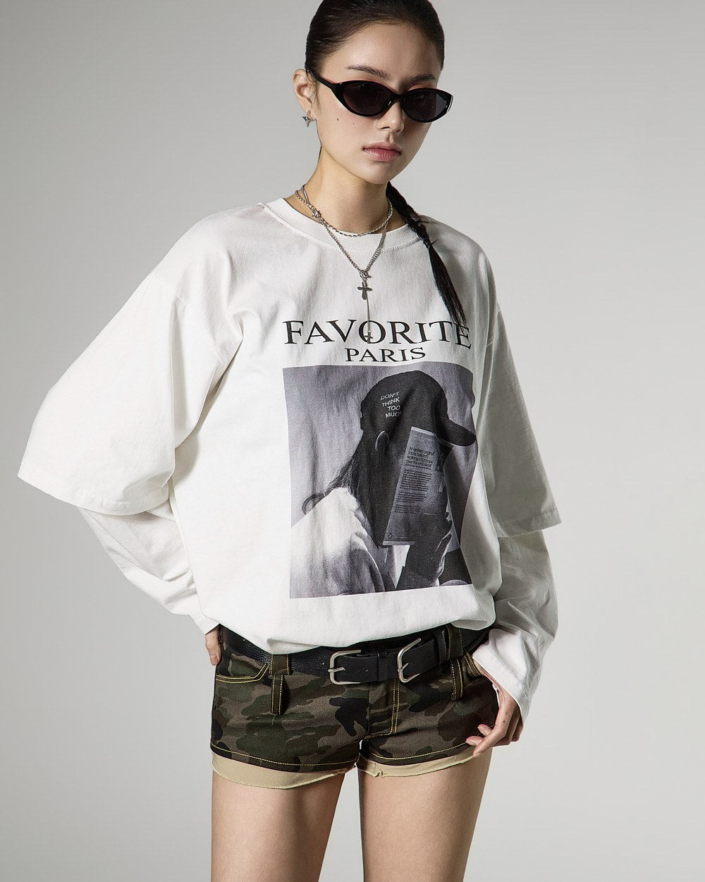 全体的にすっきりとしたシルエットに、フロントのプリントがアクセントとなり、