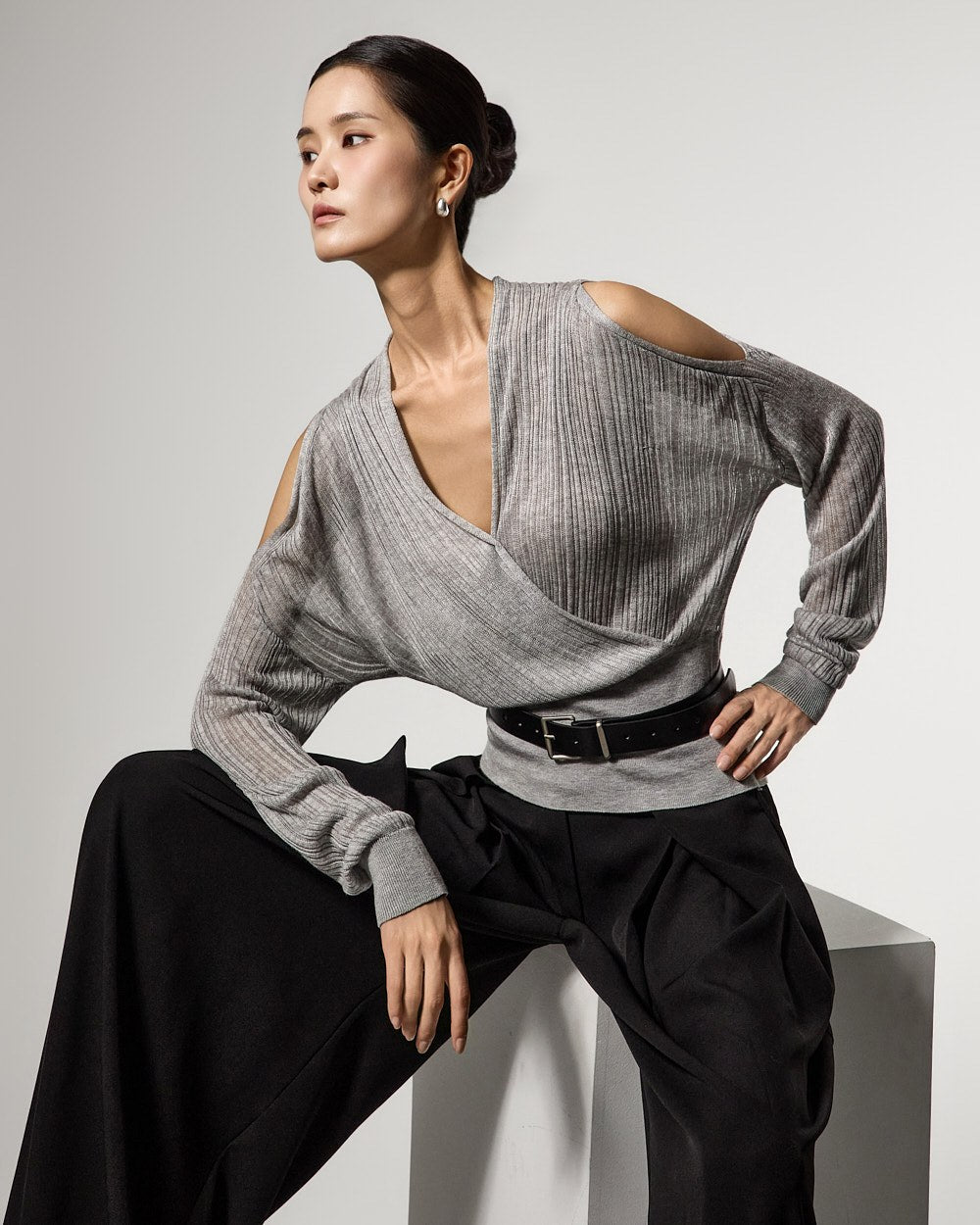 ショルダーカットアウトのディテールがさりげないスタイリッシュなアクセントを添えます。