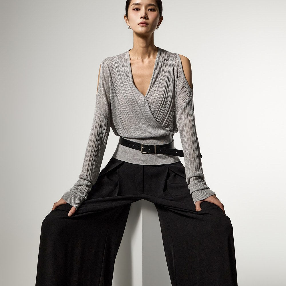 E4172 オフショルダーラップニット