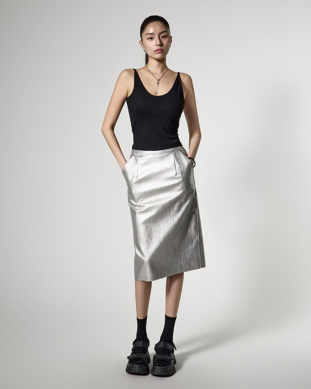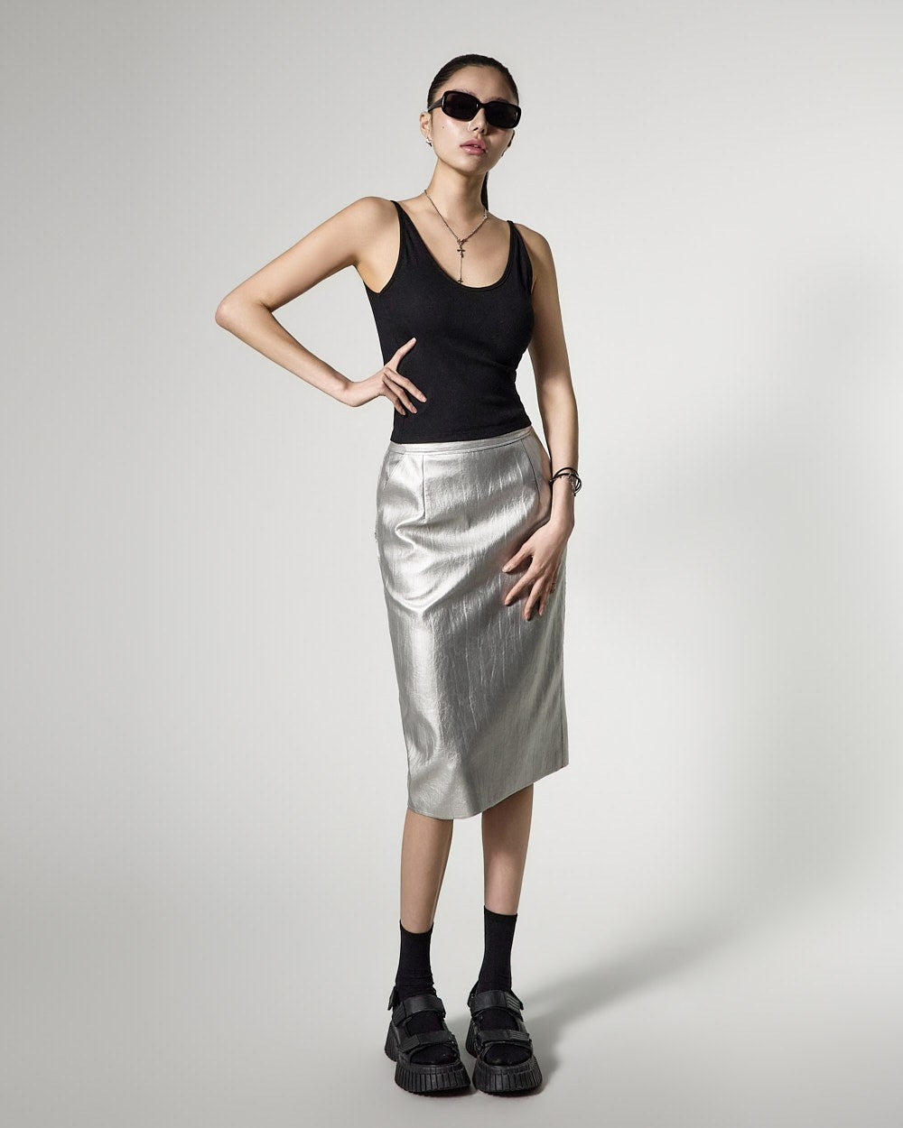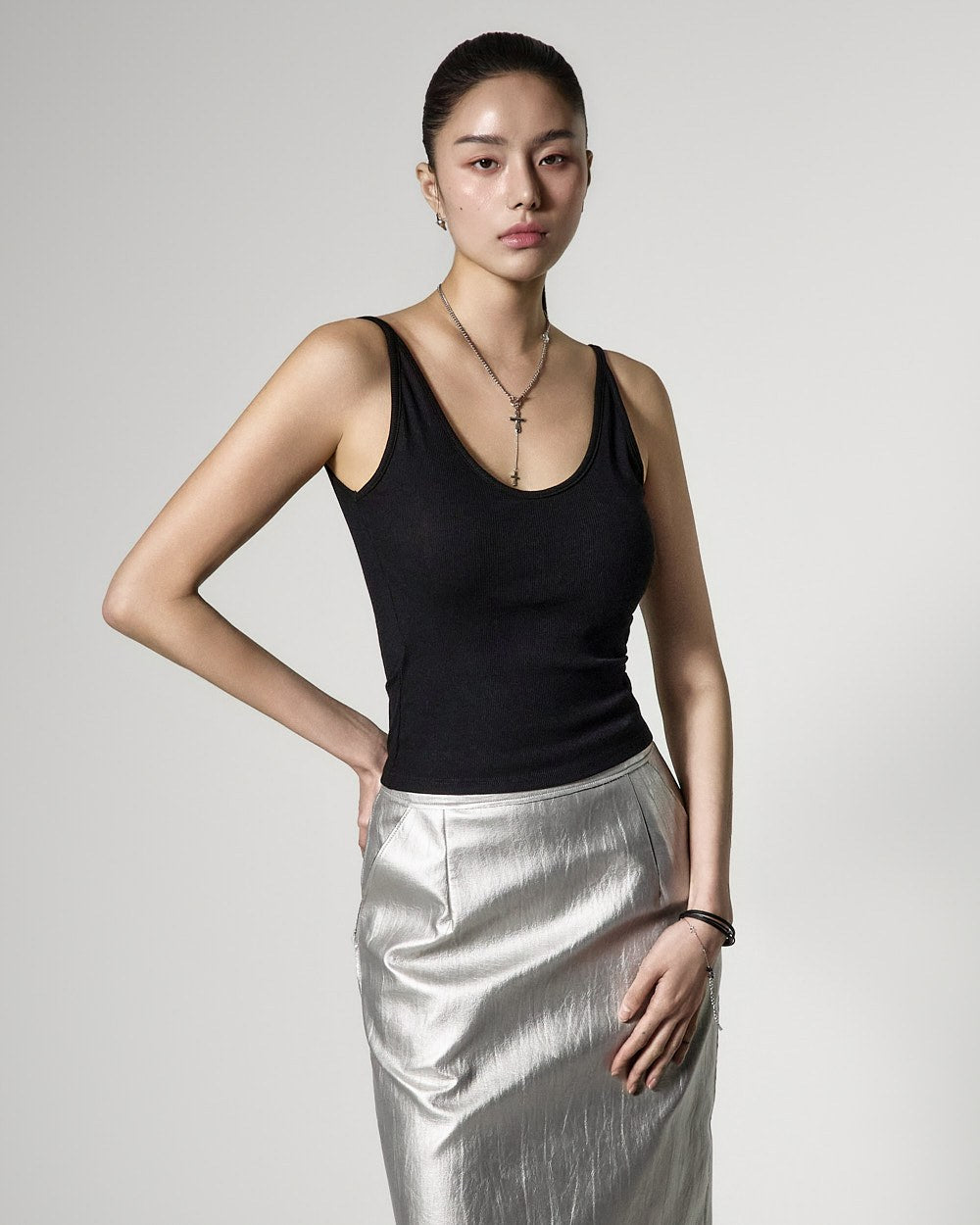 ミニマルで洗練された雰囲気のノースリーブトップスです。