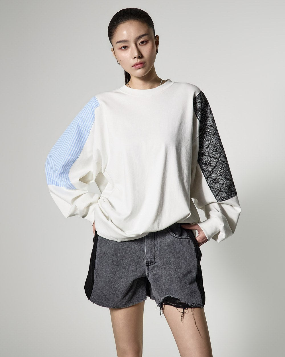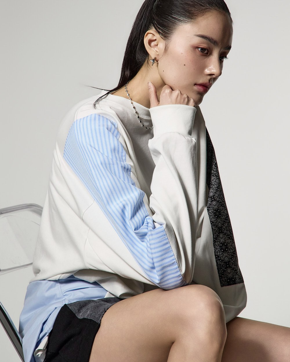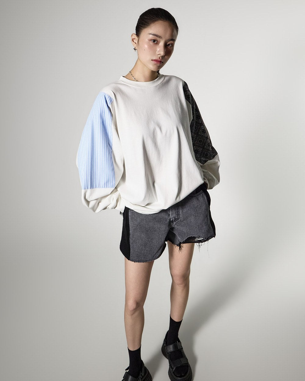 配色になった袖のディテールがポイントで、
