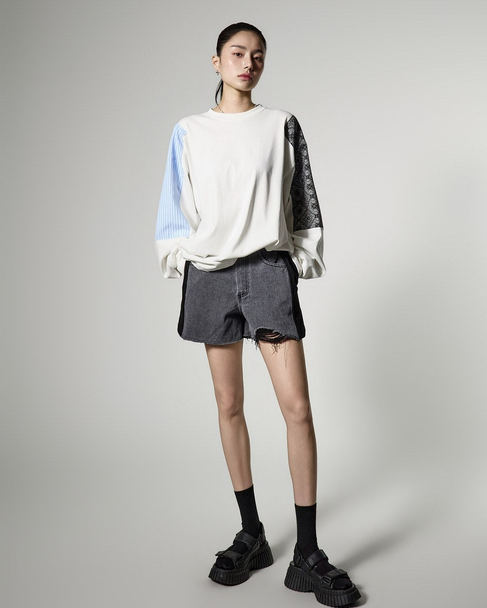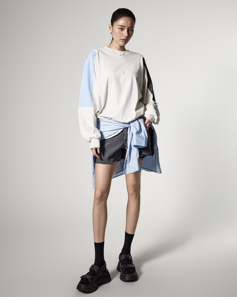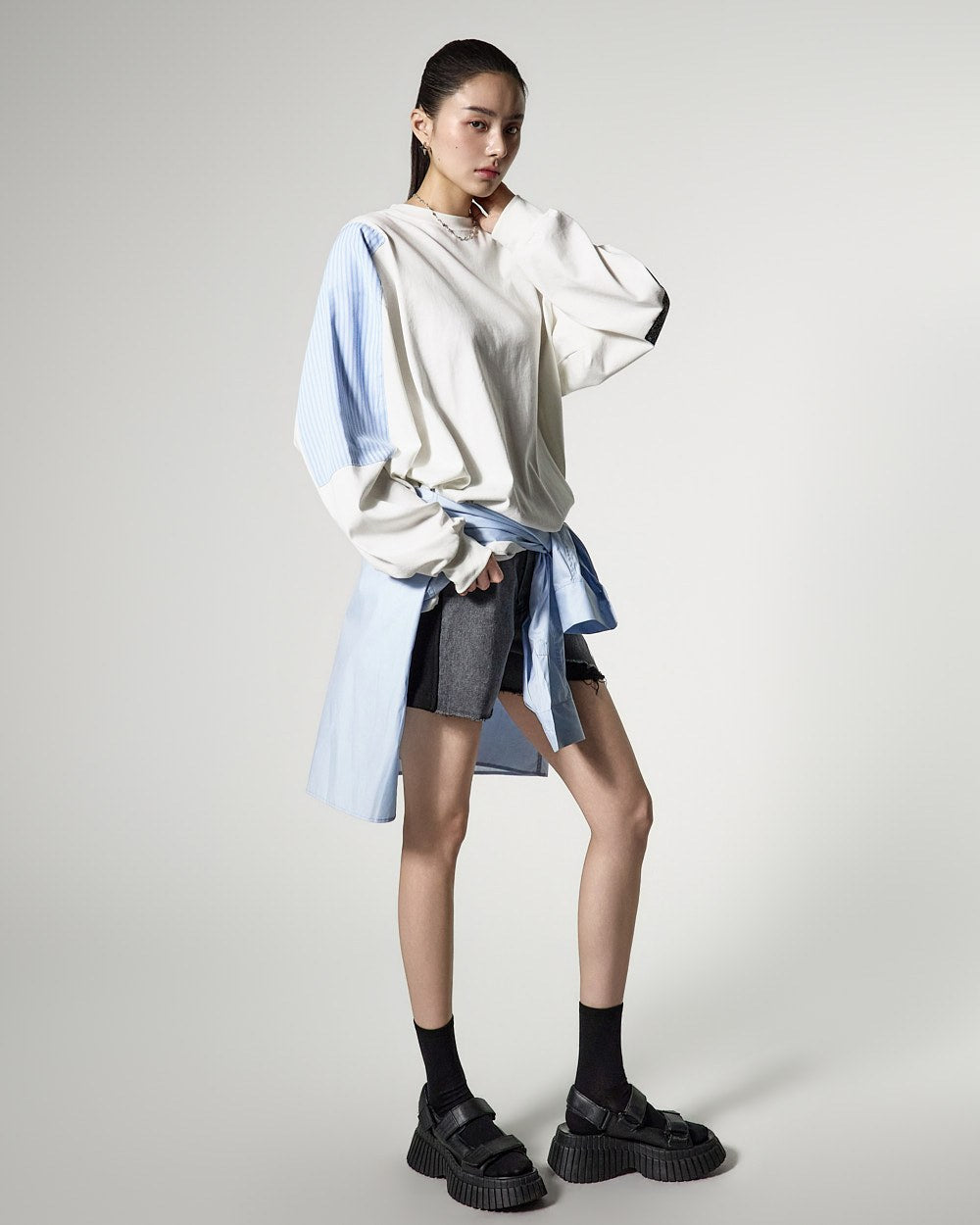 配色になった袖のディテールがポイントで、