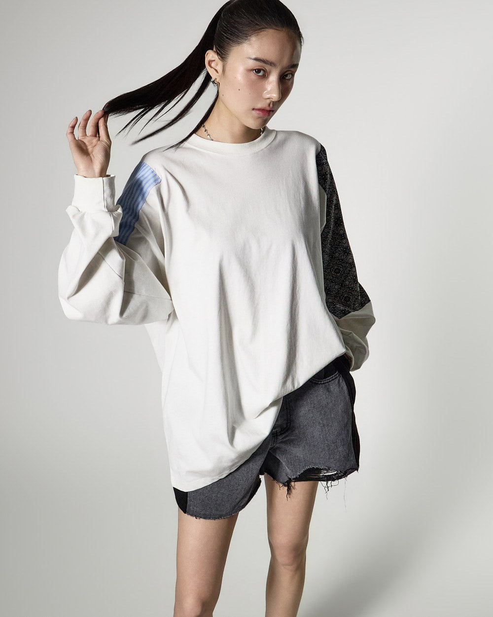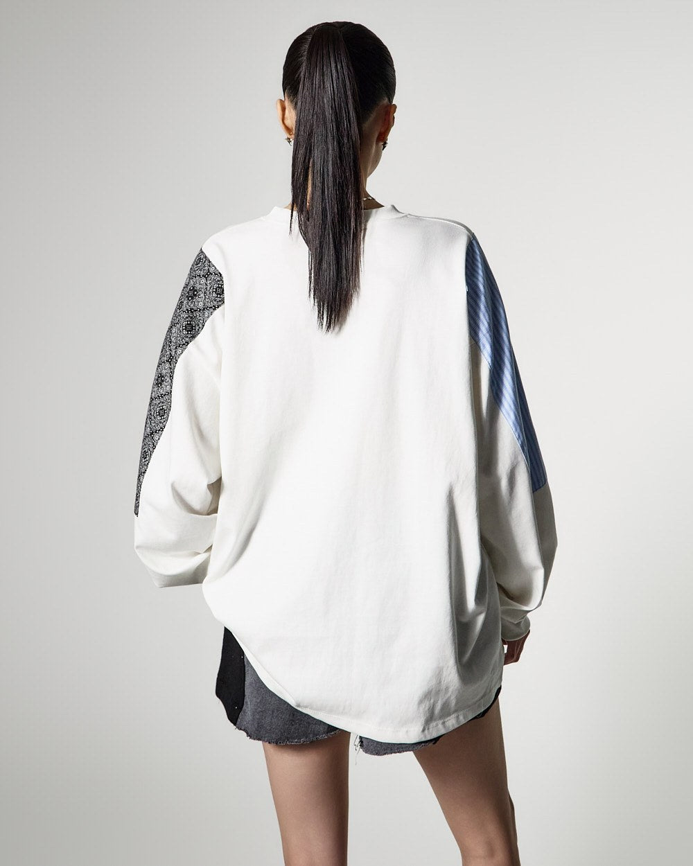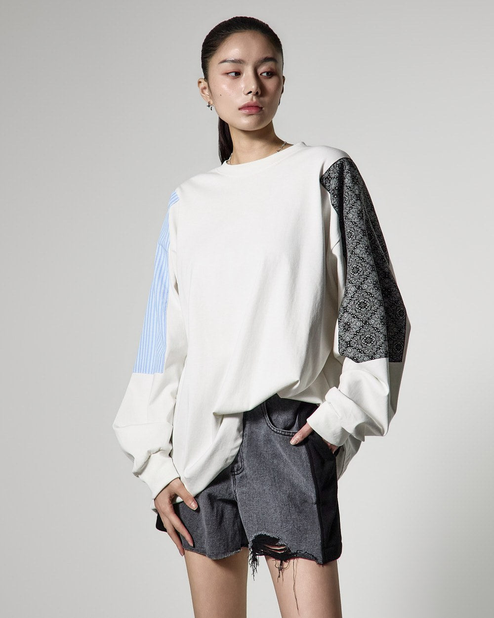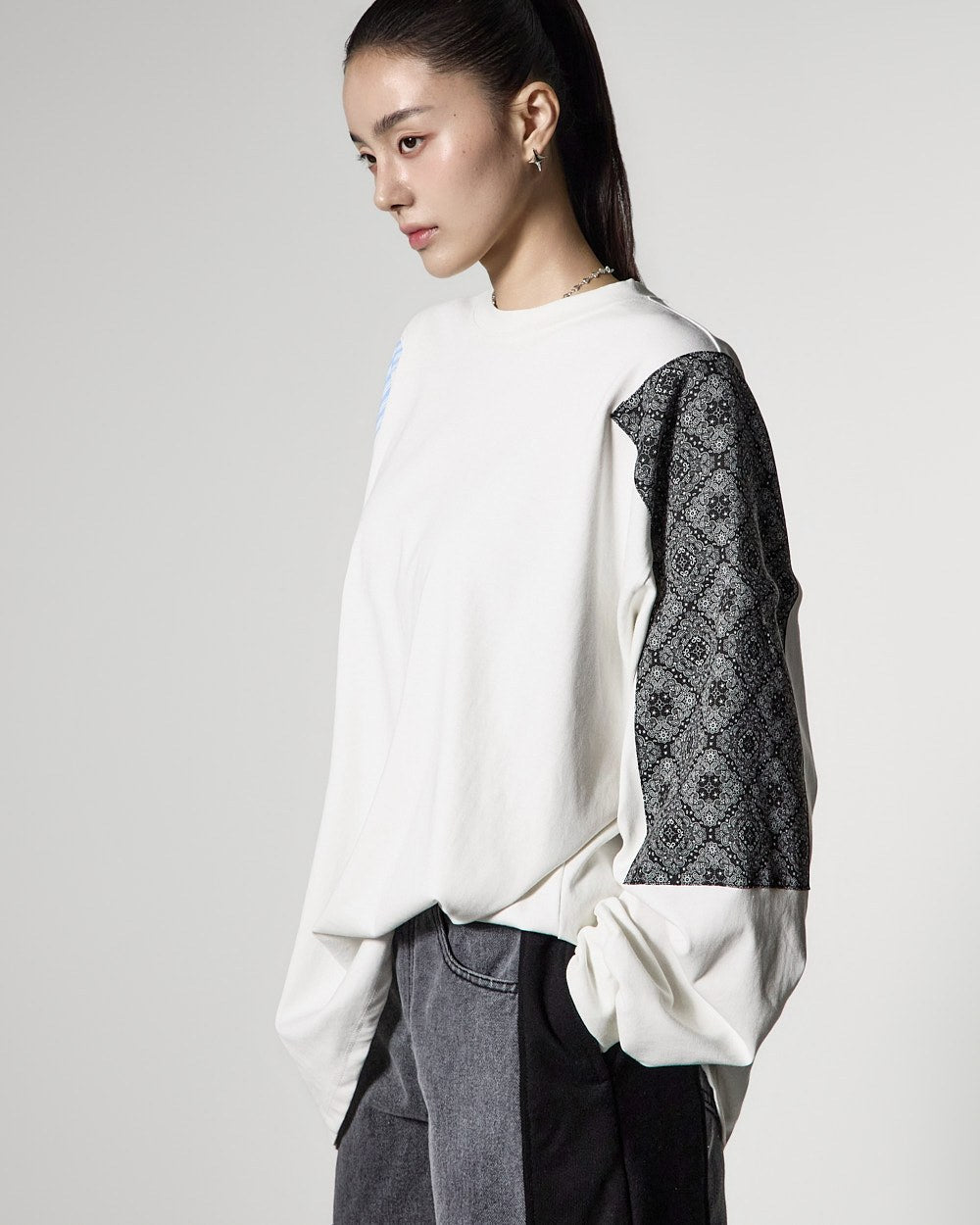 カジュアルなムードのパッチピグメントスウェットシャツです。