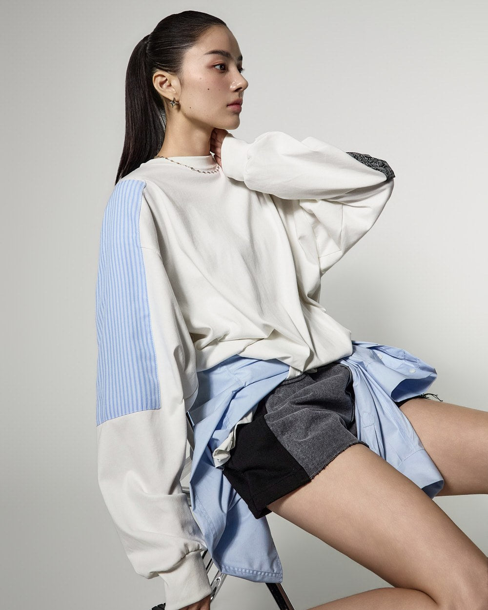 171cmのモデルがIVORYカラーのONEサイズを着用しています。