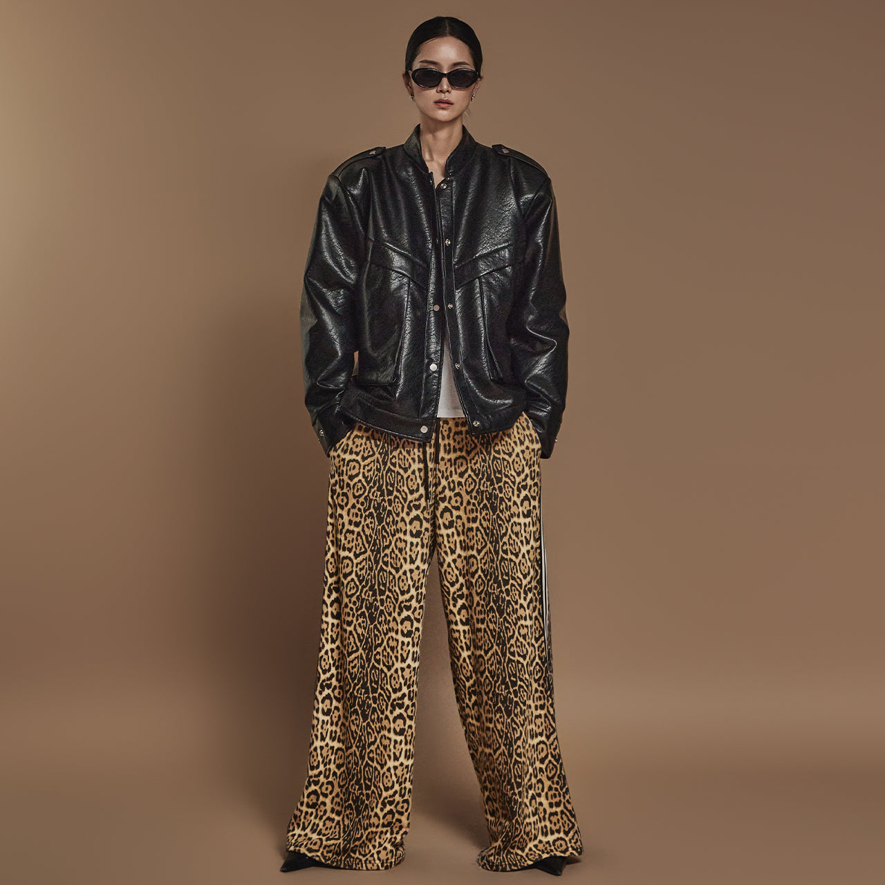 マンダリンカラーが洗練されたフェイスラインを演出します。