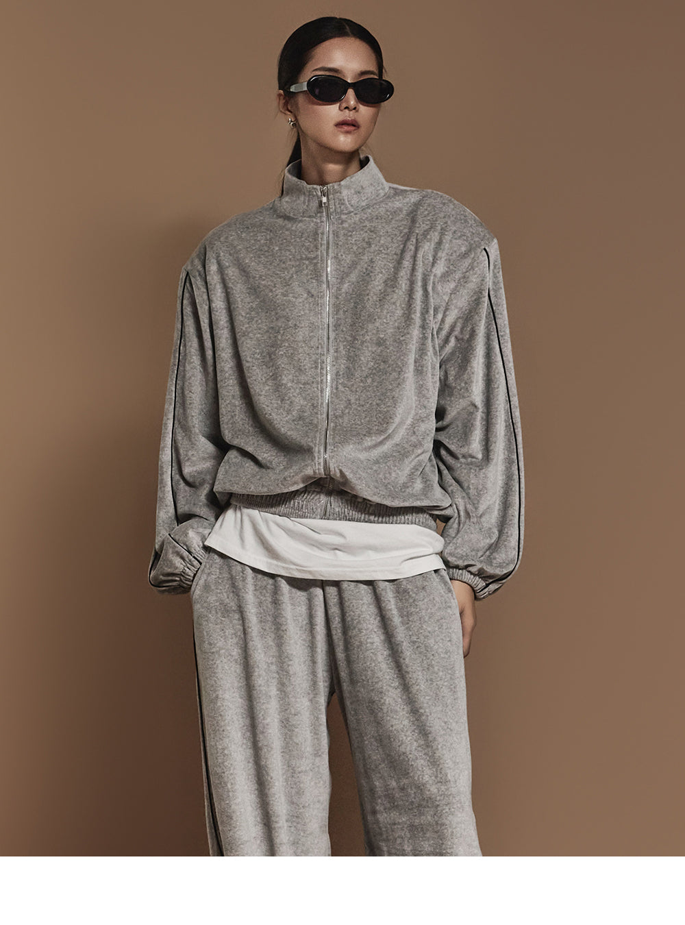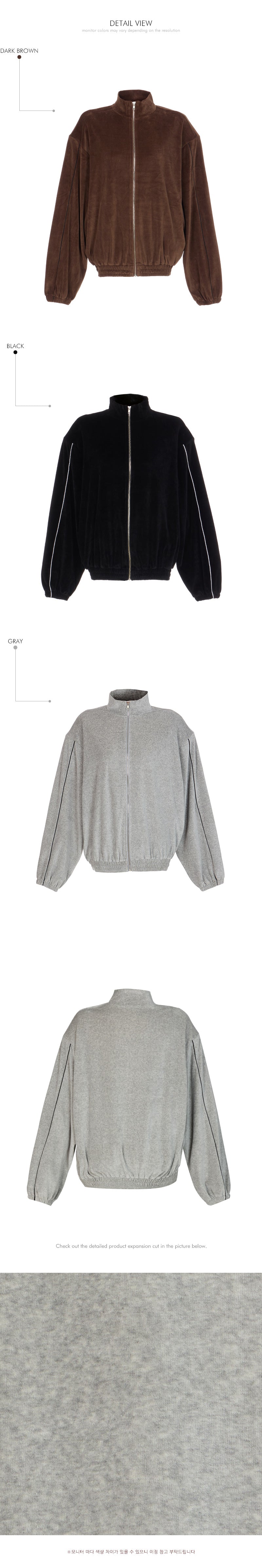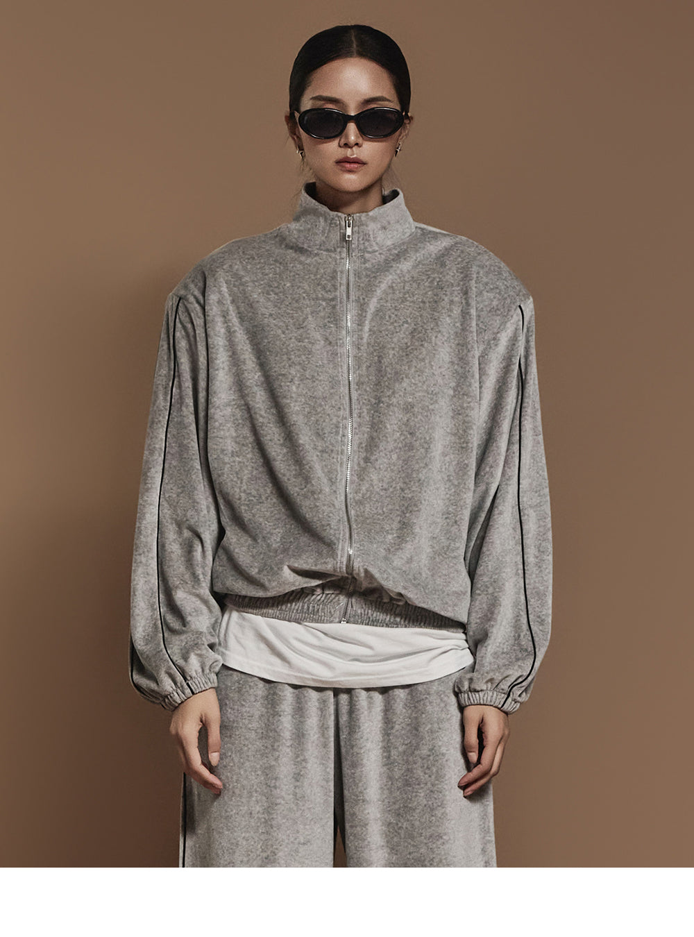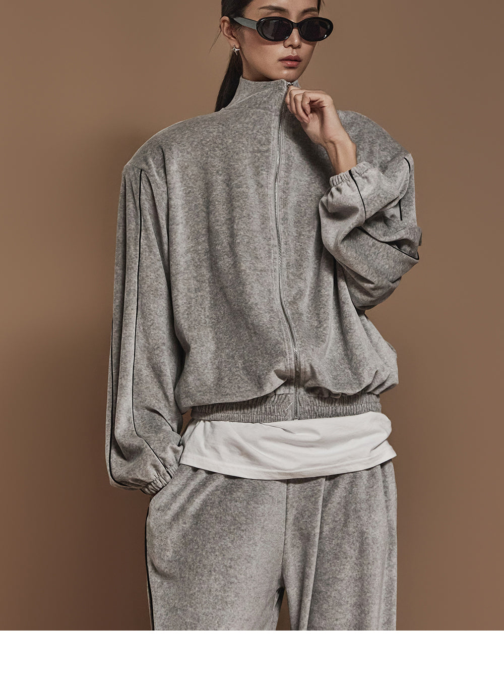 J2445 ベロアテーピングディテールジップスウェットシャツ