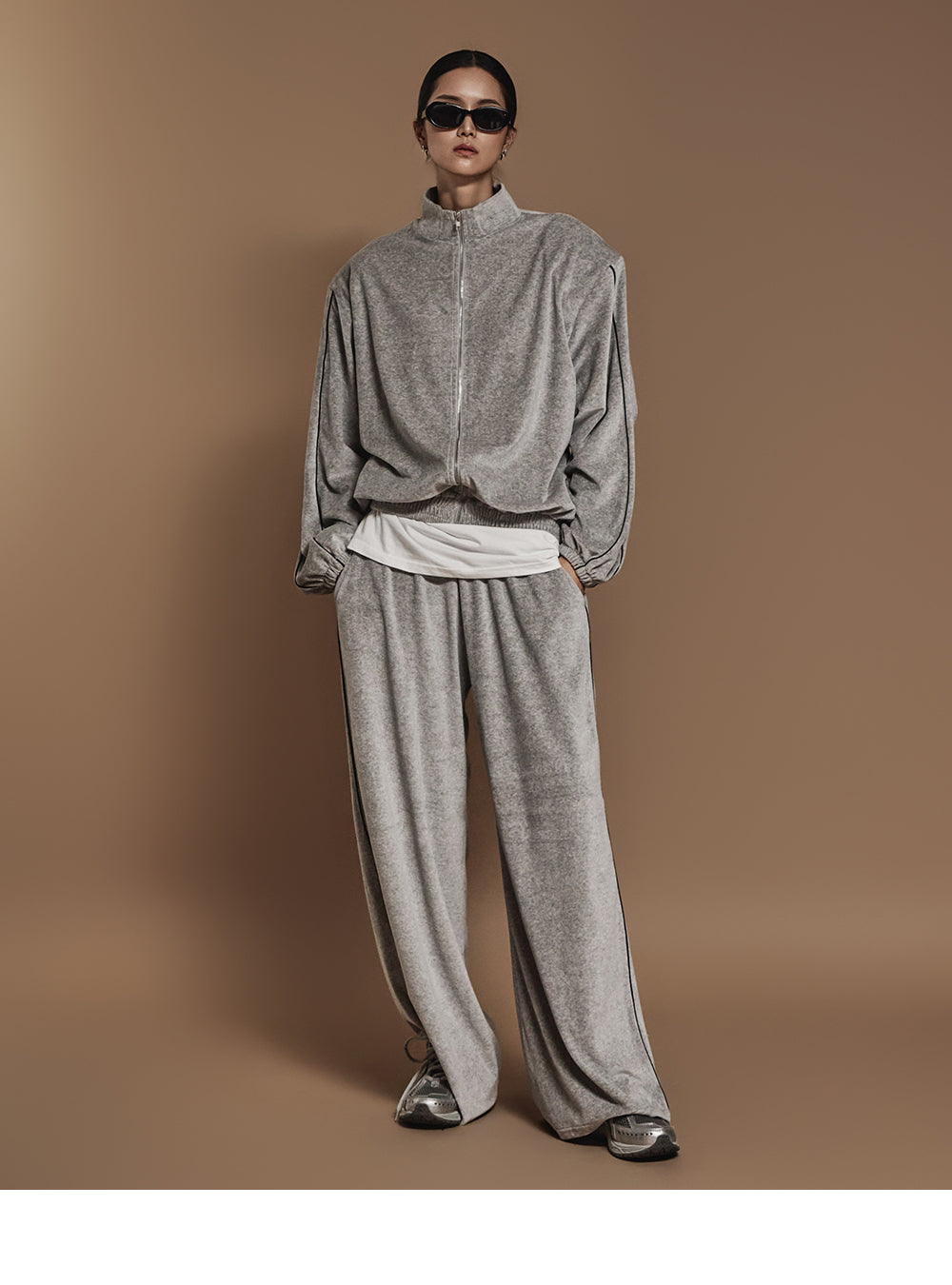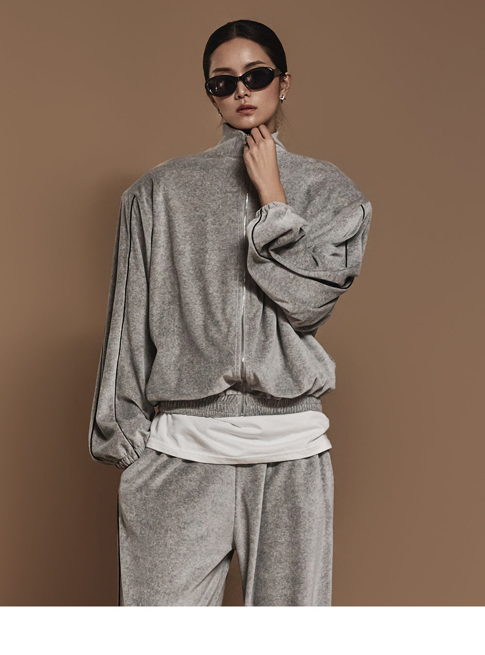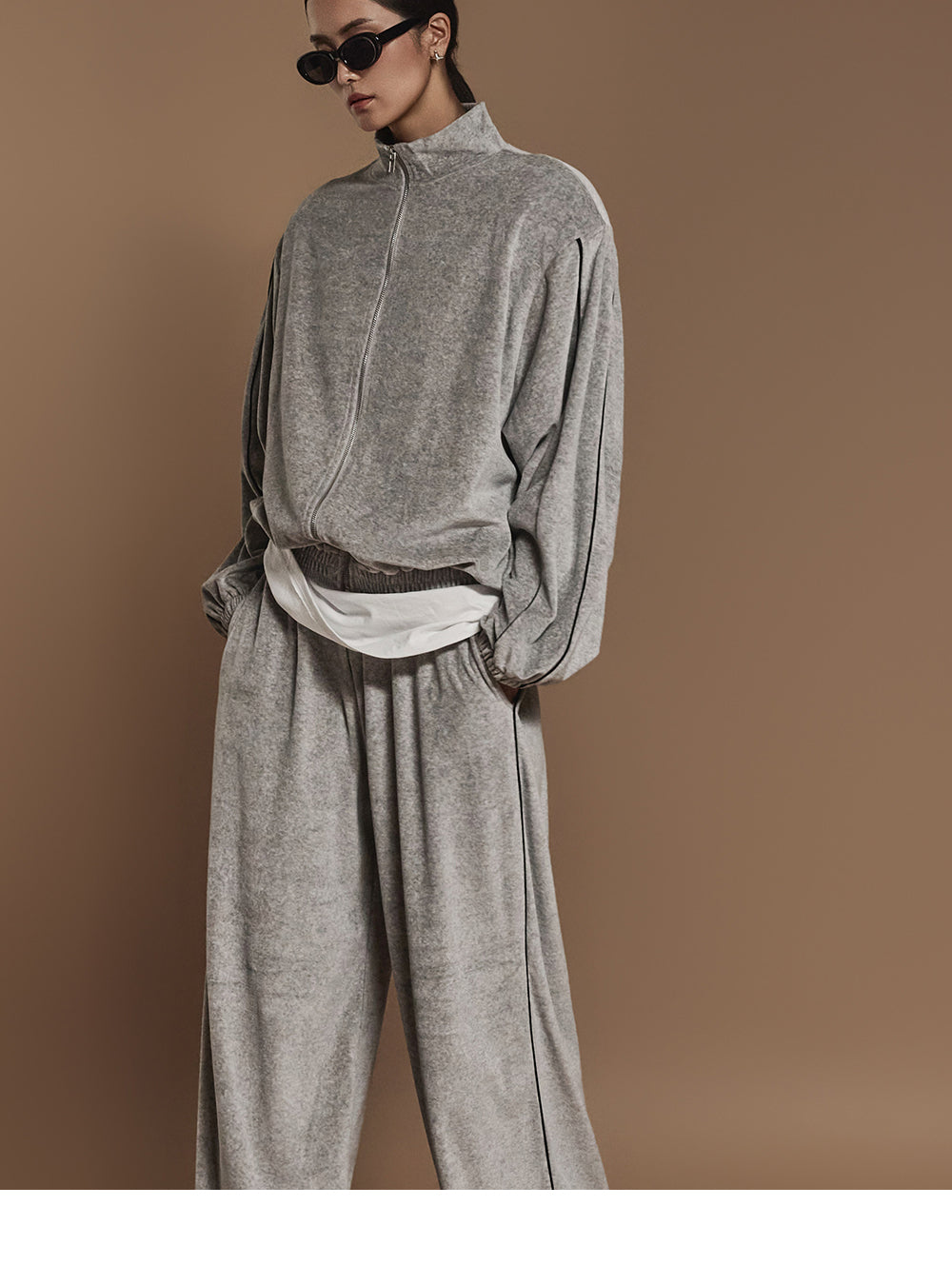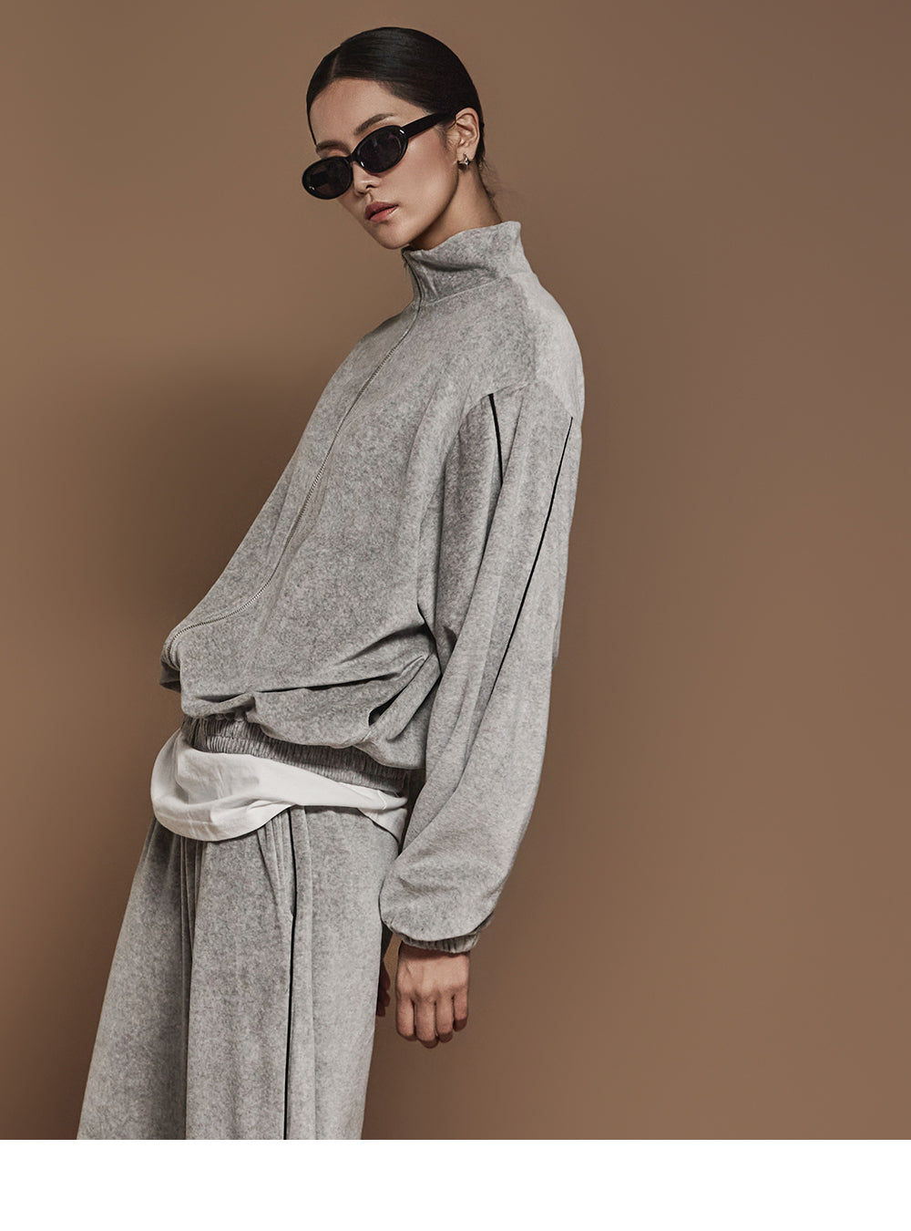 J2445 ベロアテーピングディテールジップスウェットシャツ