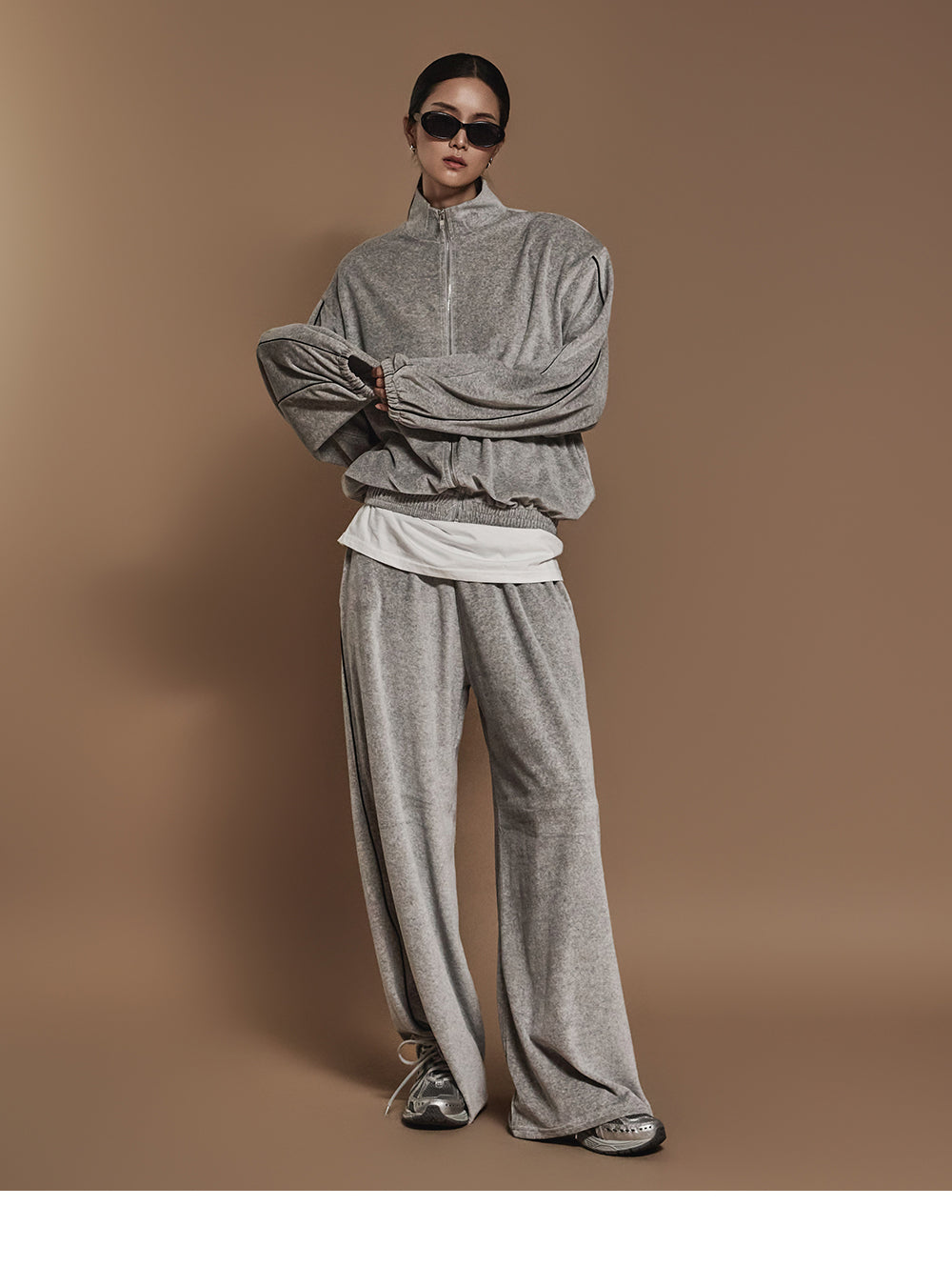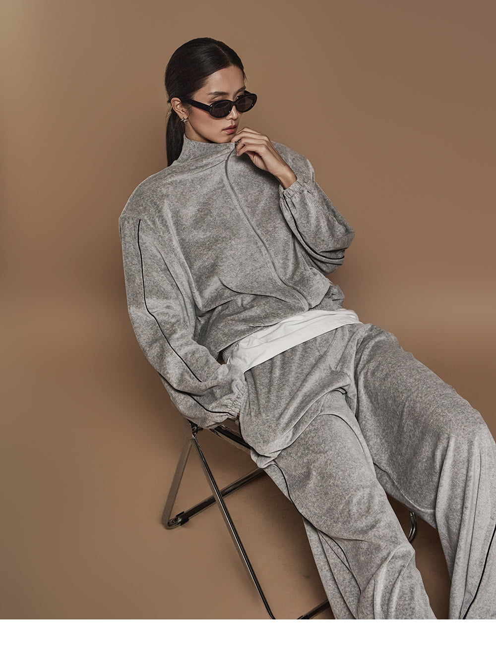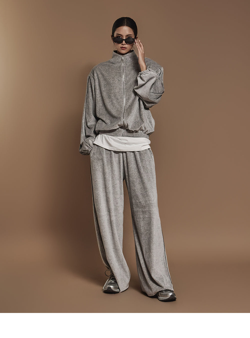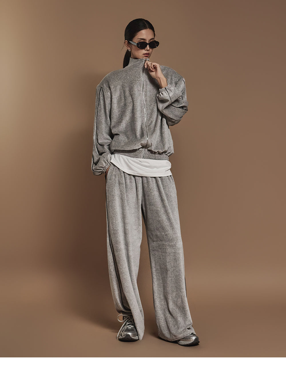 J2445 ベロアテーピングディテールジップスウェットシャツ