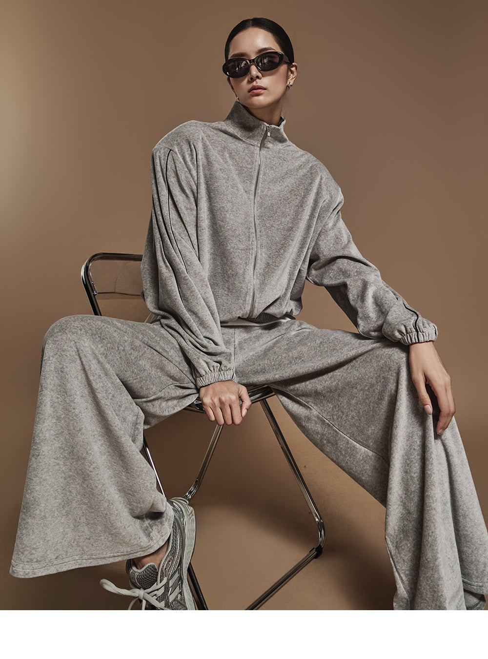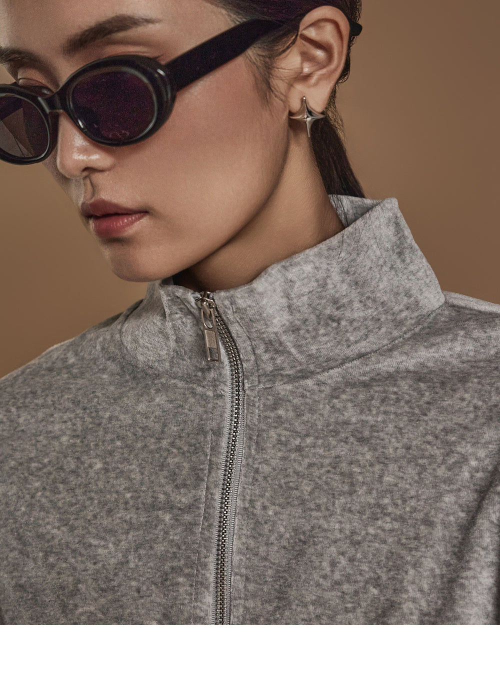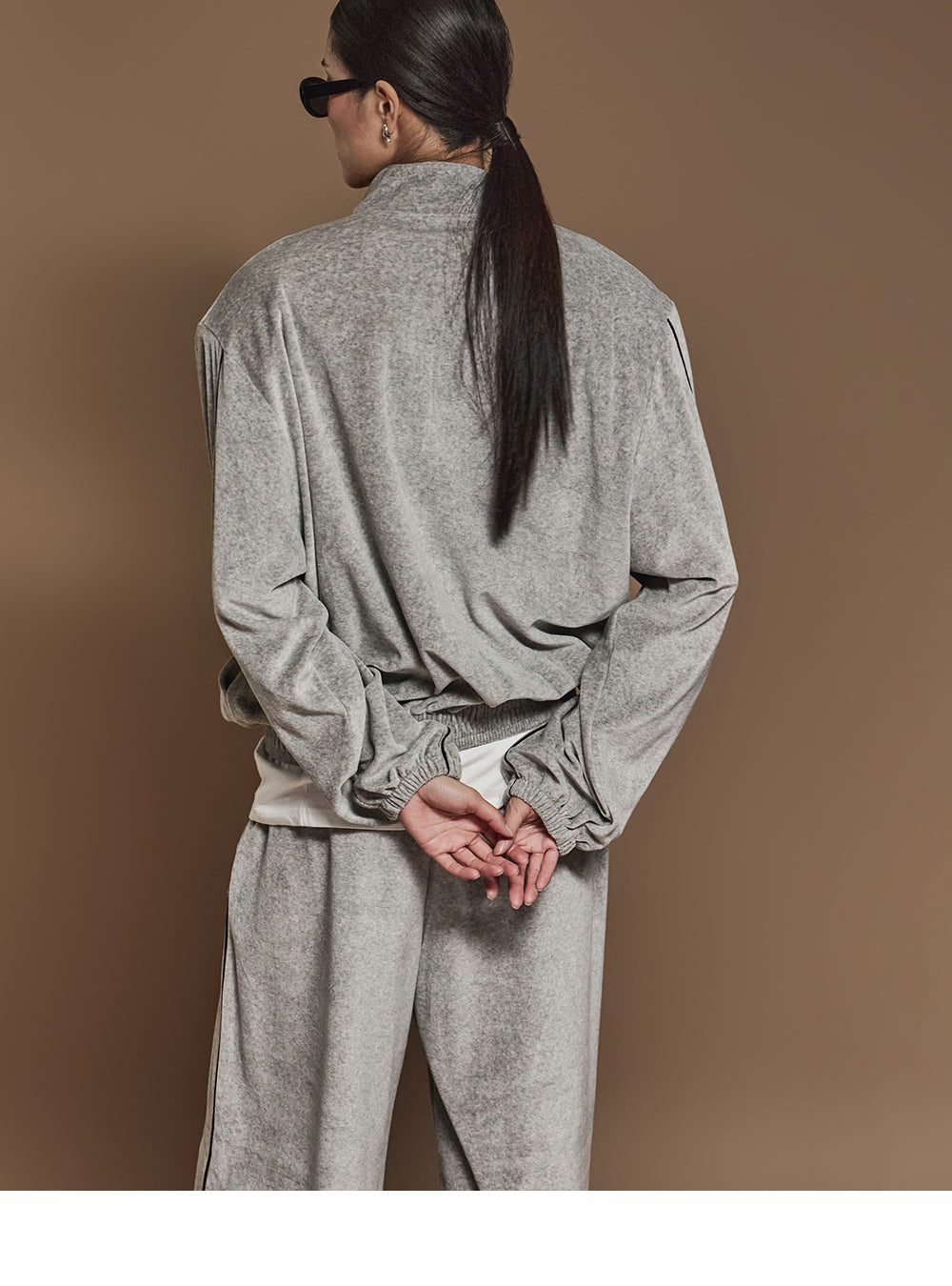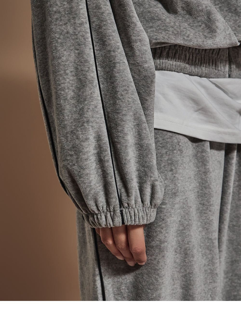 J2445 ベロアテーピングディテールジップスウェットシャツ