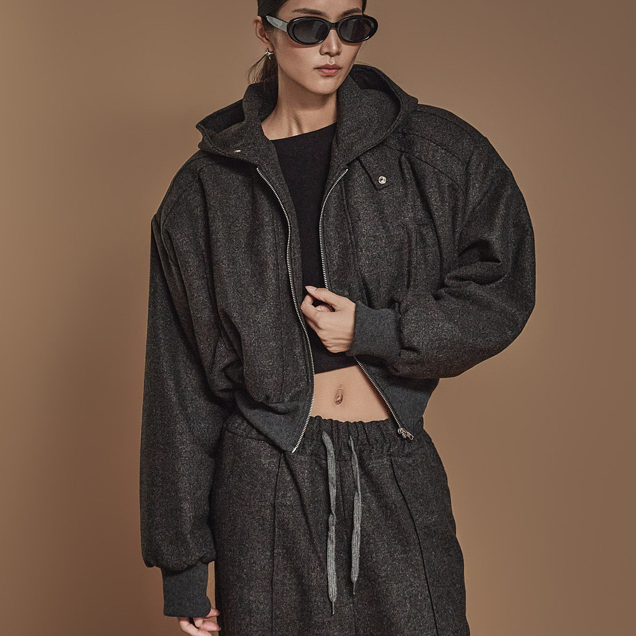 J2455 フード付きクロップジャンパージャケット