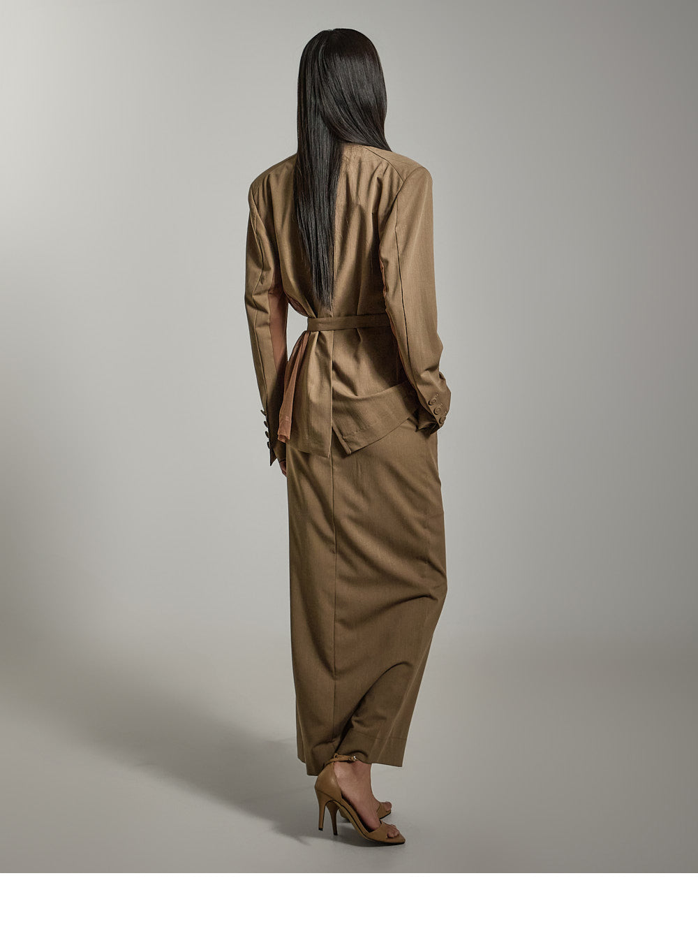軽い肩パッドがすっきりとした構造的なシルエットを作り出します。