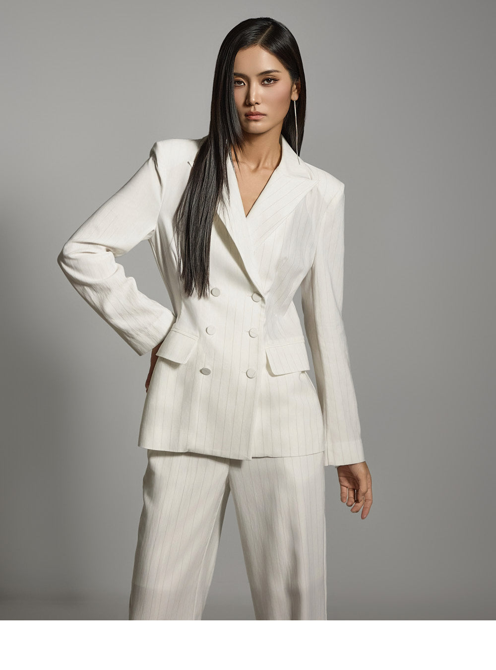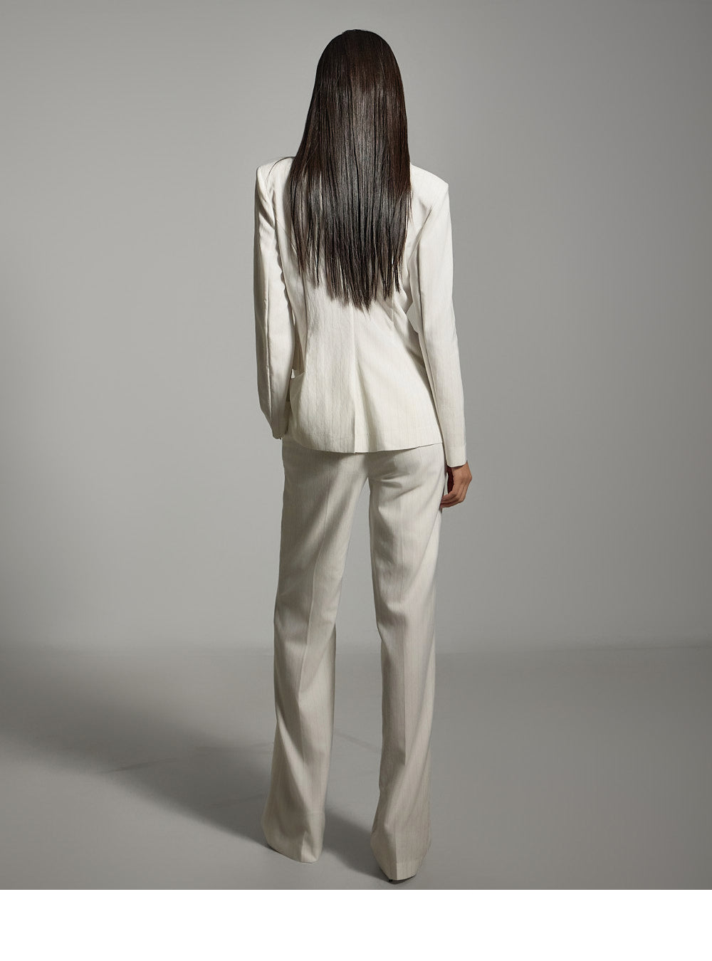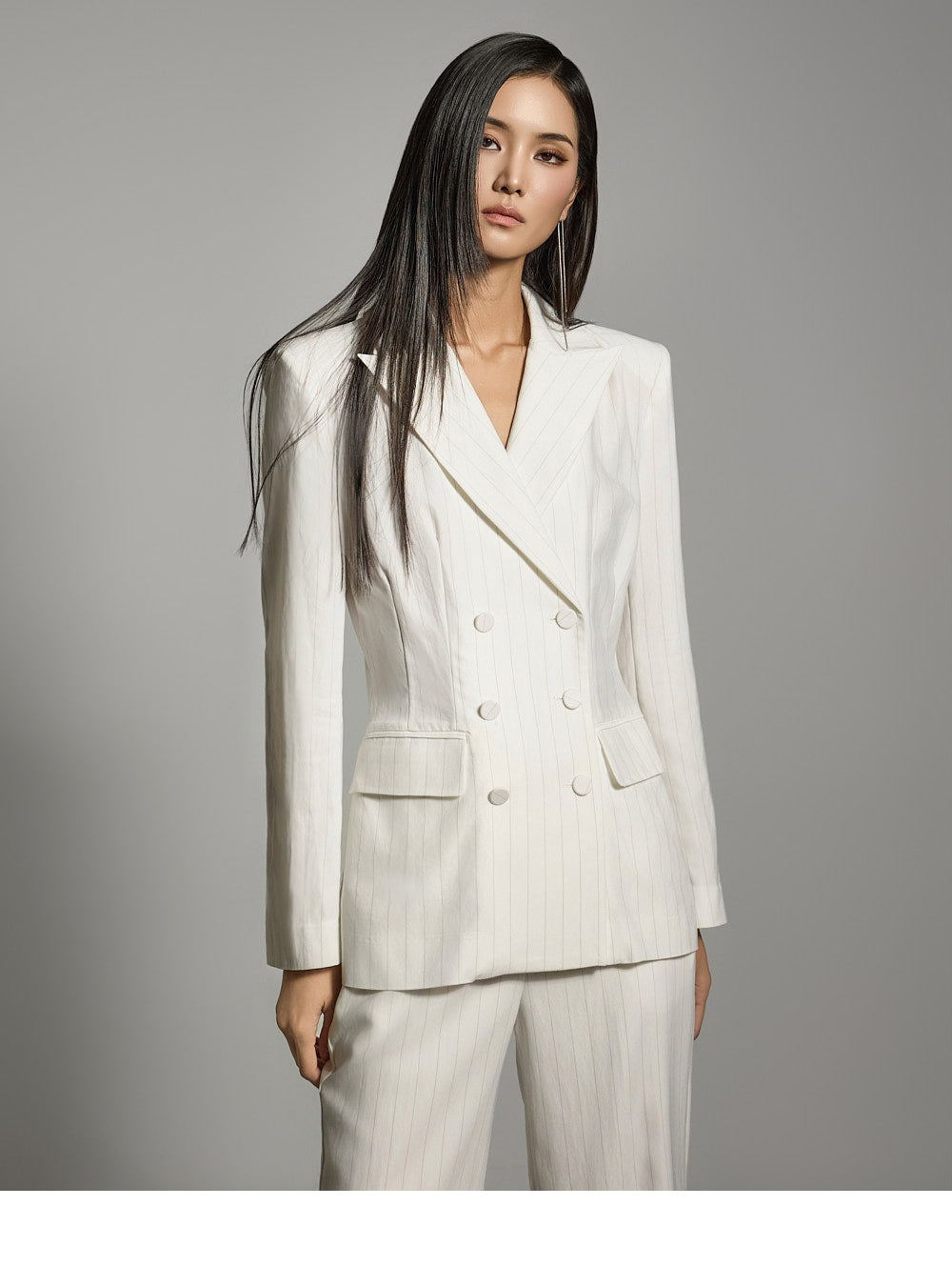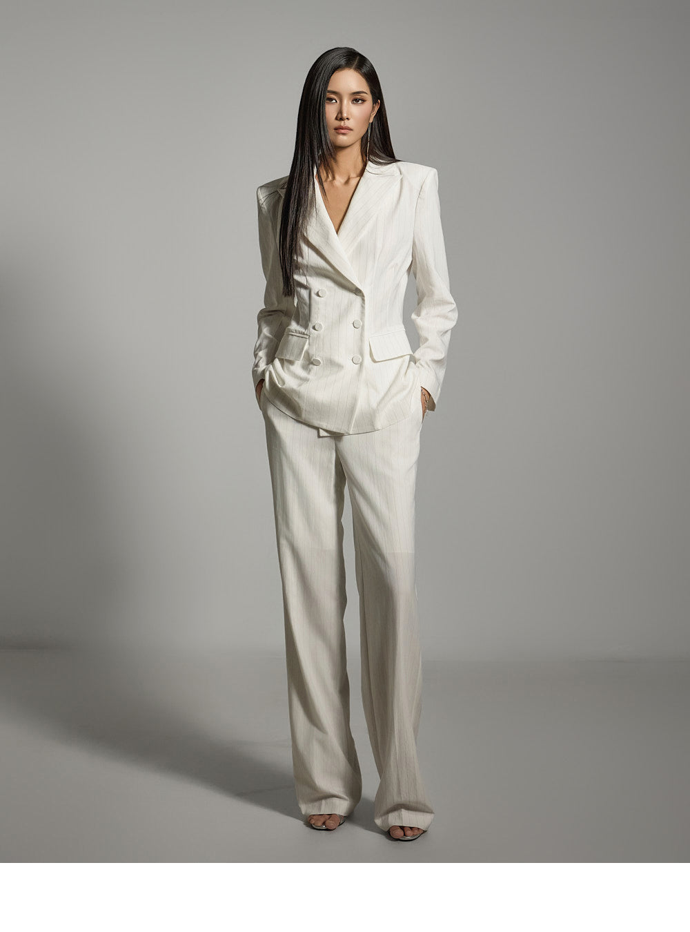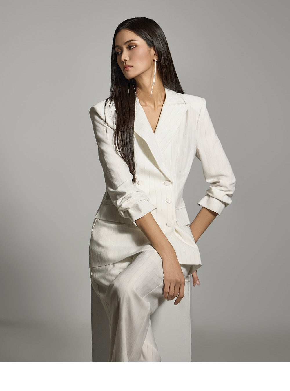 スリムフィットとショルダーパッドによりバランスのとれたシルエットを実現。