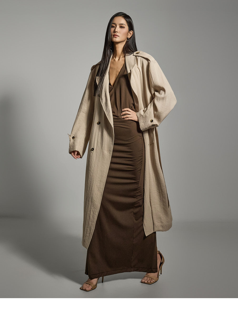 長めの丈がナチュラルで上品なシルエットを演出し、