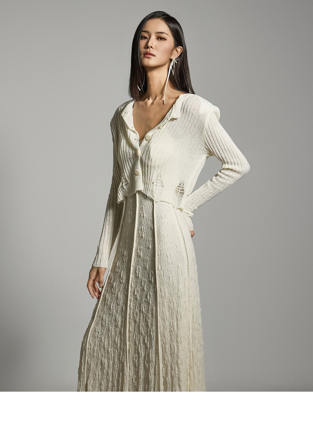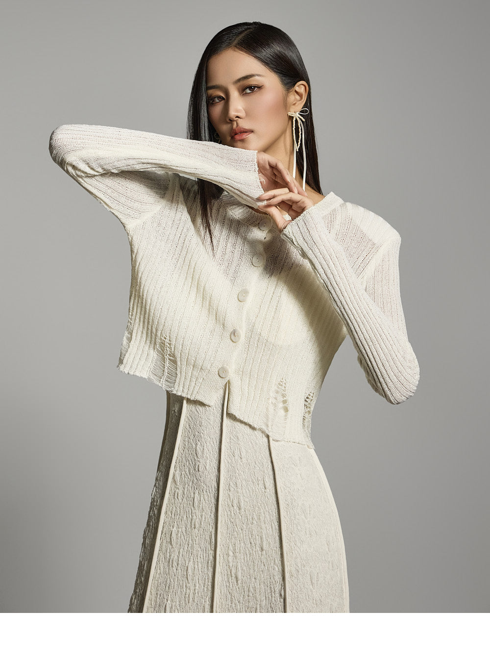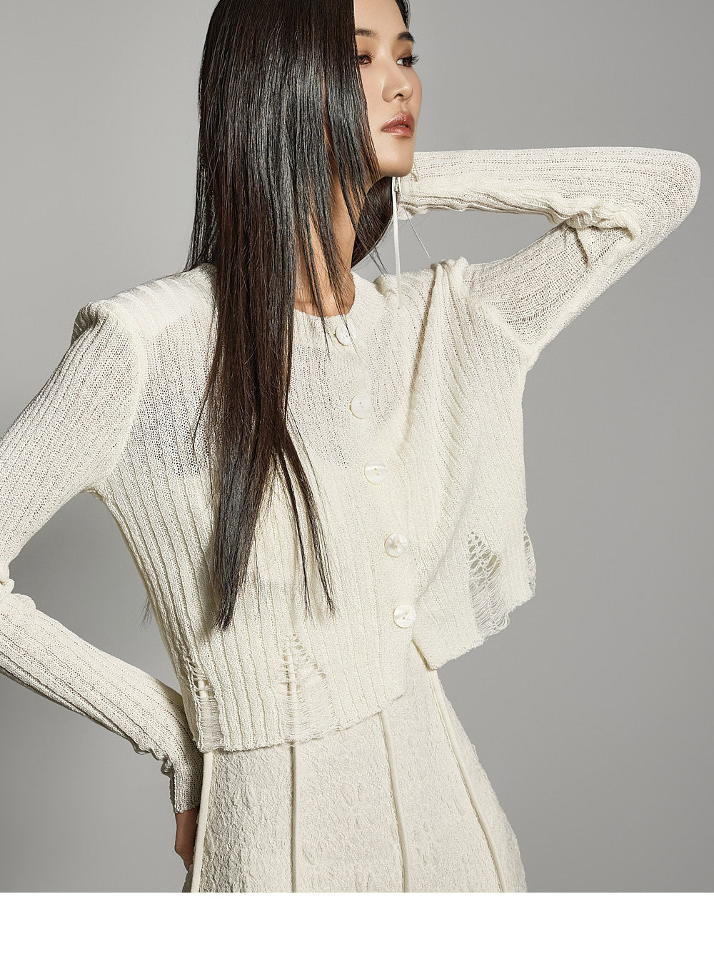 このクロップドカーディガンはカジュアルでスタイリッシュな雰囲気を醸し出します。