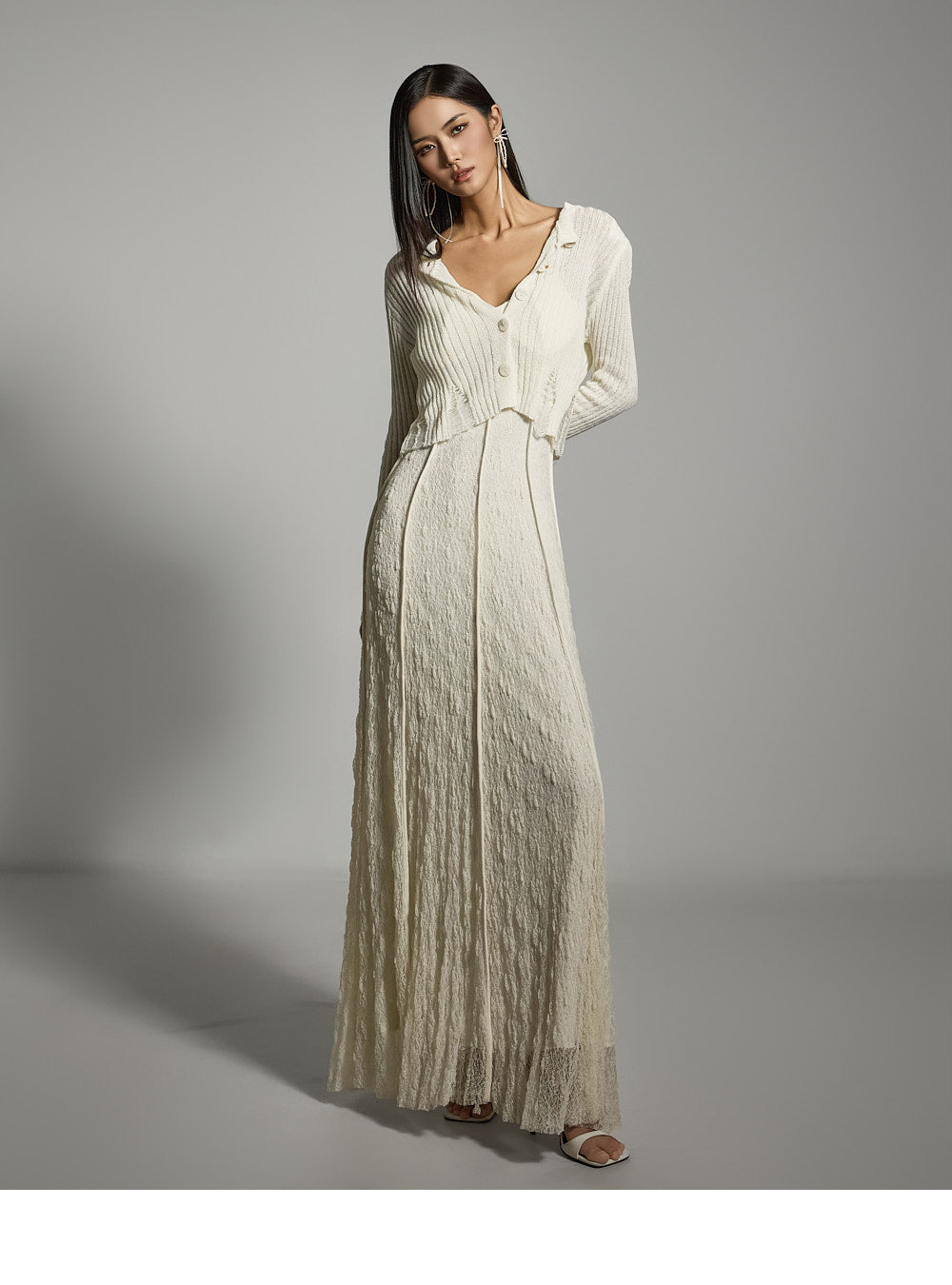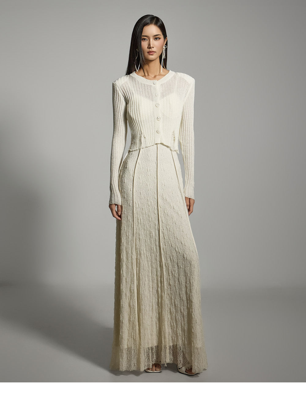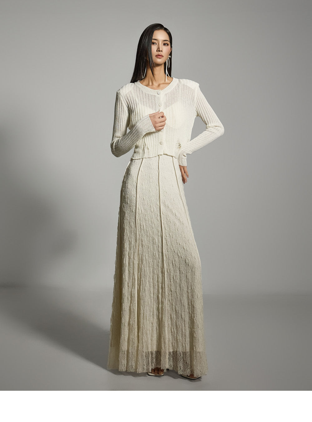 このクロップドカーディガンはカジュアルでスタイリッシュな雰囲気を醸し出します。