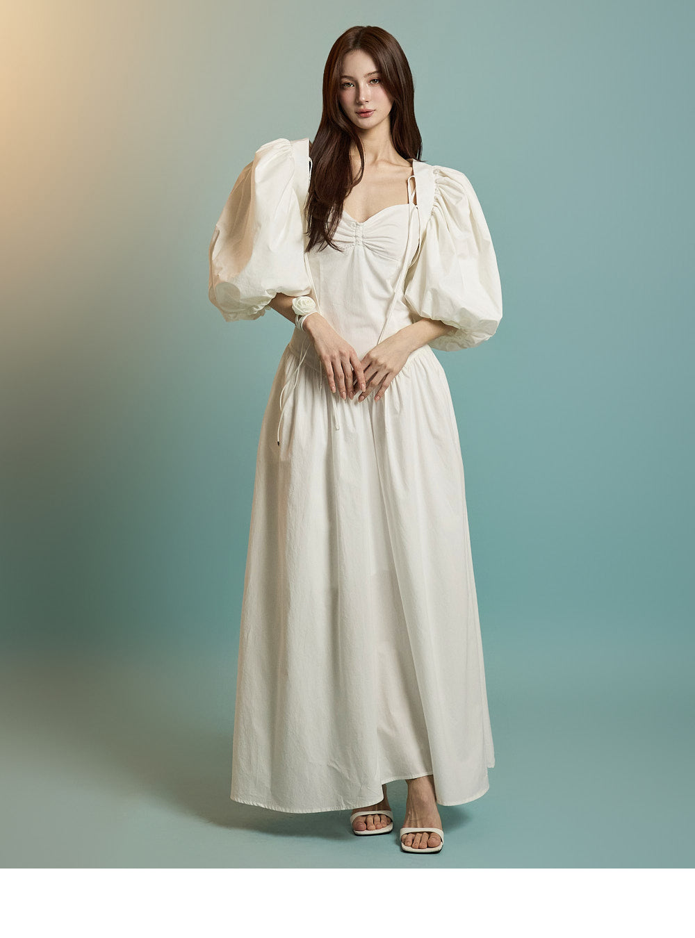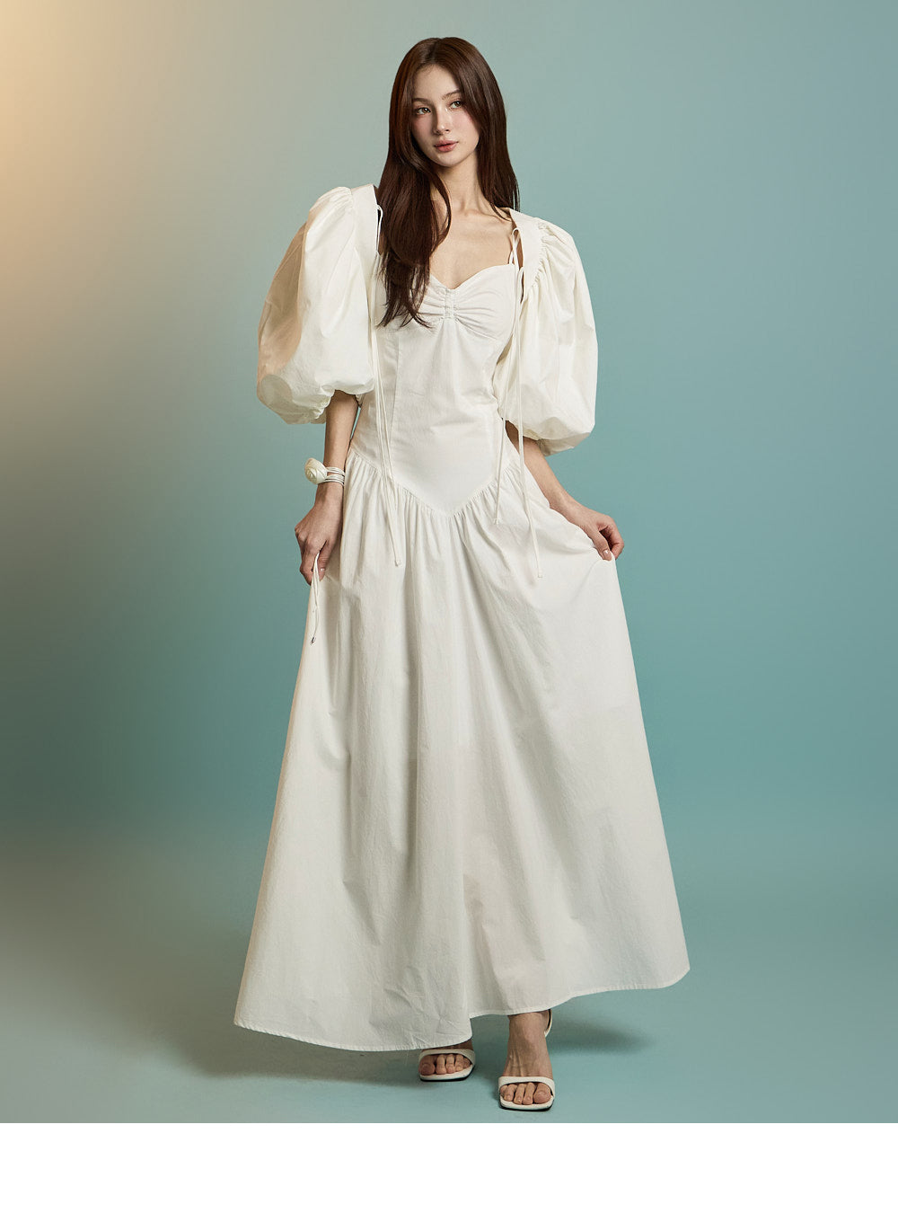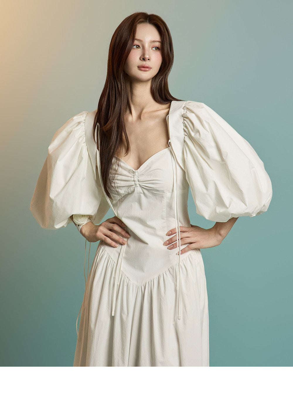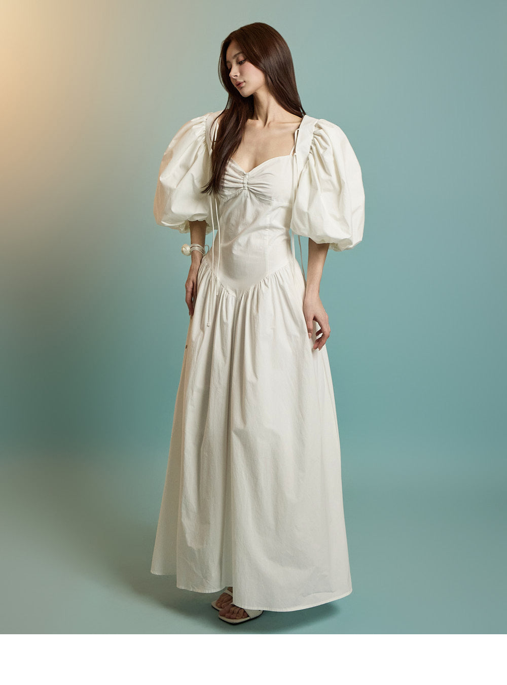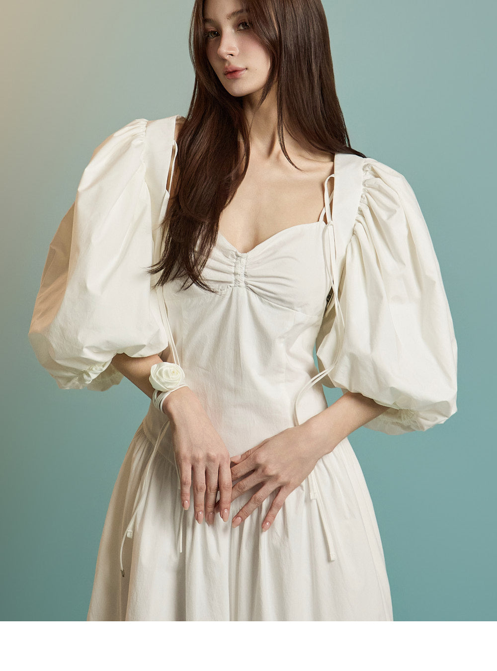 パフショルダーのディテールが魅力的なシルエットを作り出し、