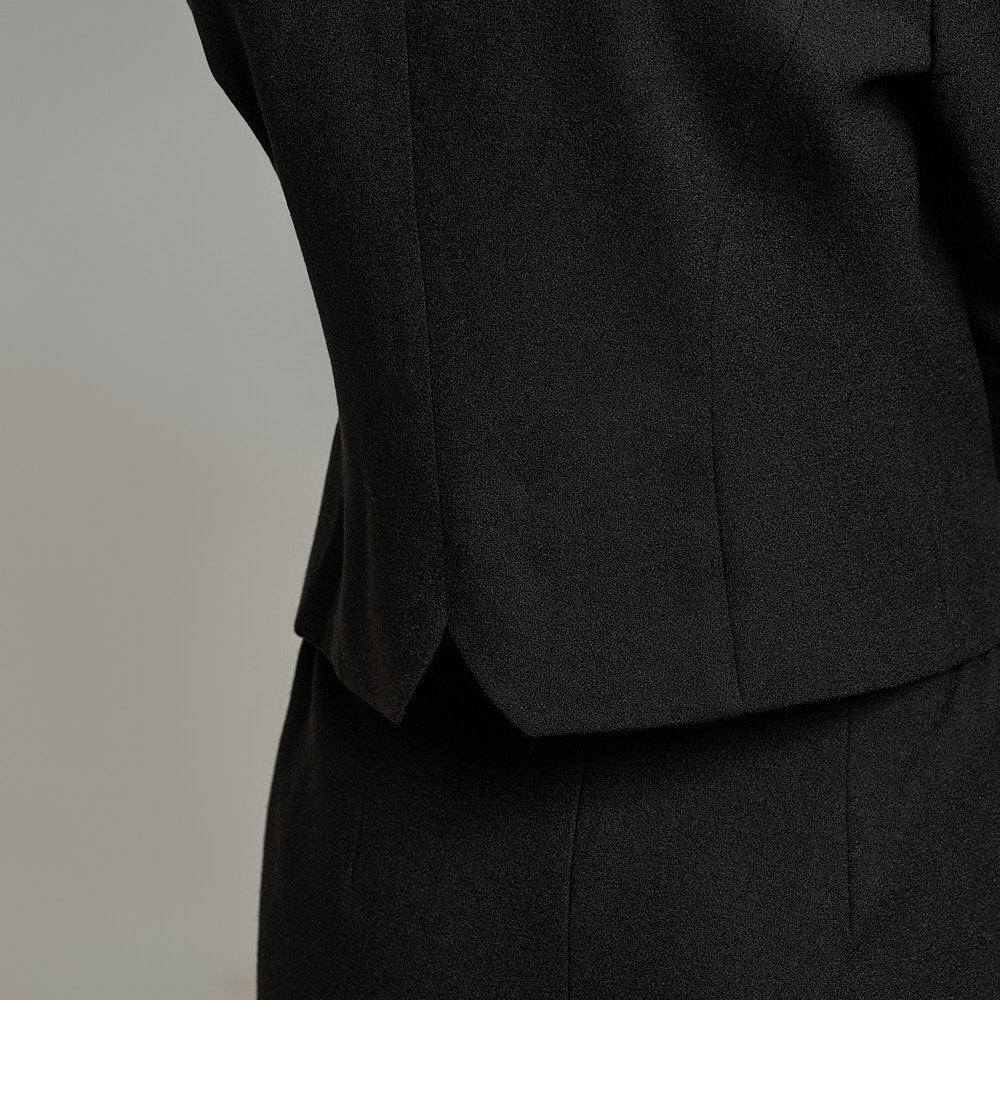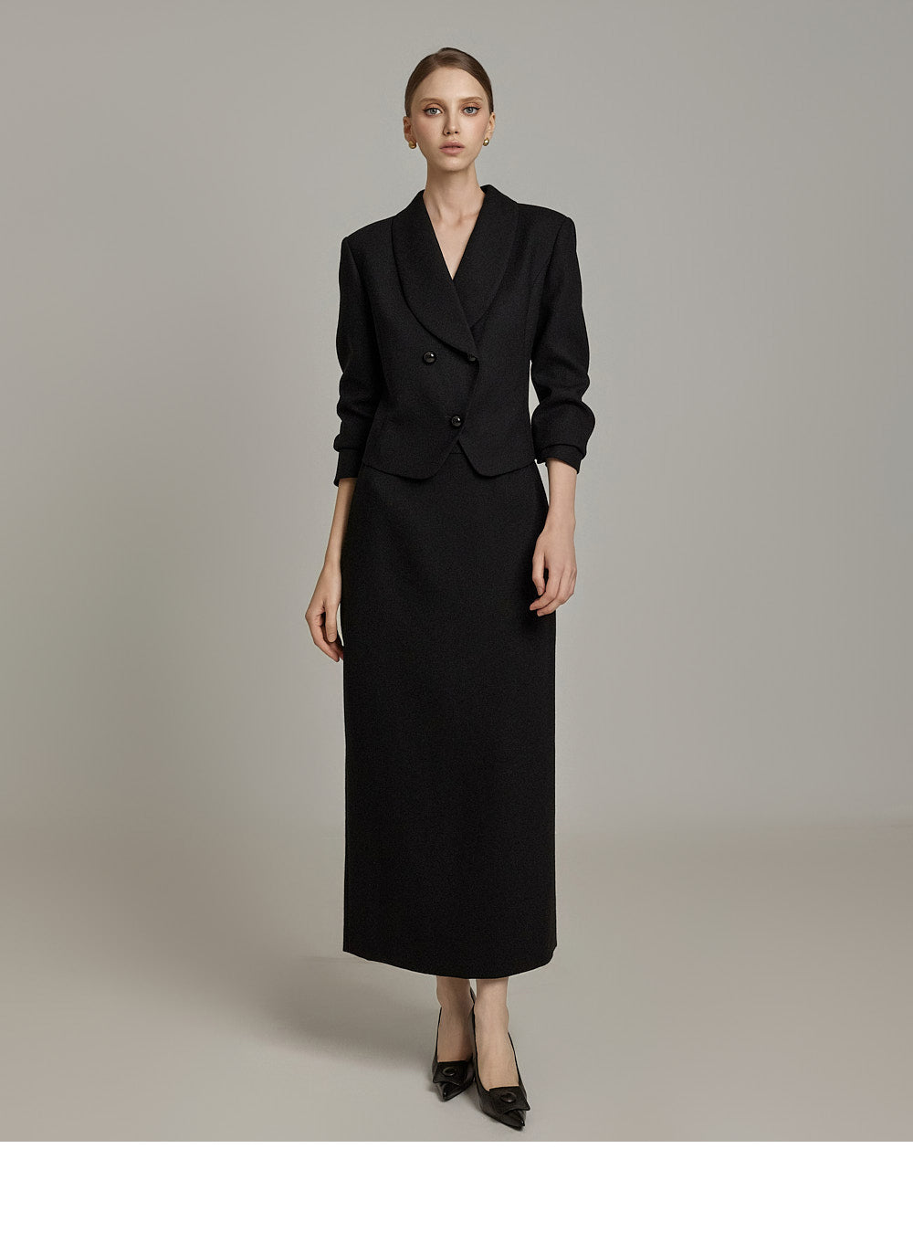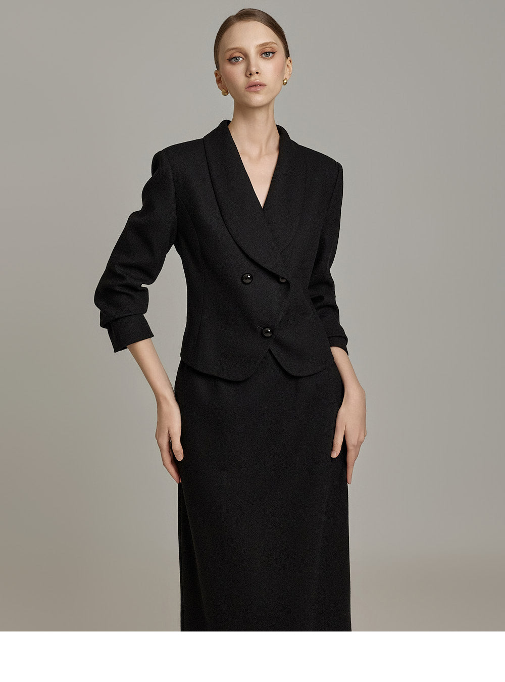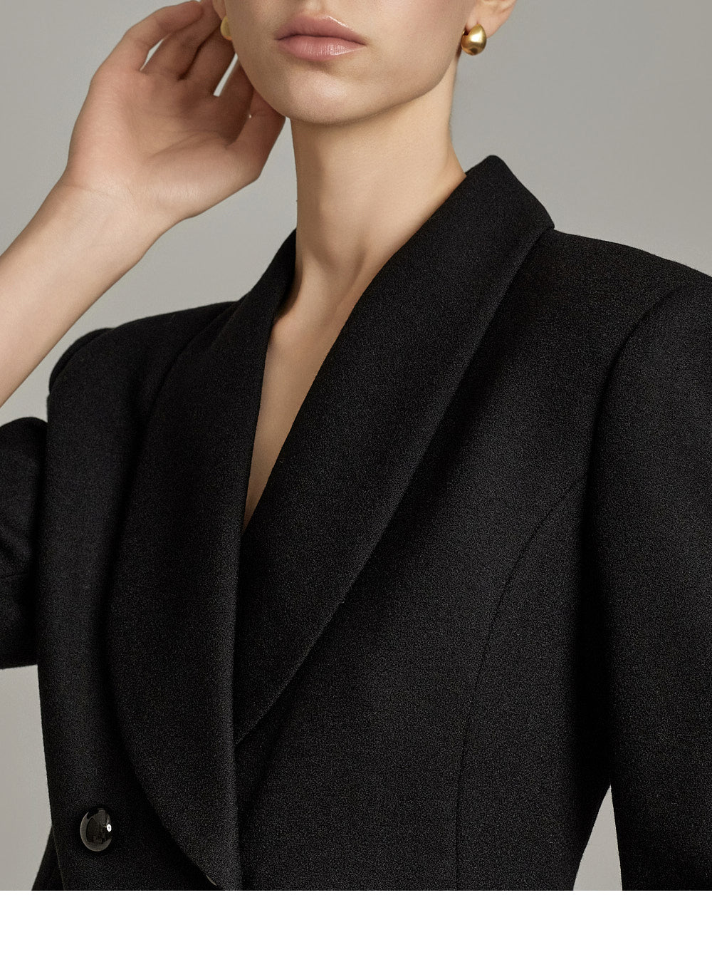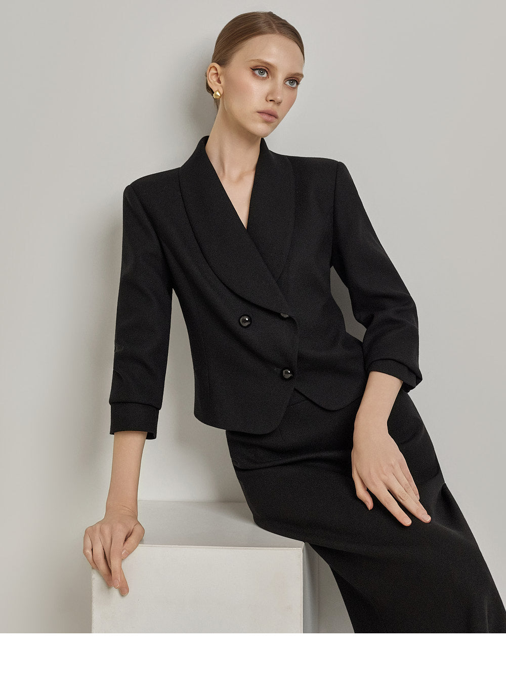 The short length creates a sophisticated silhouette, while the ankle length and large button details add a touch of style,