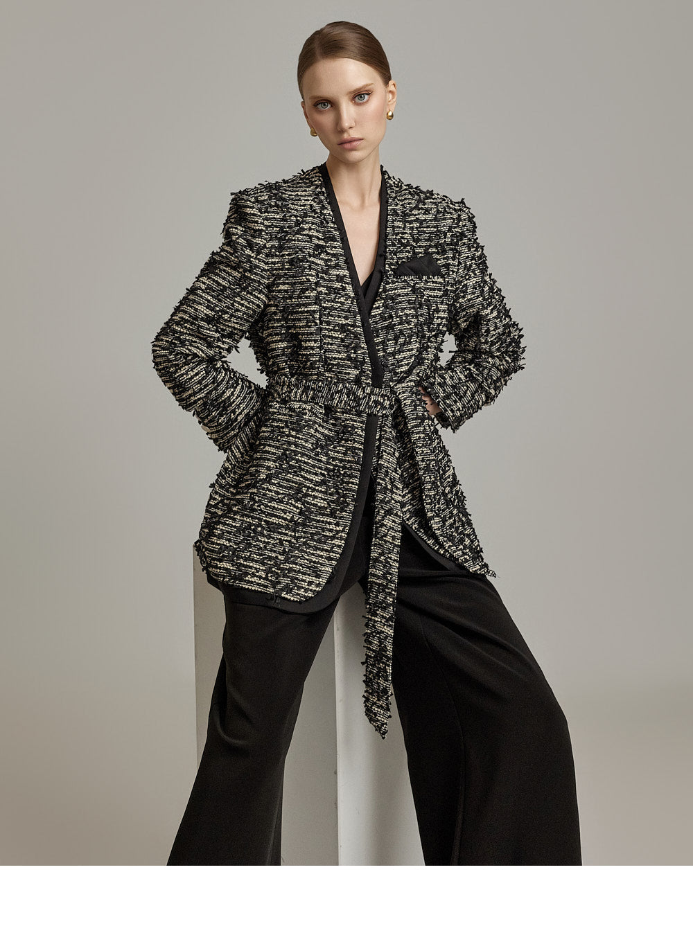Model is 174cm tall and is wearing size ONE in BLACK.
