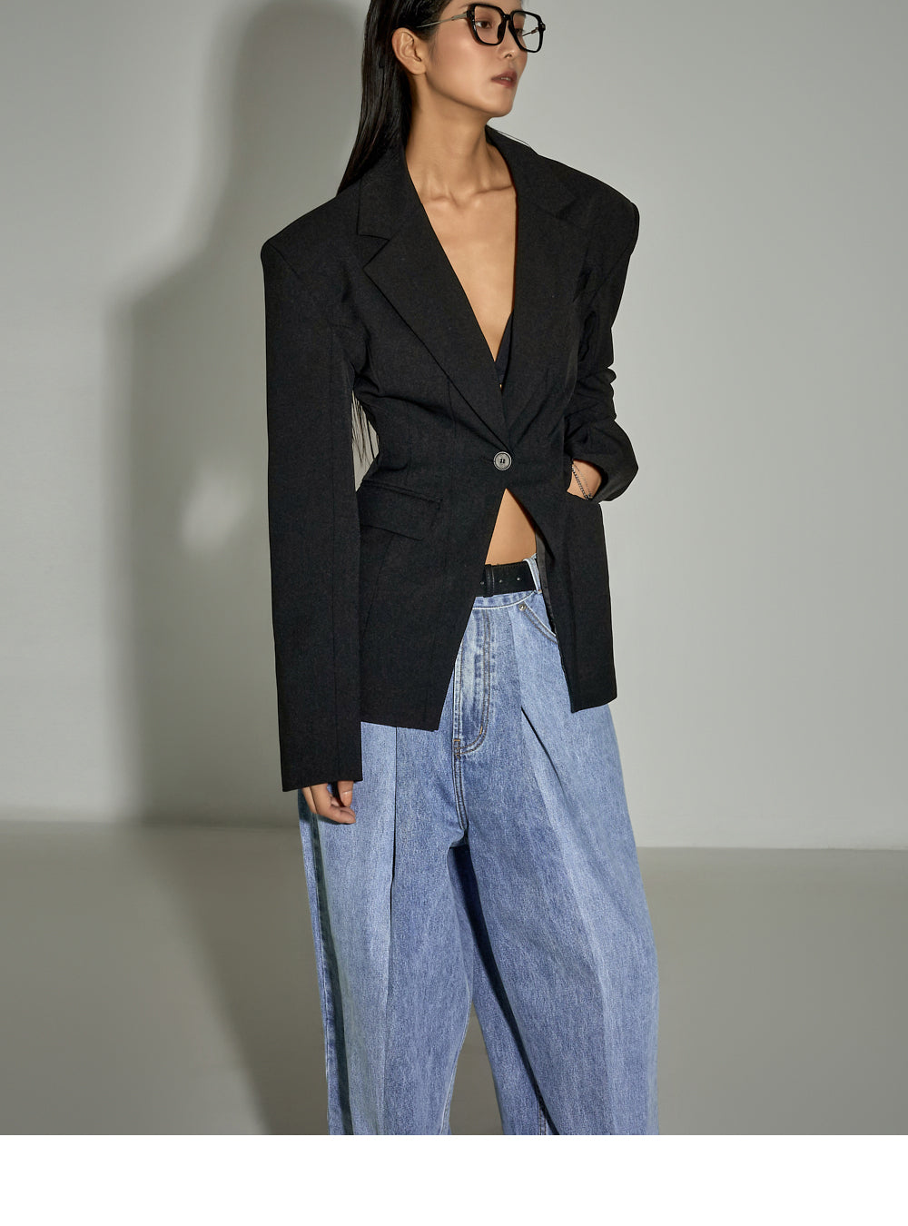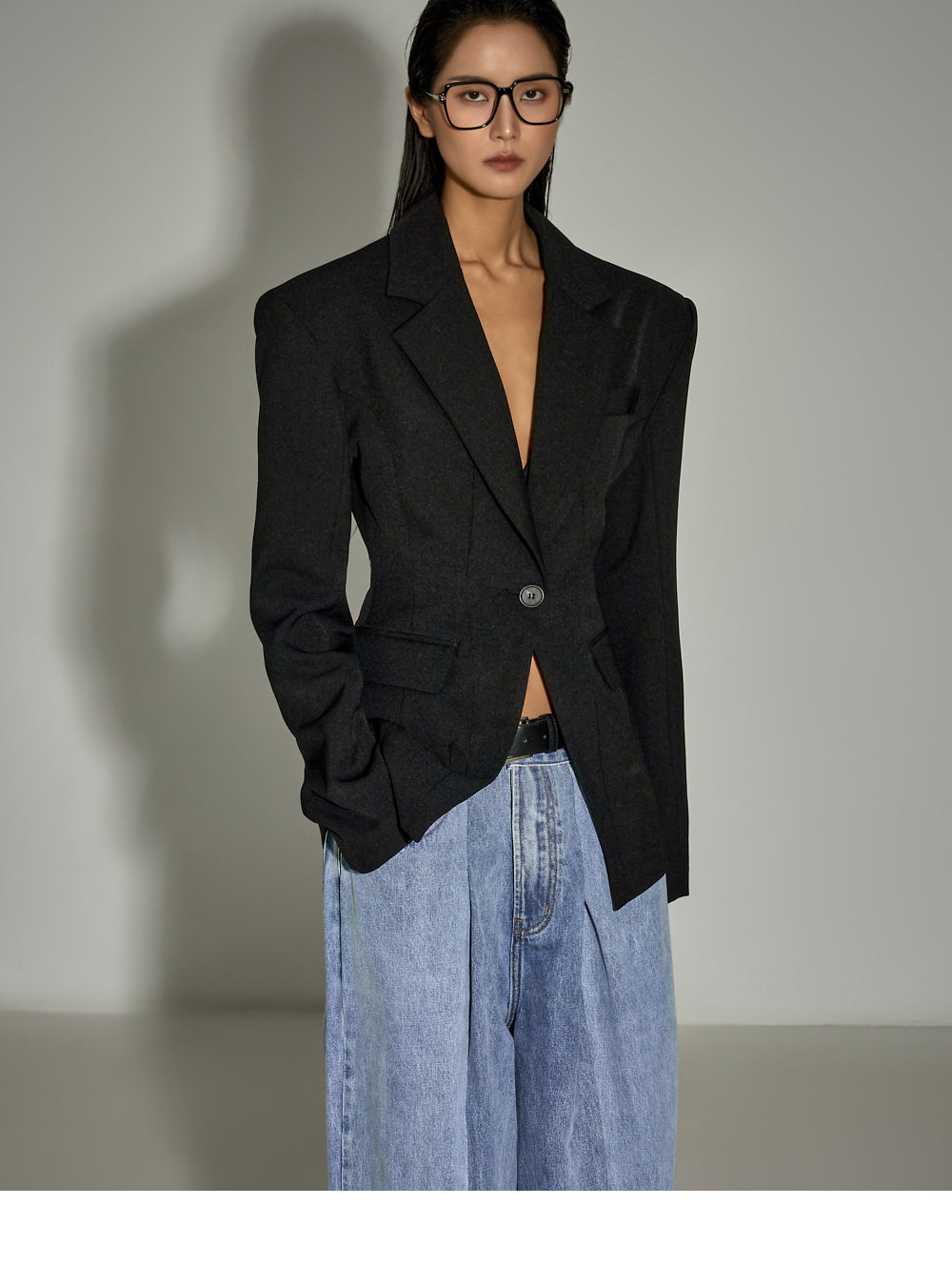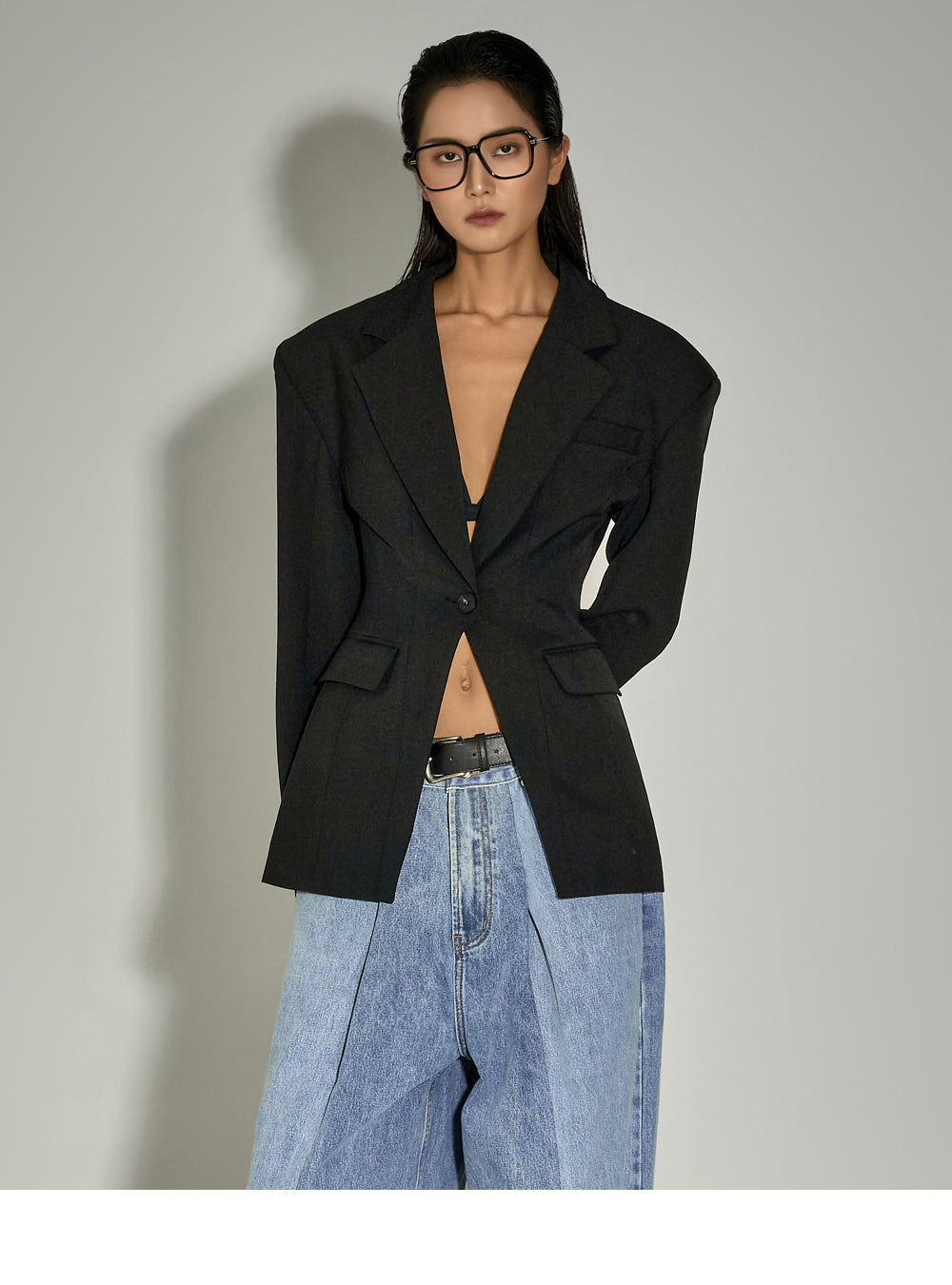 With moderate shoulder pads and a slim fit that hugs the waist,